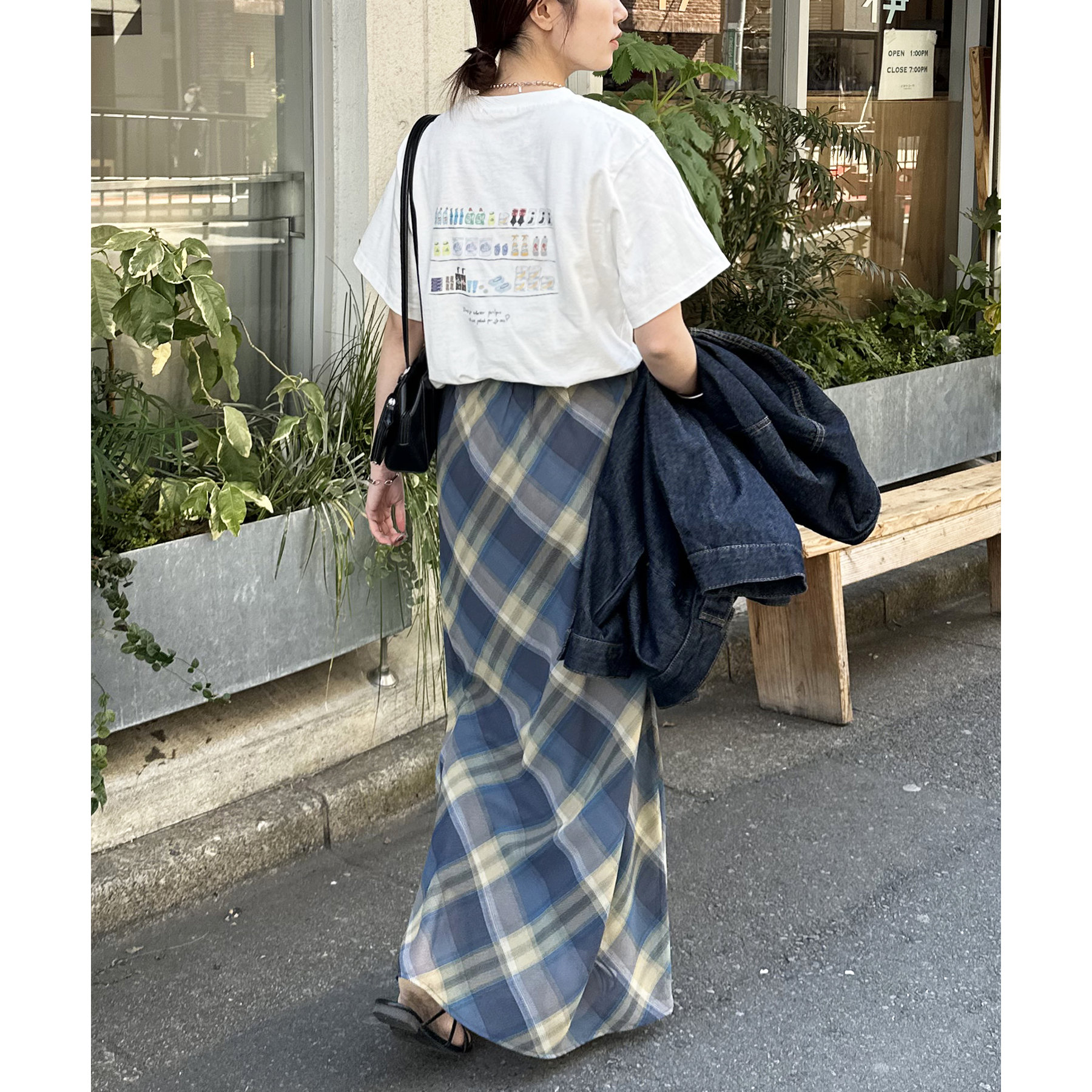 デニムパンツと合わせて、カジュアルなスタイルに。