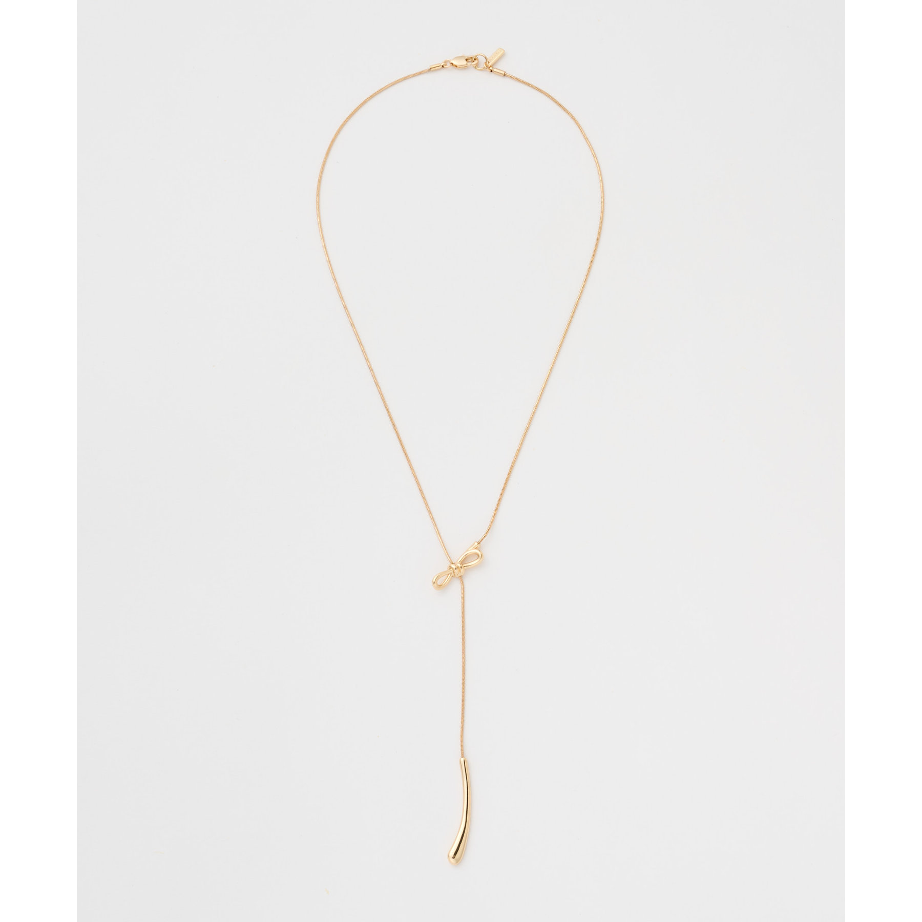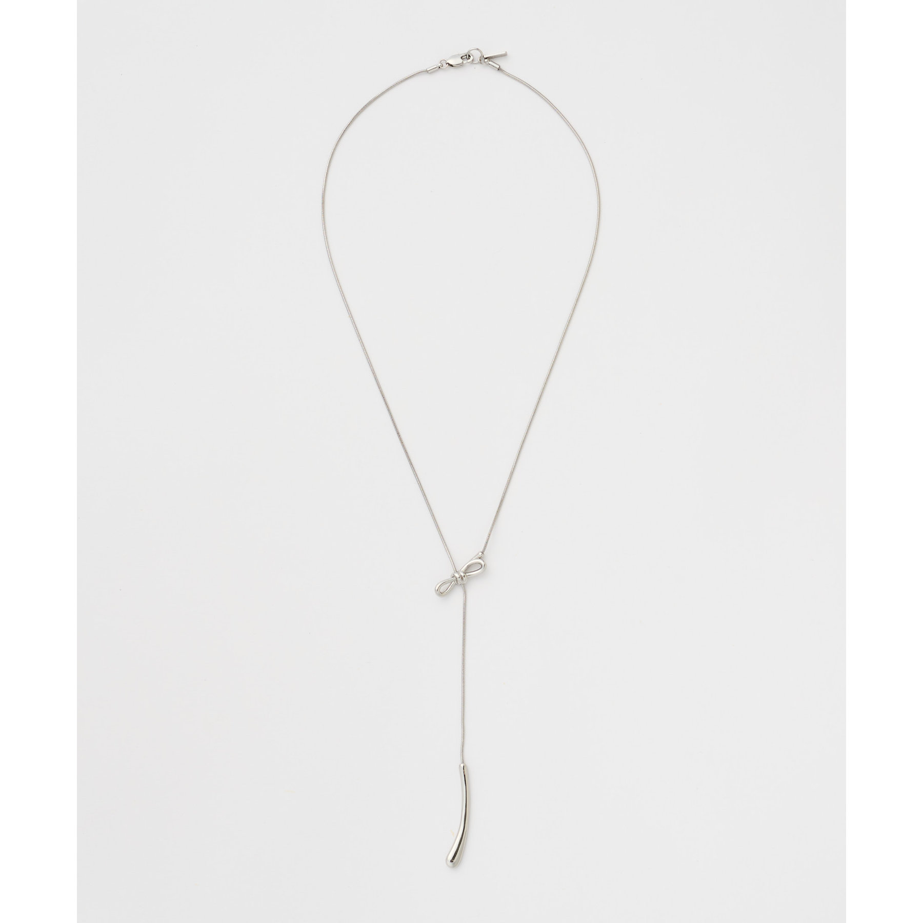 滑らかな曲線が美しいドロップモチーフが印象的なY字ネックレス。華奢なチェーンとニュアンス感のあるメタルパーツが、シンプルながらも洗練された印象を与えます。