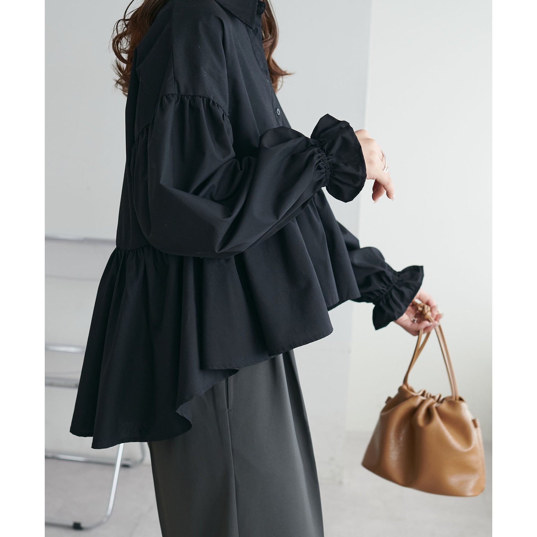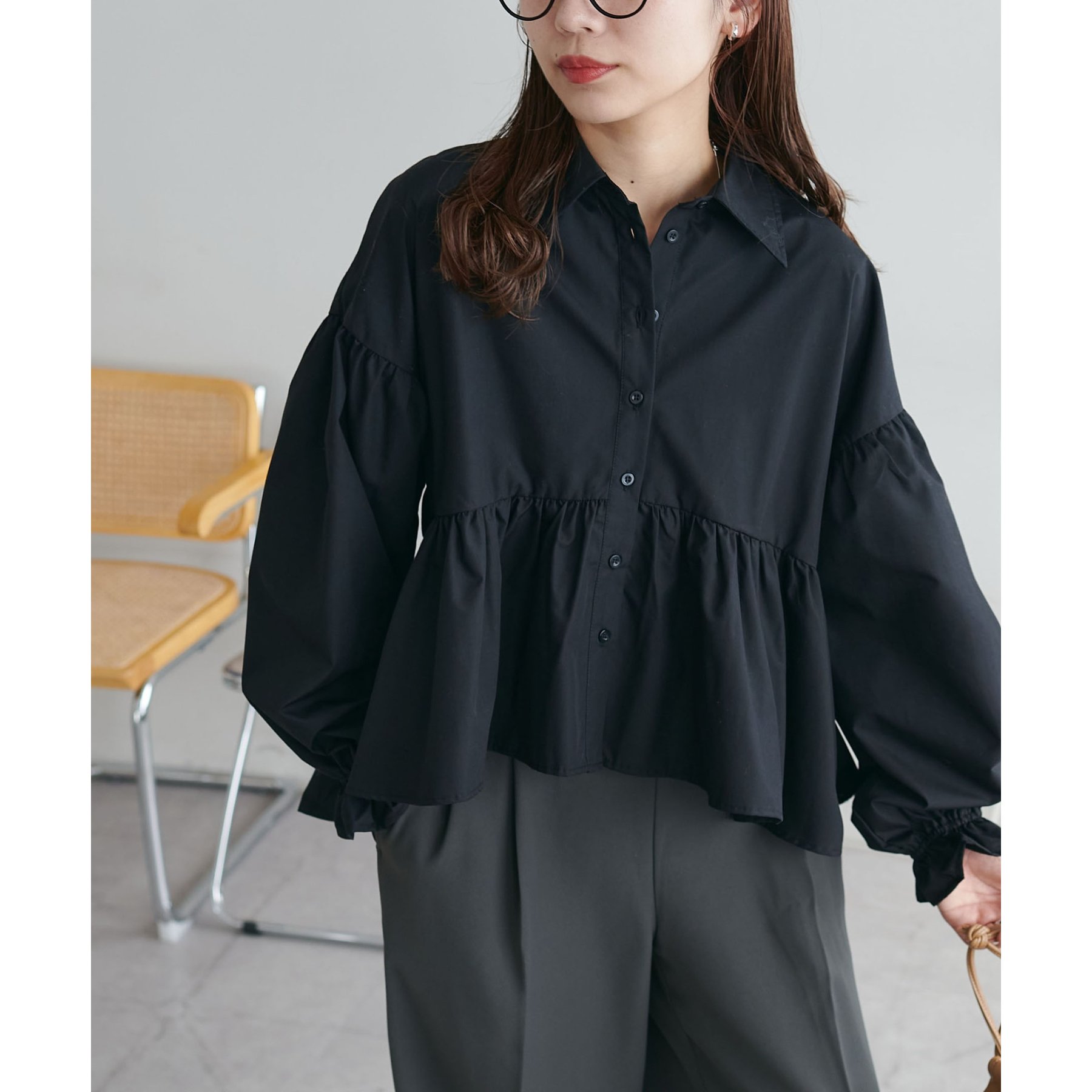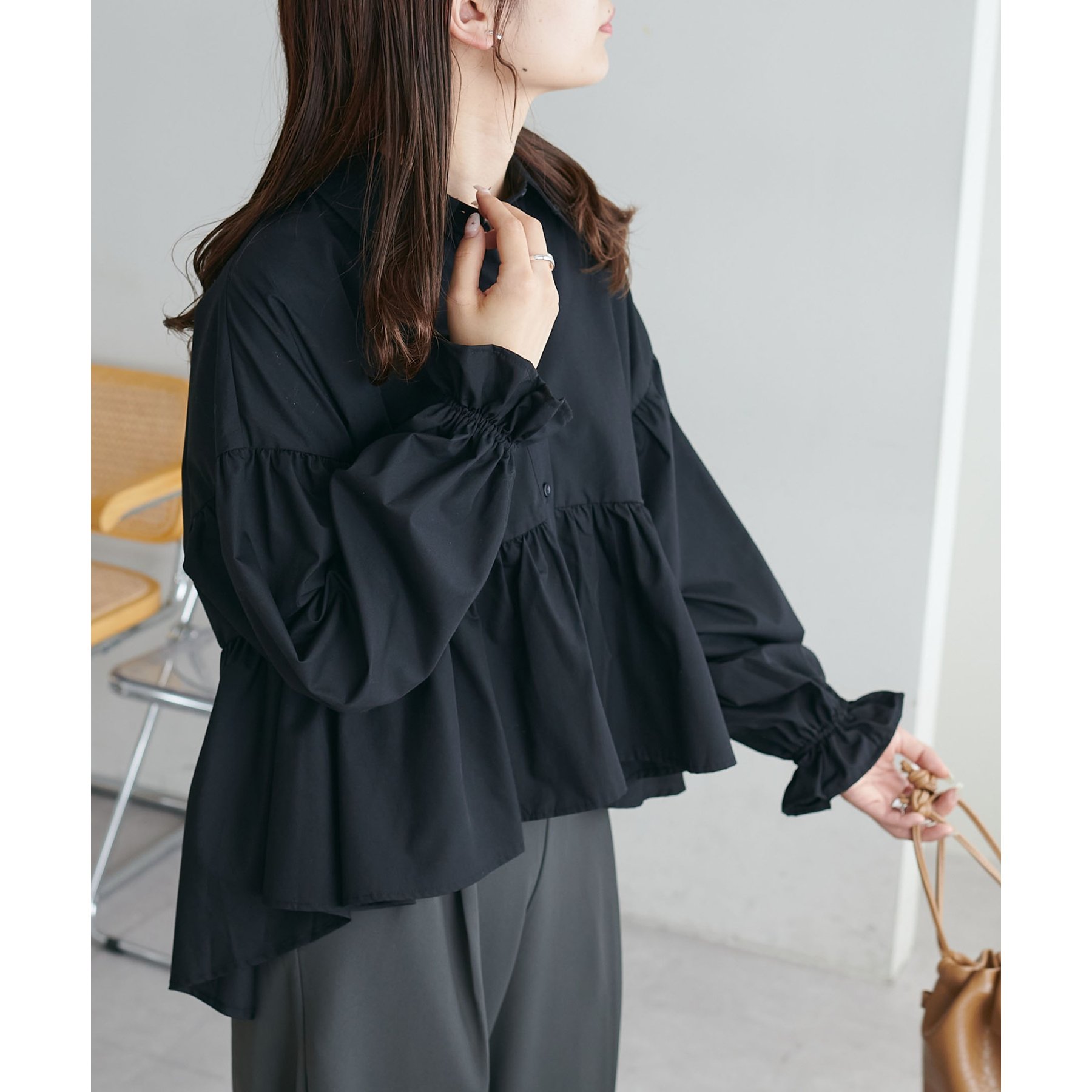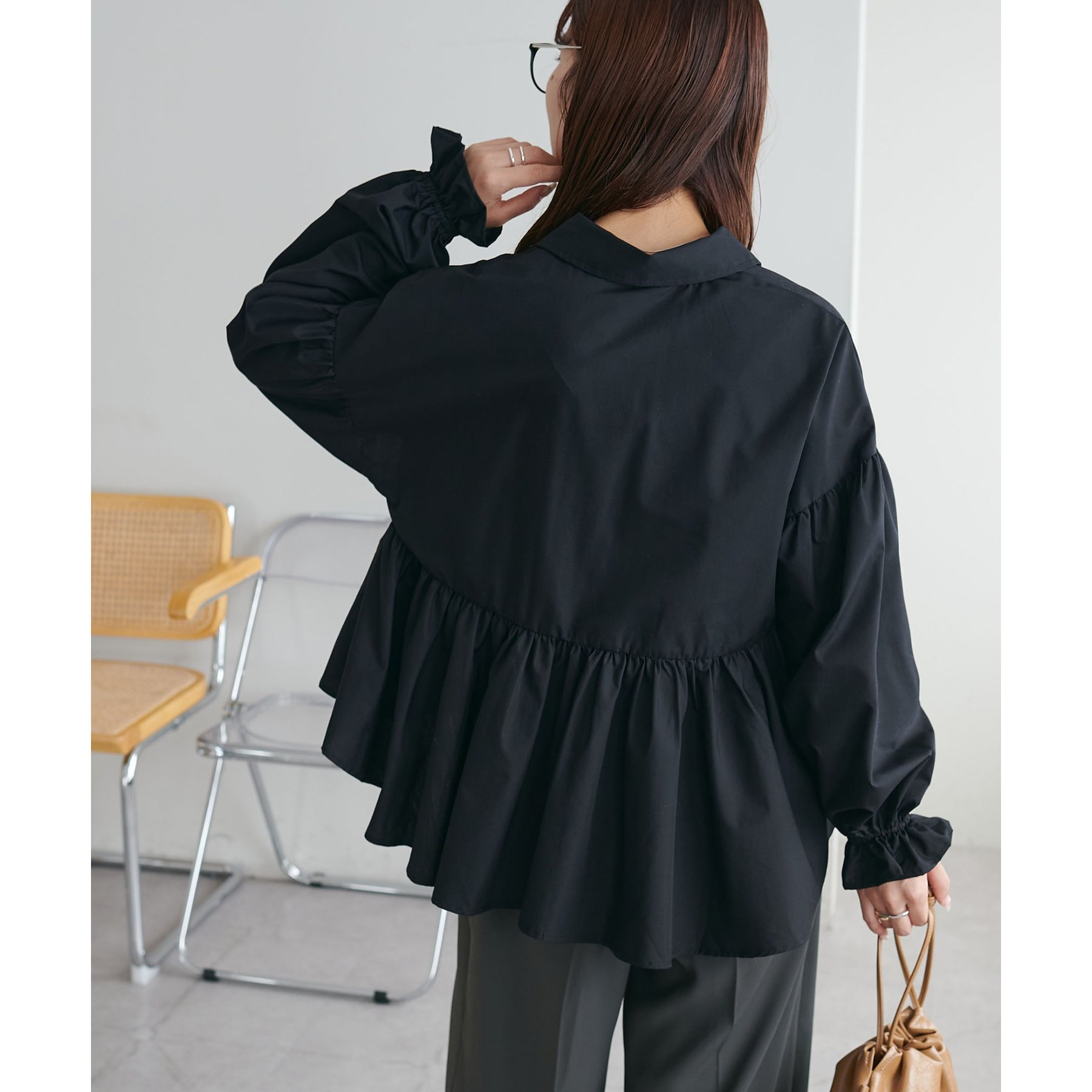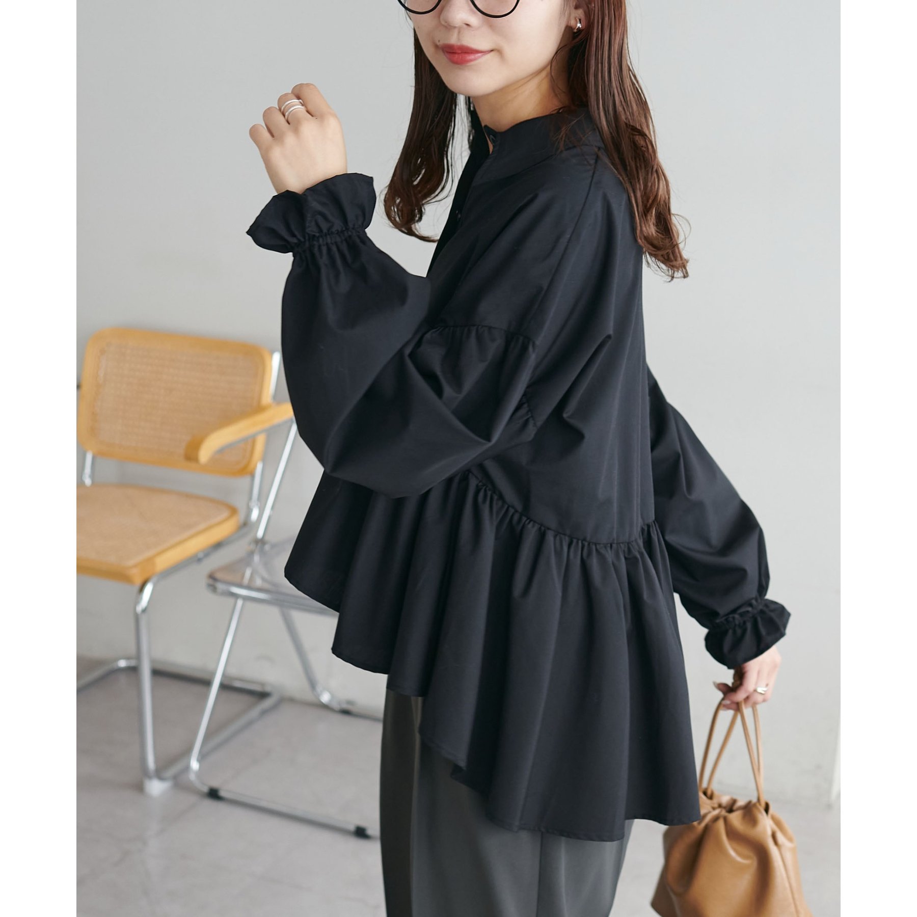 【WEB限定】衿付きラウンドティアードブラウス
