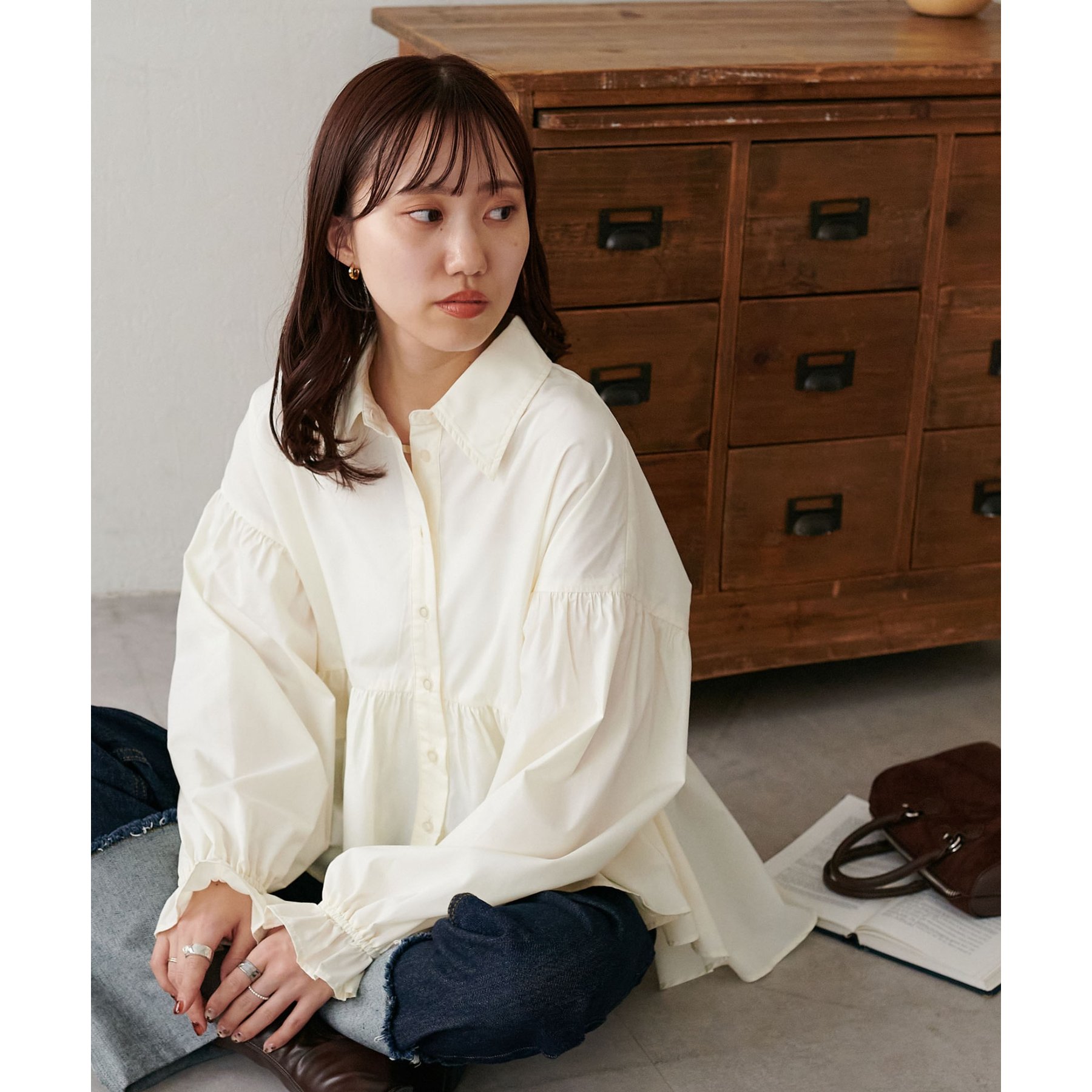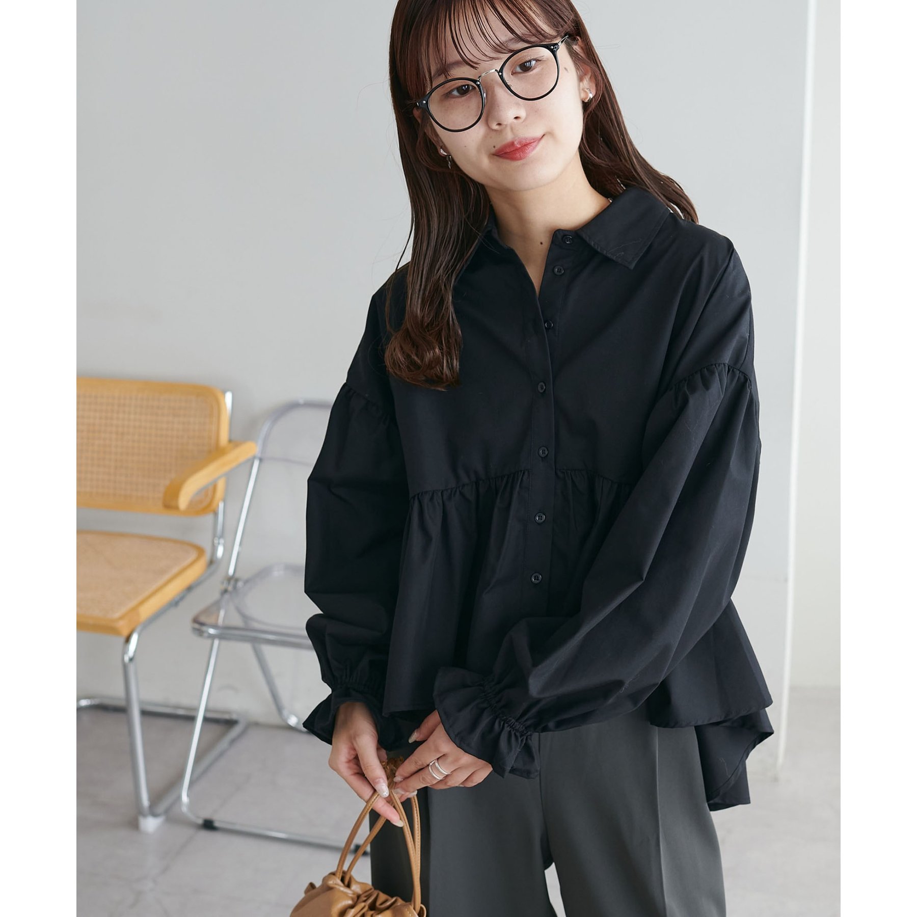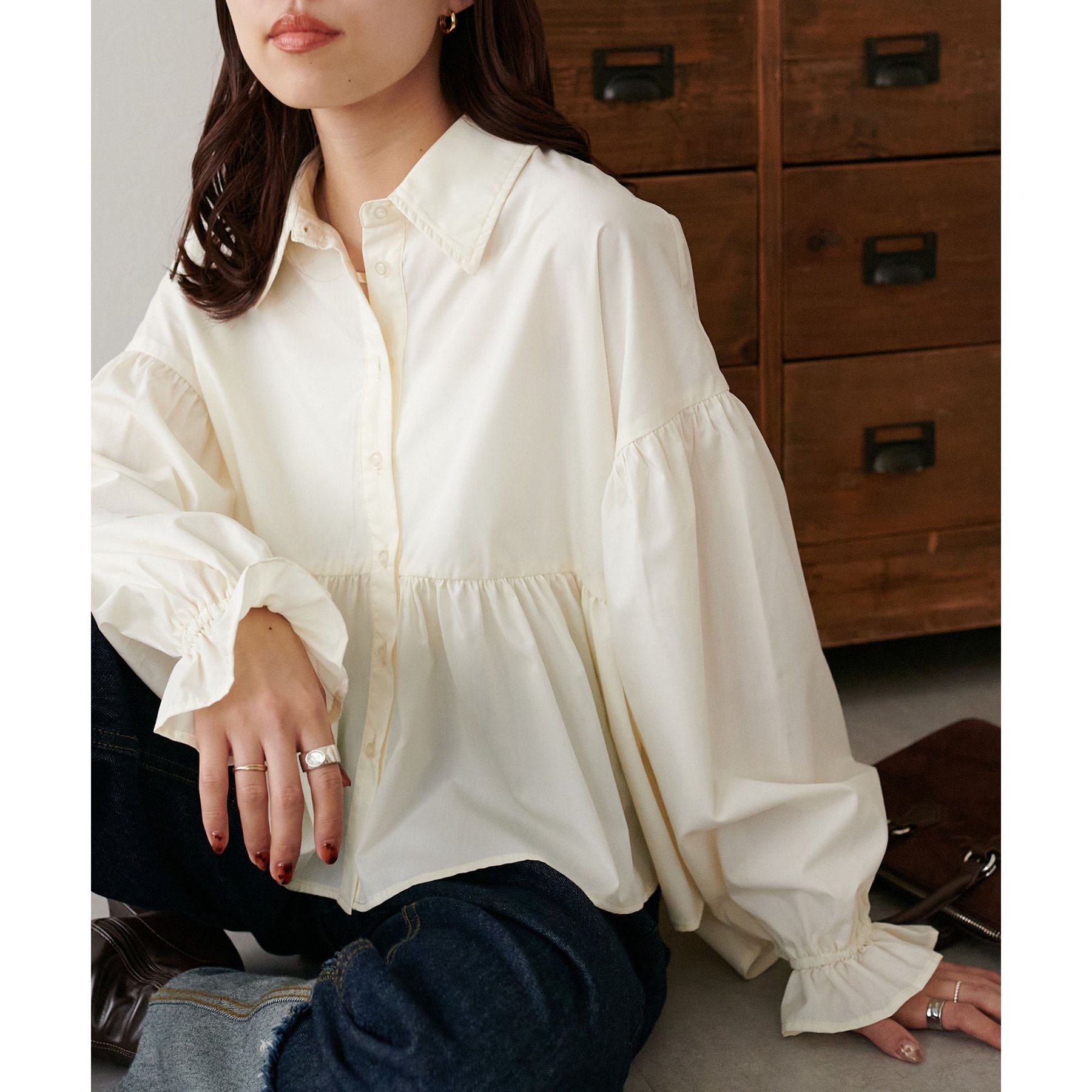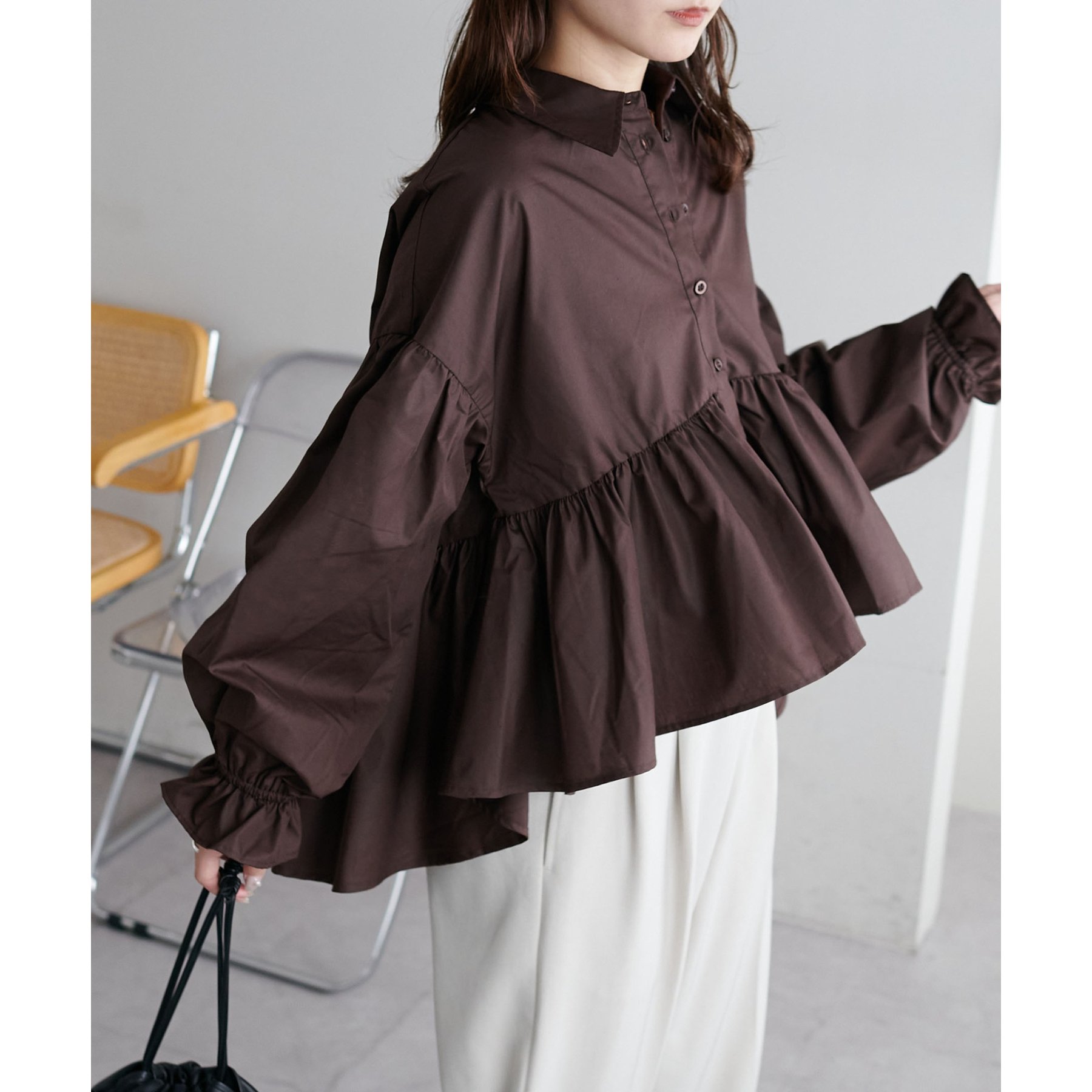 【WEB限定】衿付きラウンドティアードブラウス