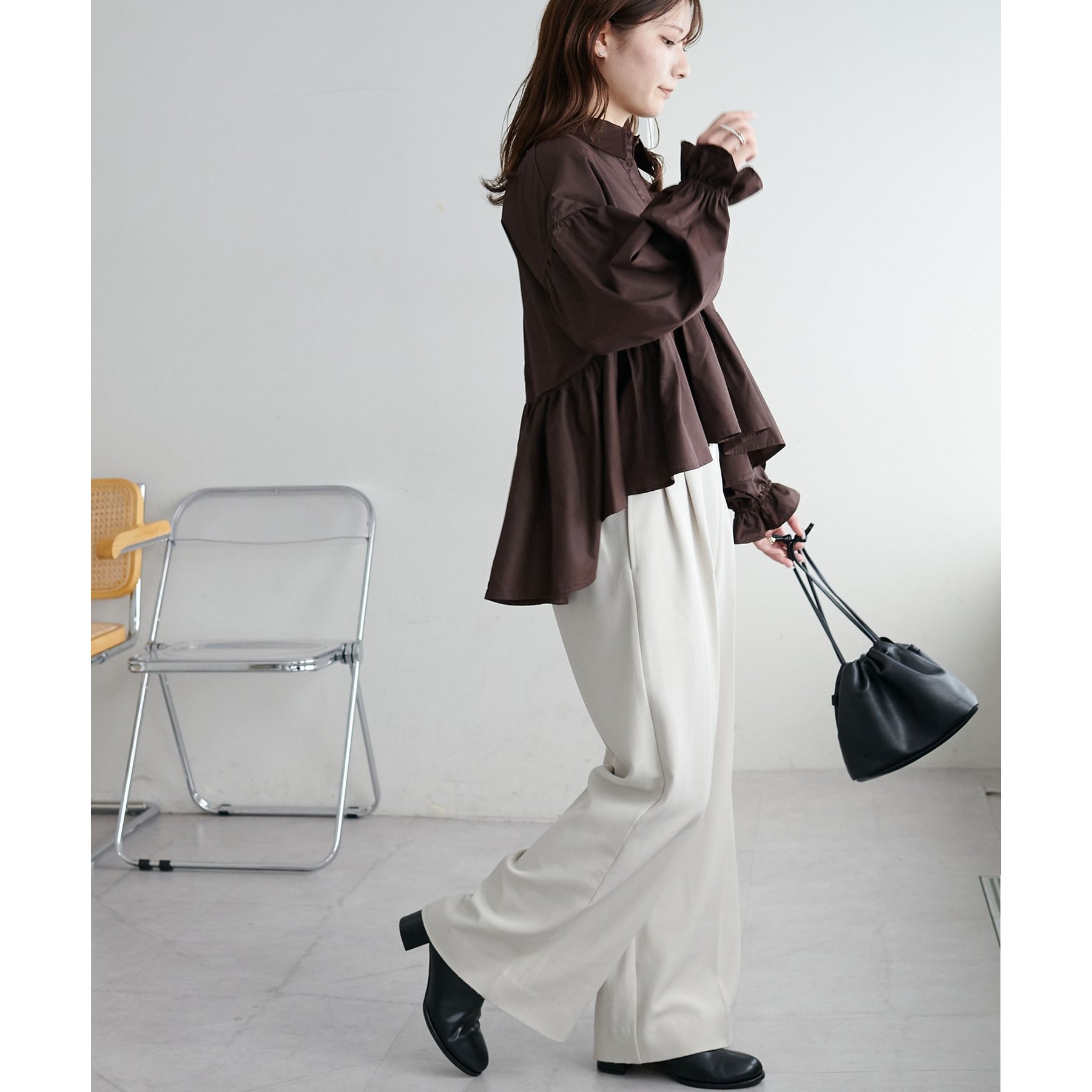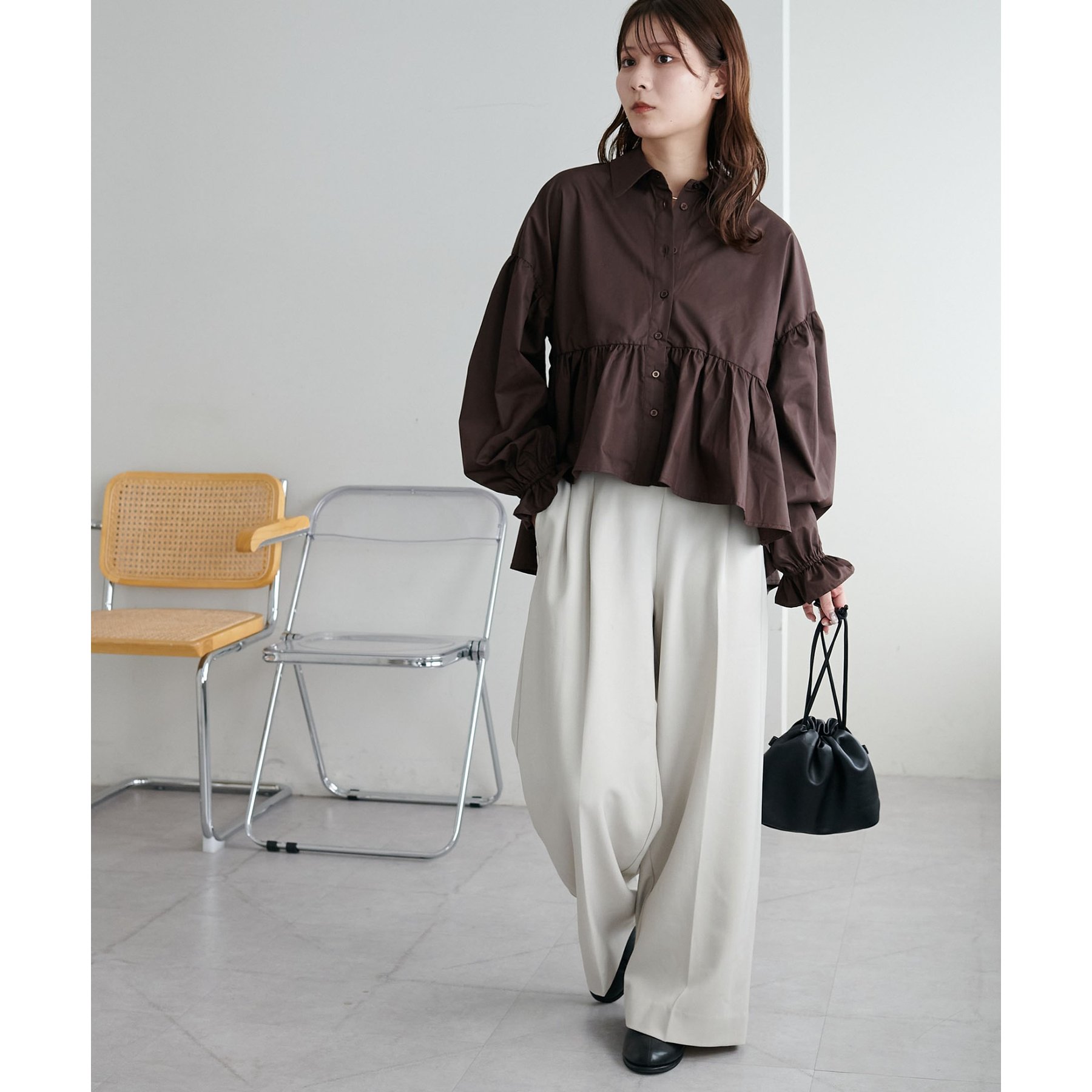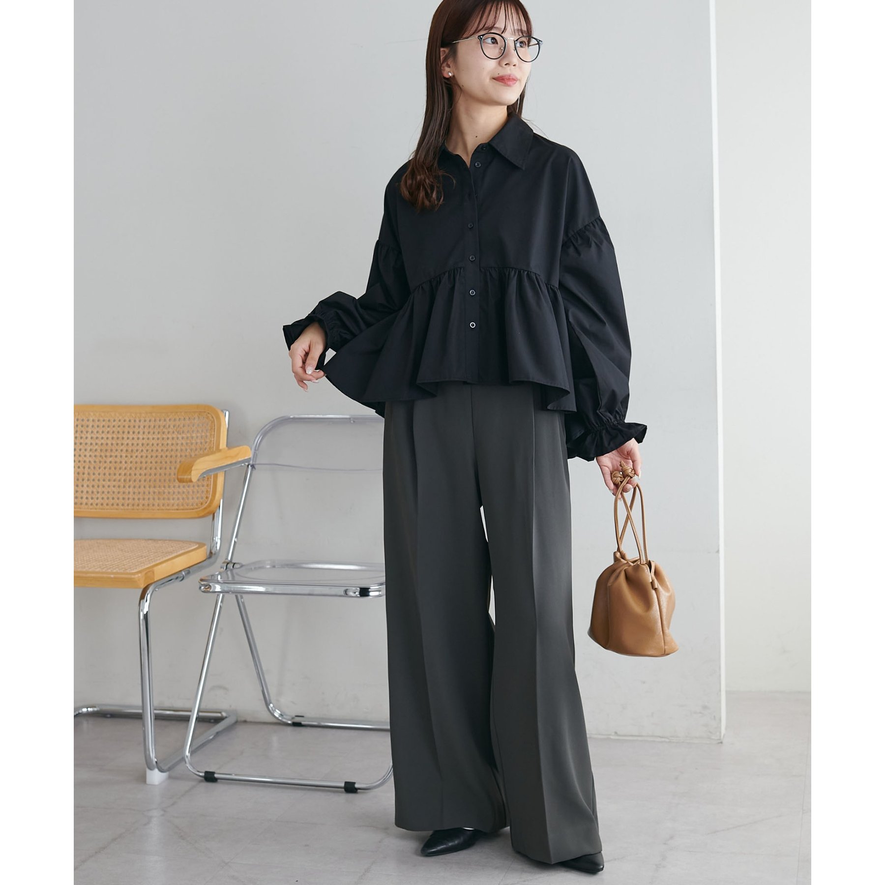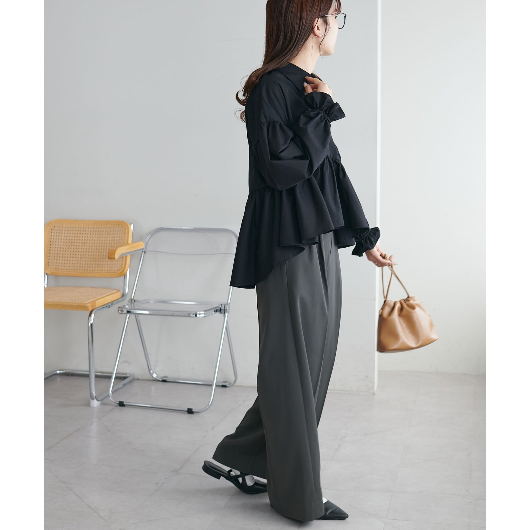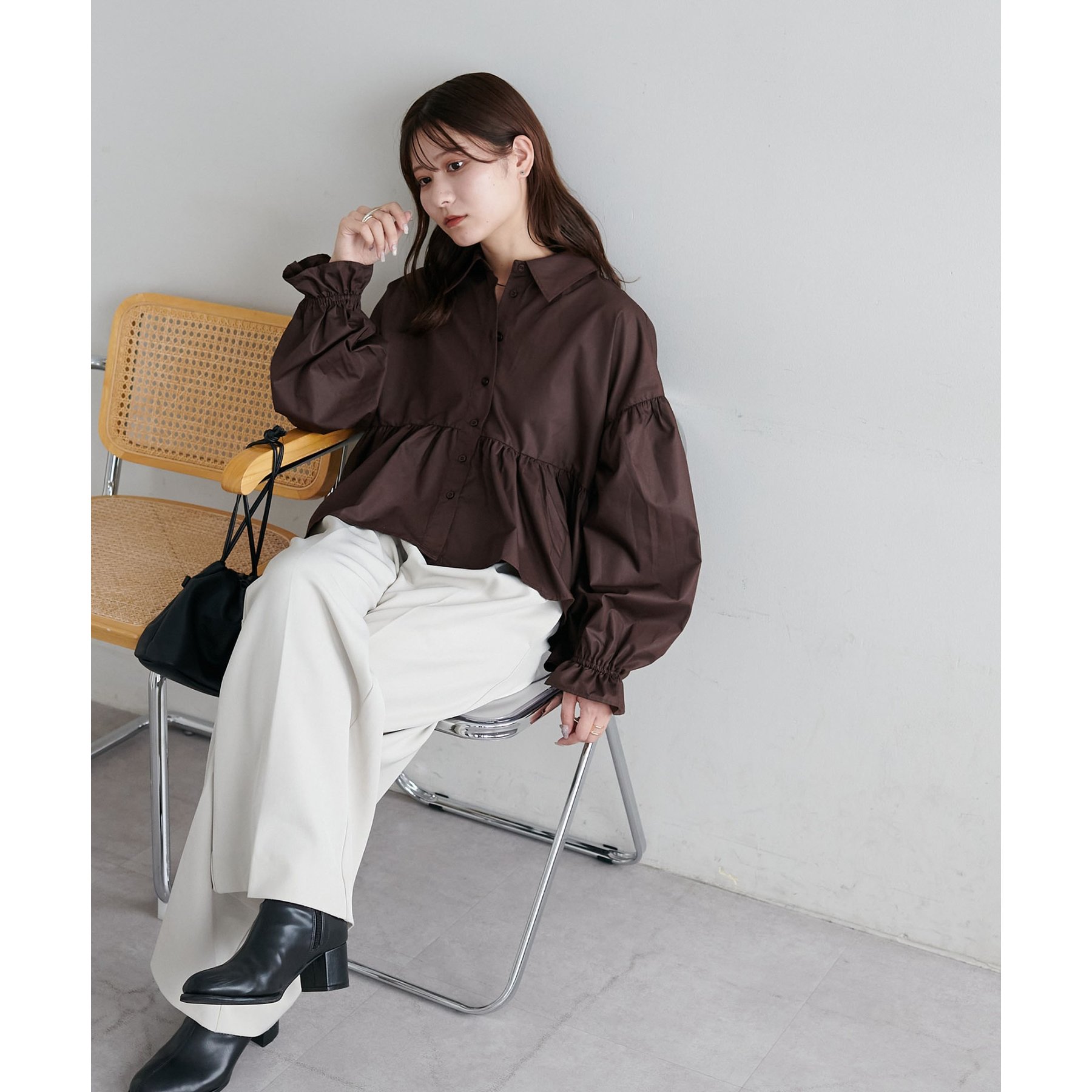 【WEB限定】衿付きラウンドティアードブラウス
