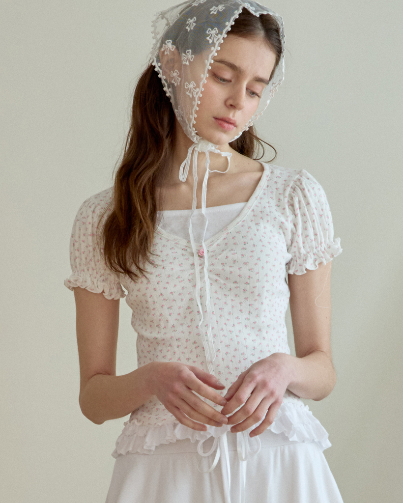 FLOWER SHIRRING PUFF T-SHIRT_IVORY