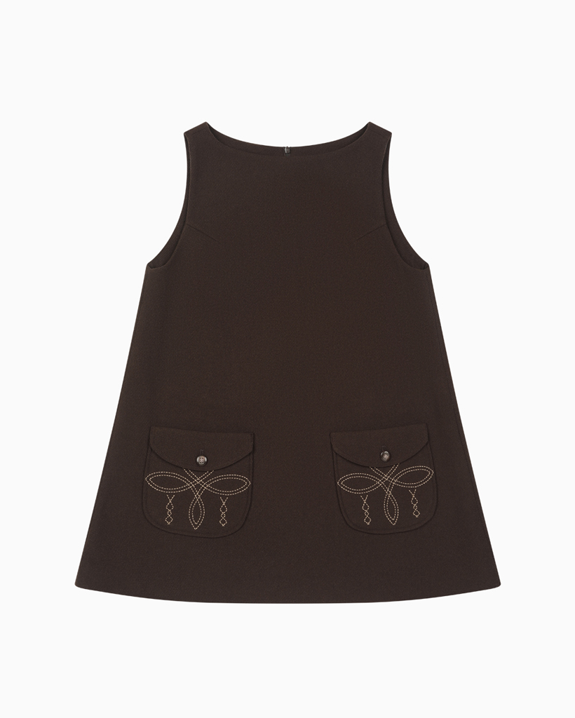 WESTERN STITCH POCKET DRESS, BROWN
