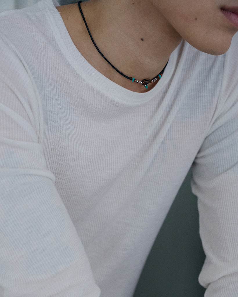 - 天然のウッド、ターコイズチップ、カレンシルバーなど、それぞれの素材が持つ独自の質感と色合いが調和し、地球本来の美しさを表現しました。