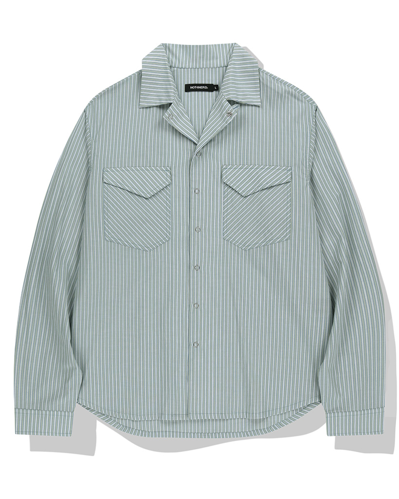 Relaxed Stripe Open Collar Shirt - Green