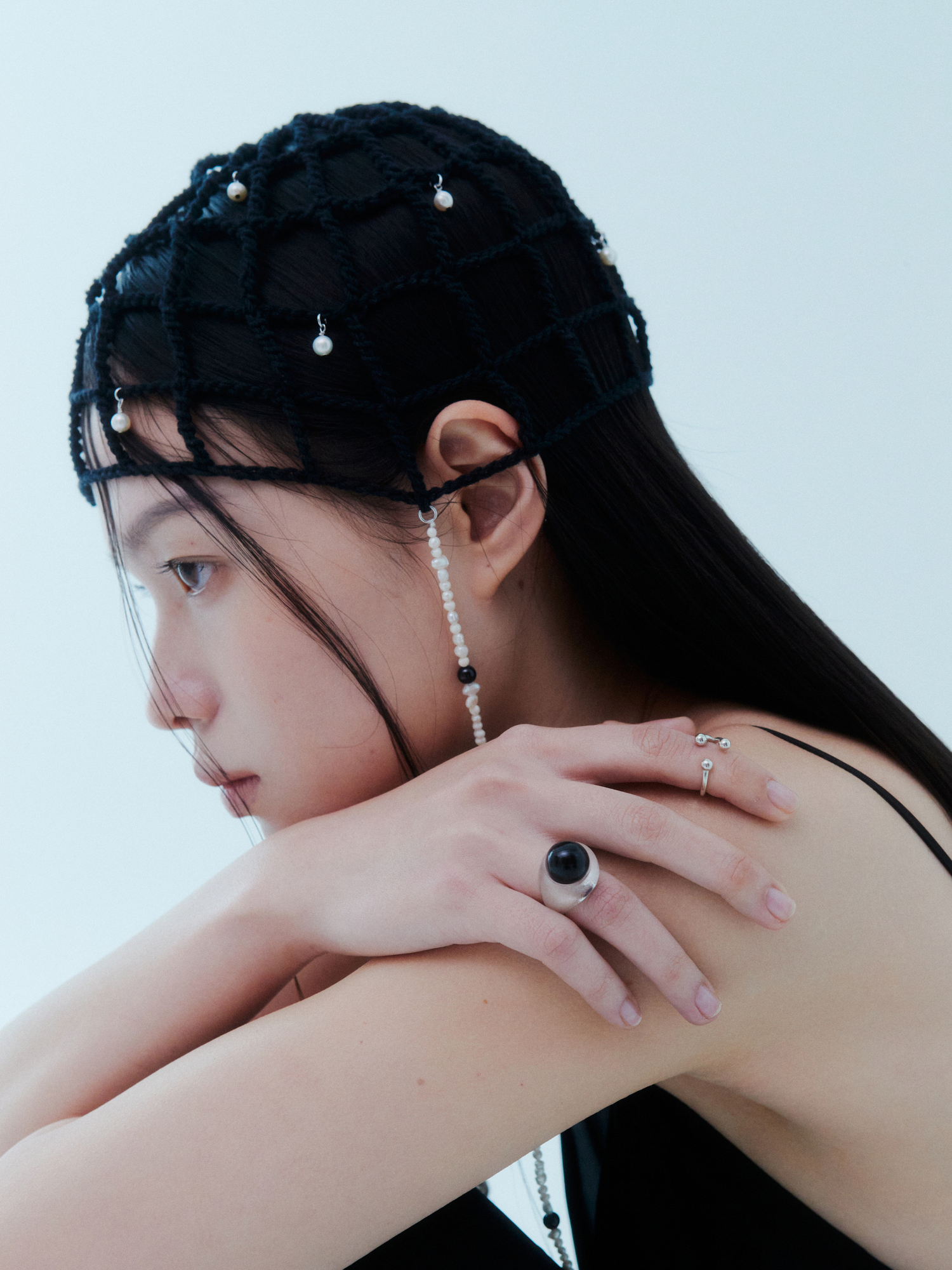 Black frog eye ring