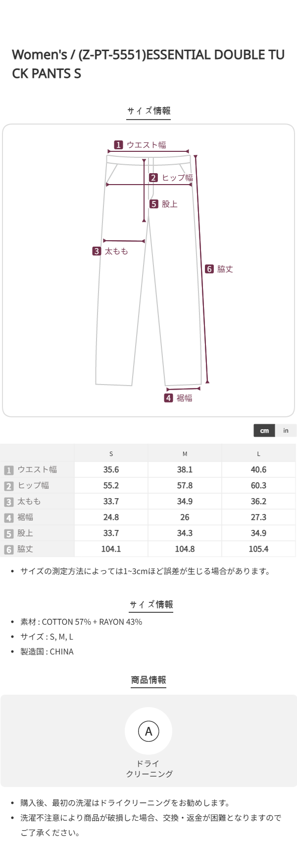 (Z-PT-5551)ESSENTIAL DOUBLE TUCK PANTS S