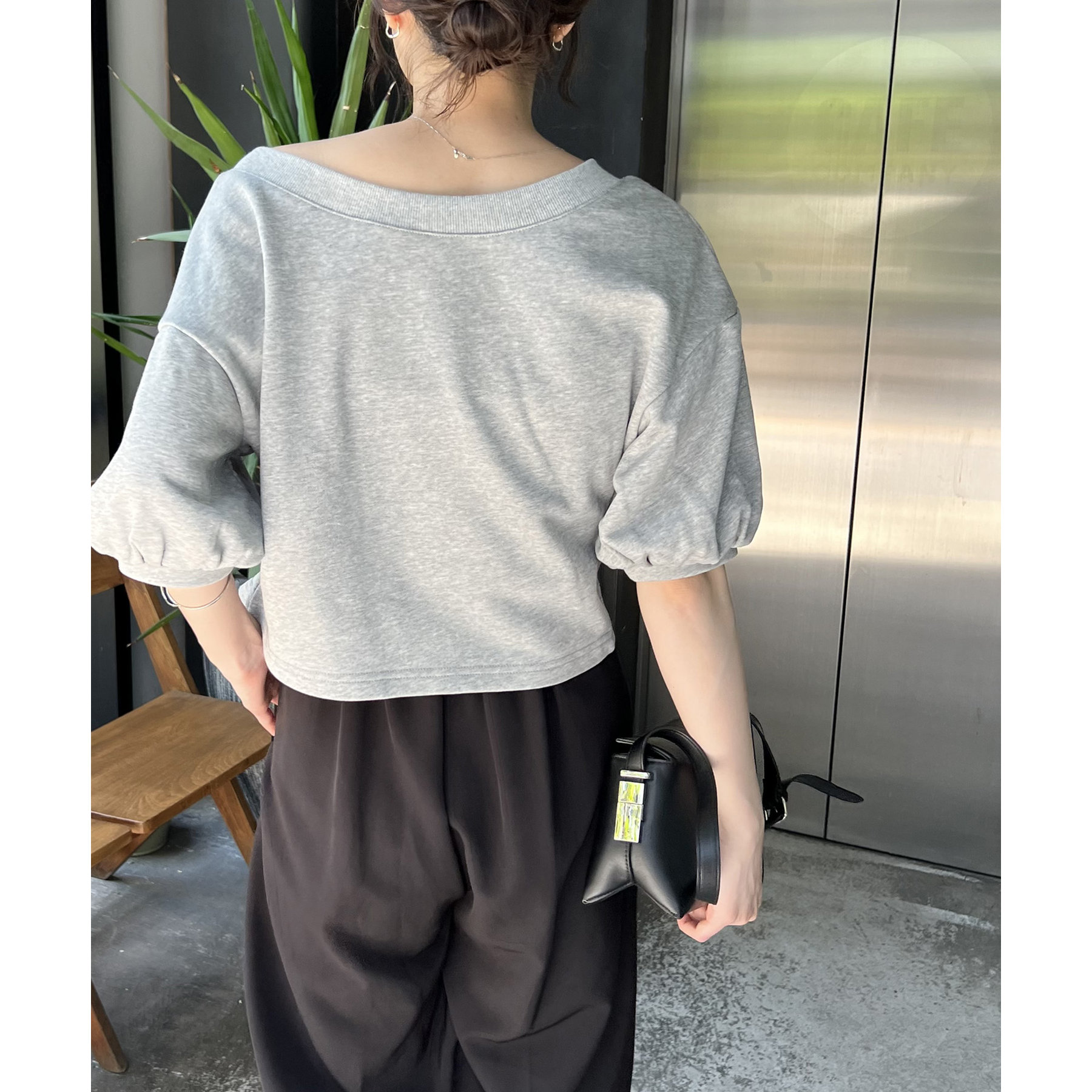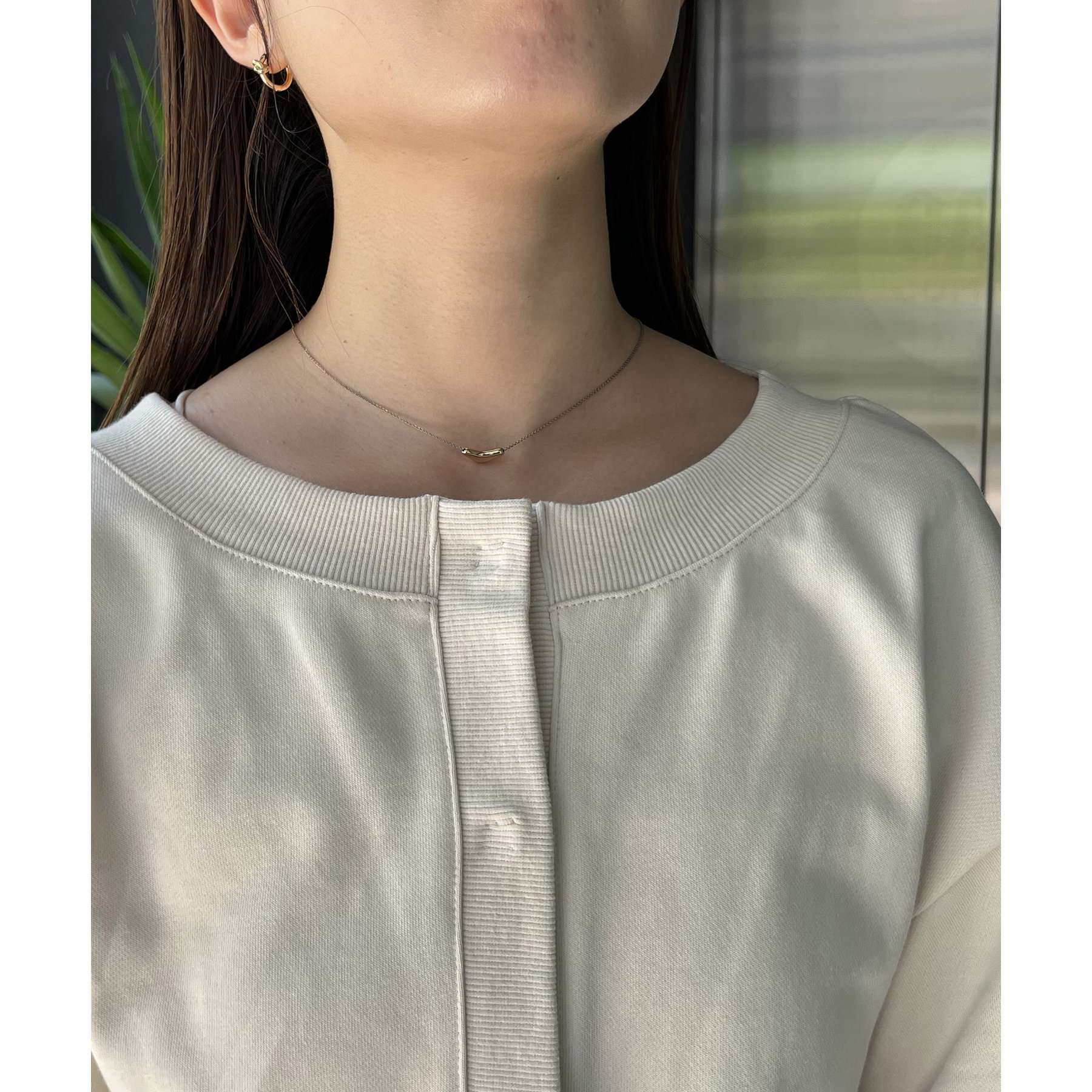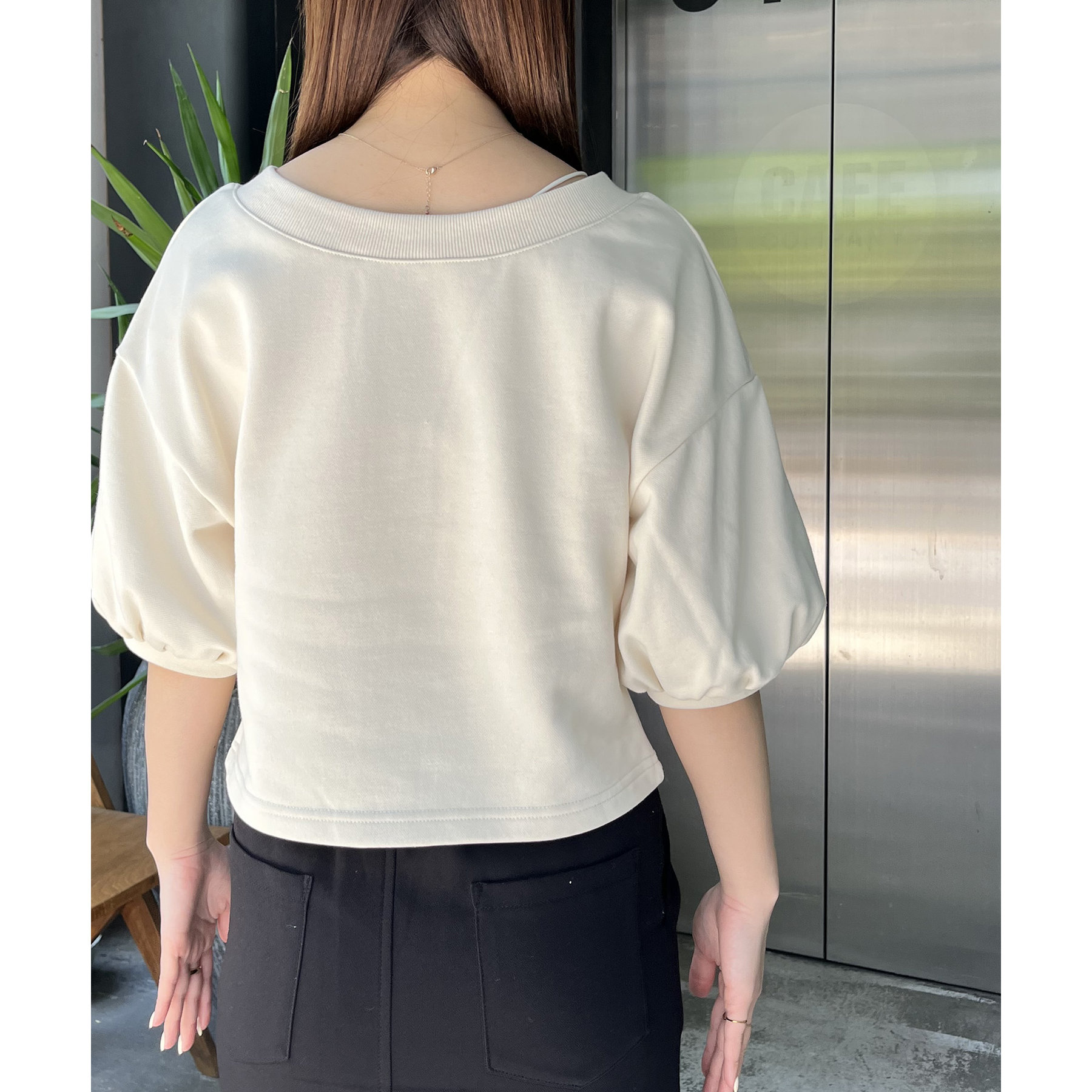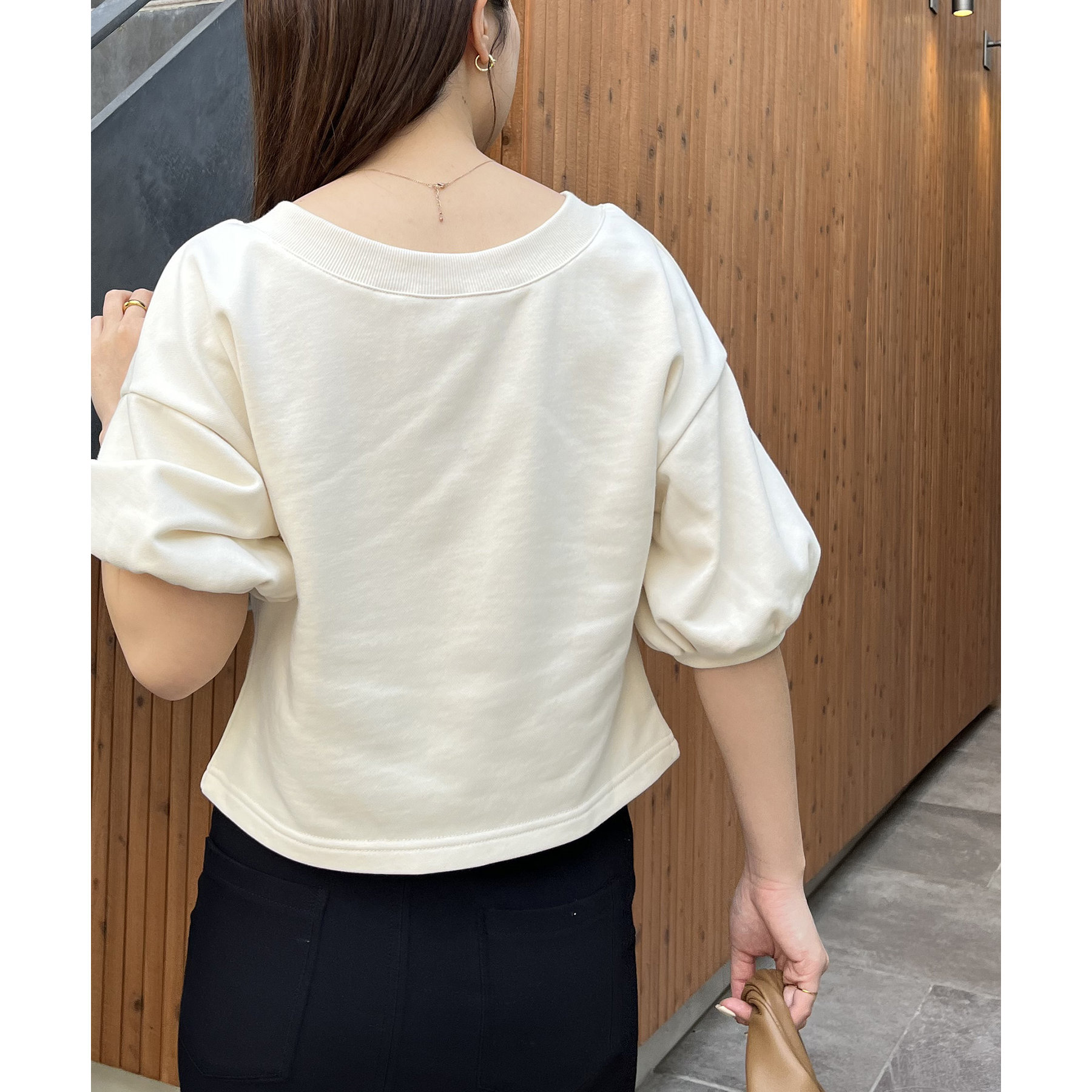 ・少し広めに開いたネックが女性らしい印象に