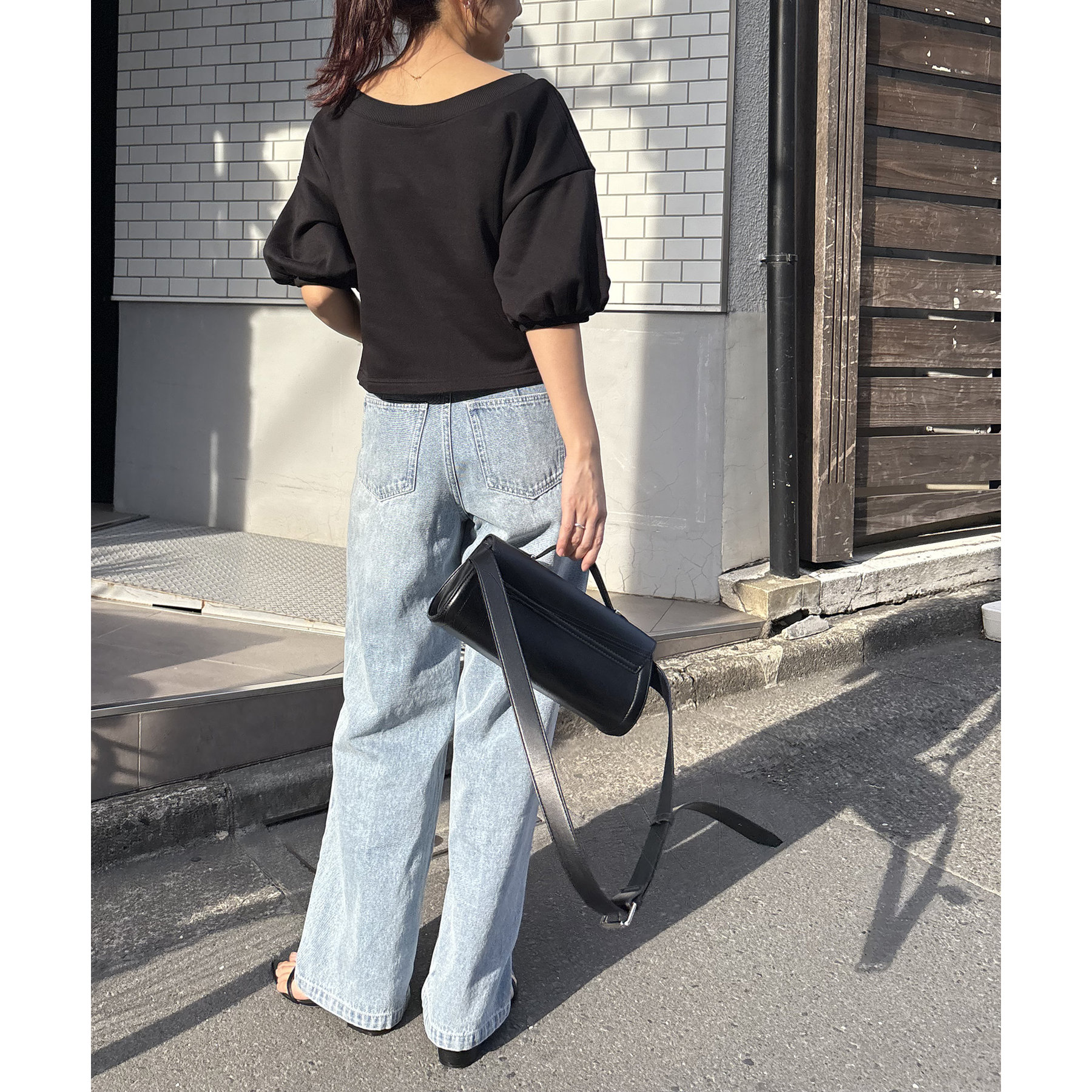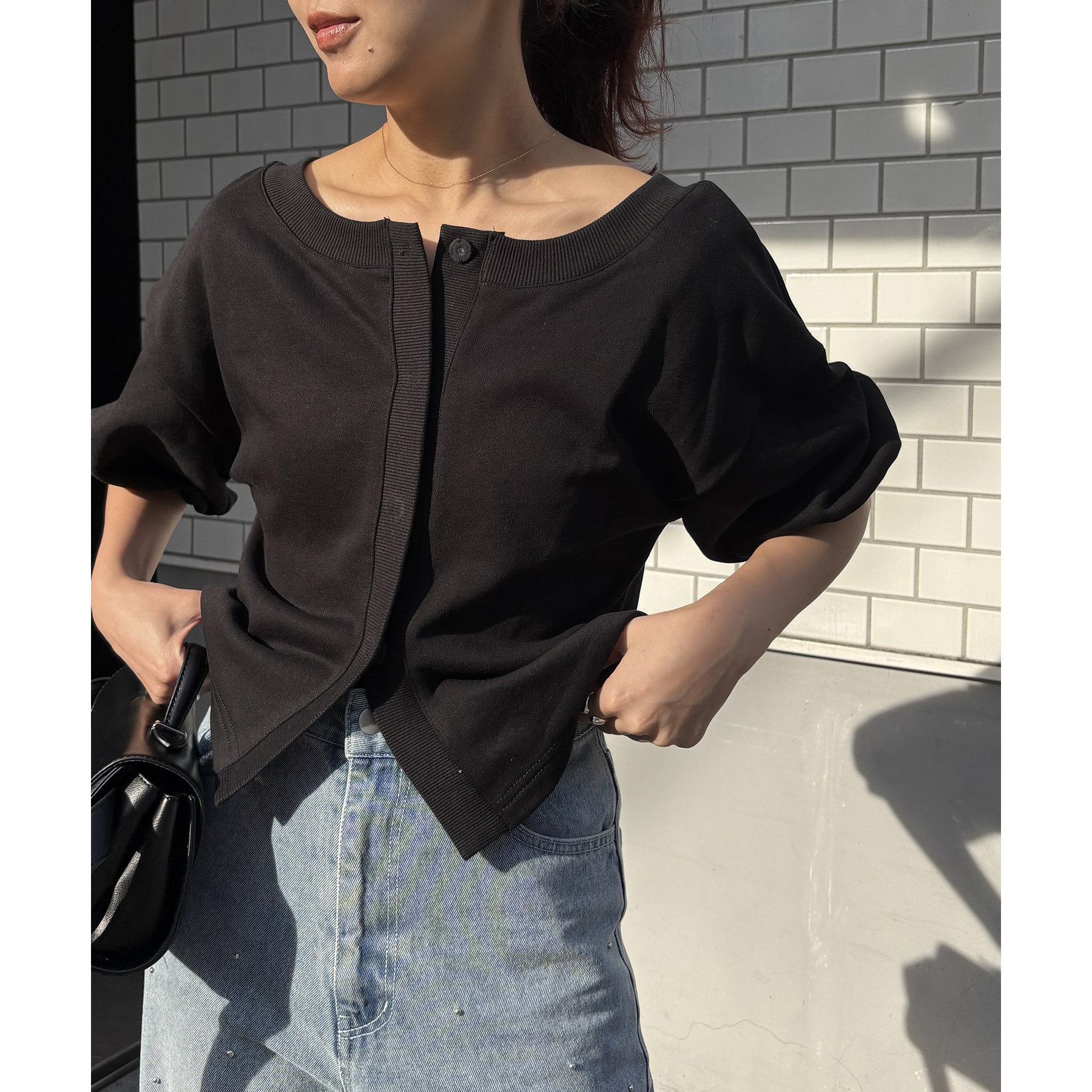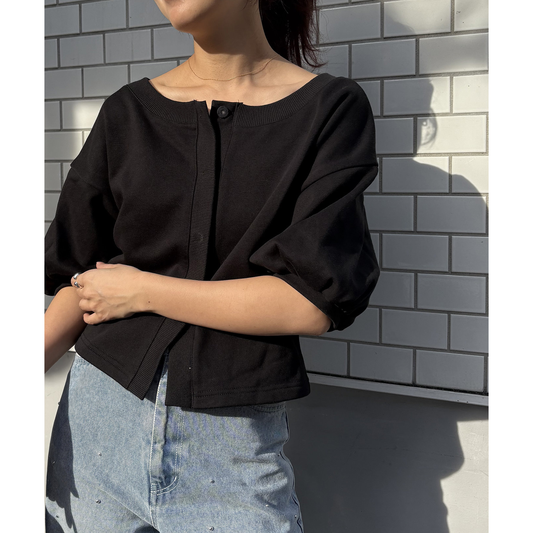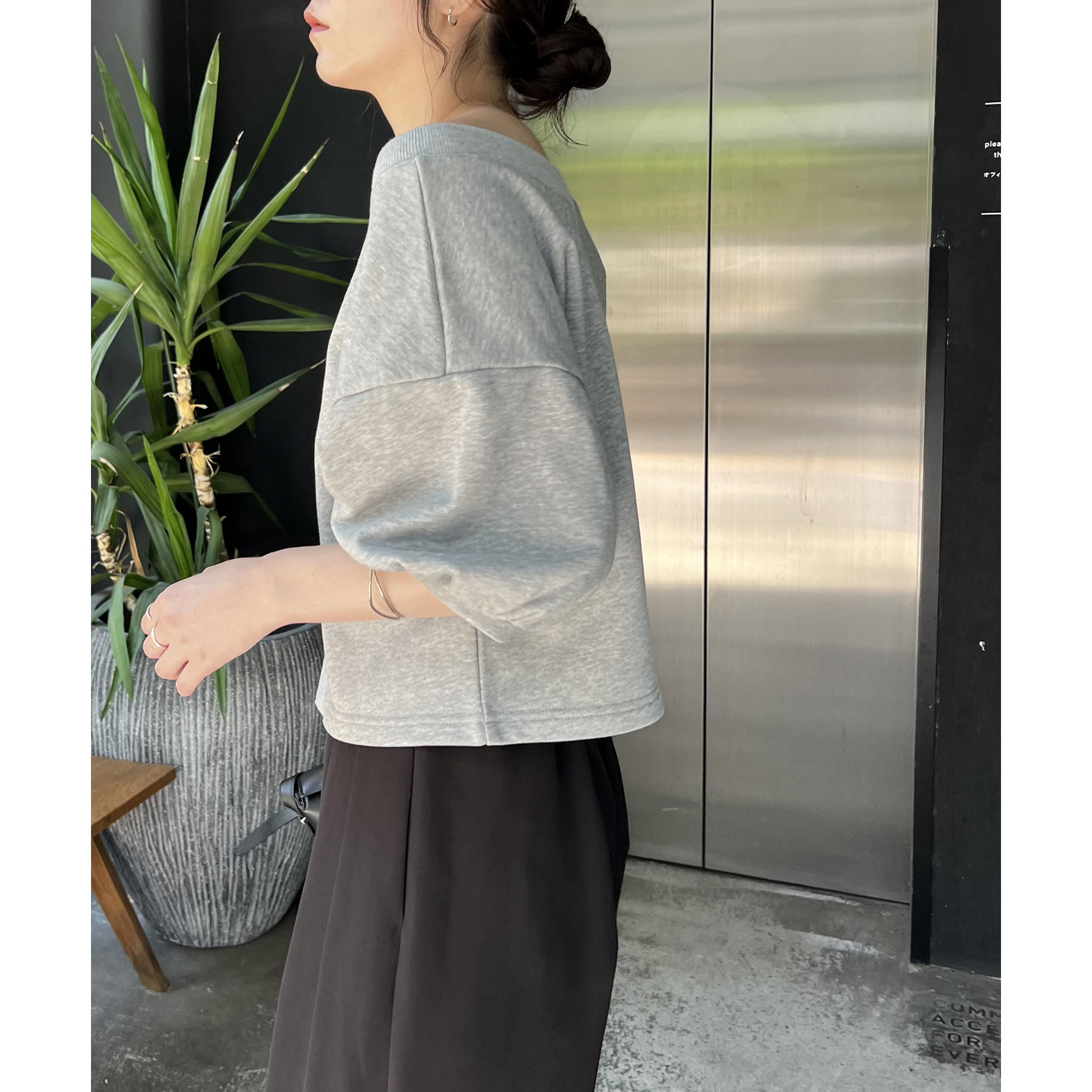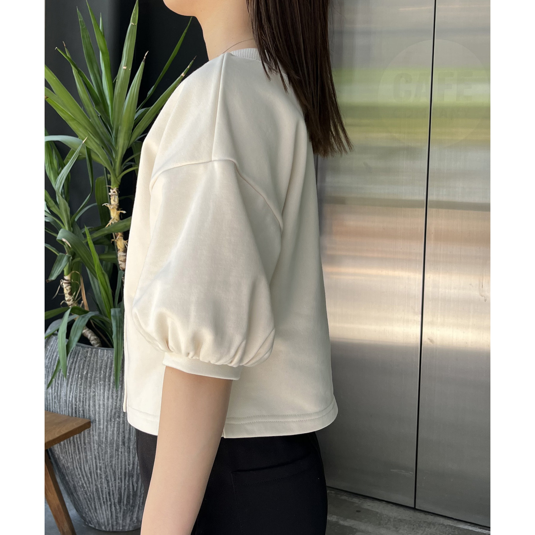 ・少し広めに開いたネックが女性らしい印象に