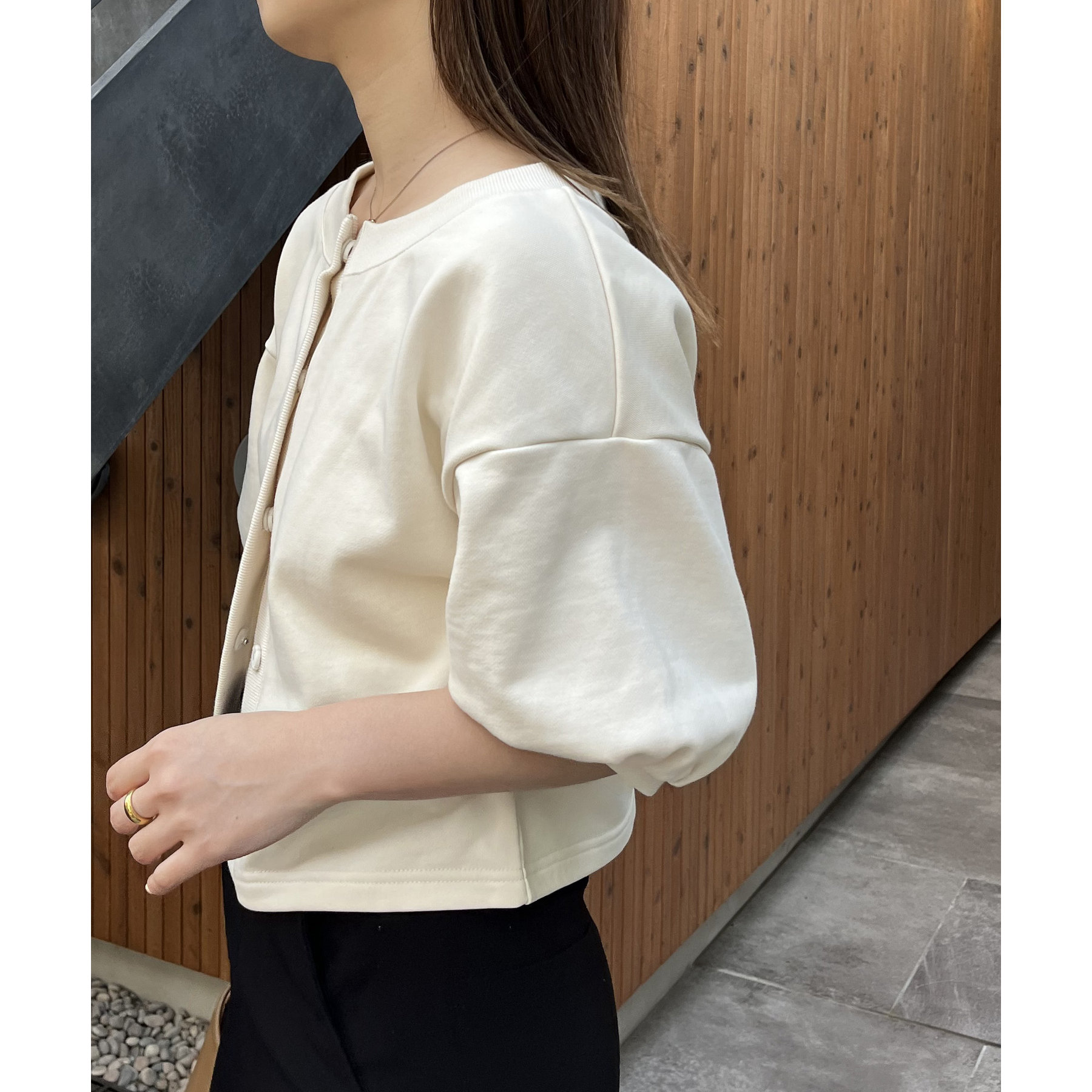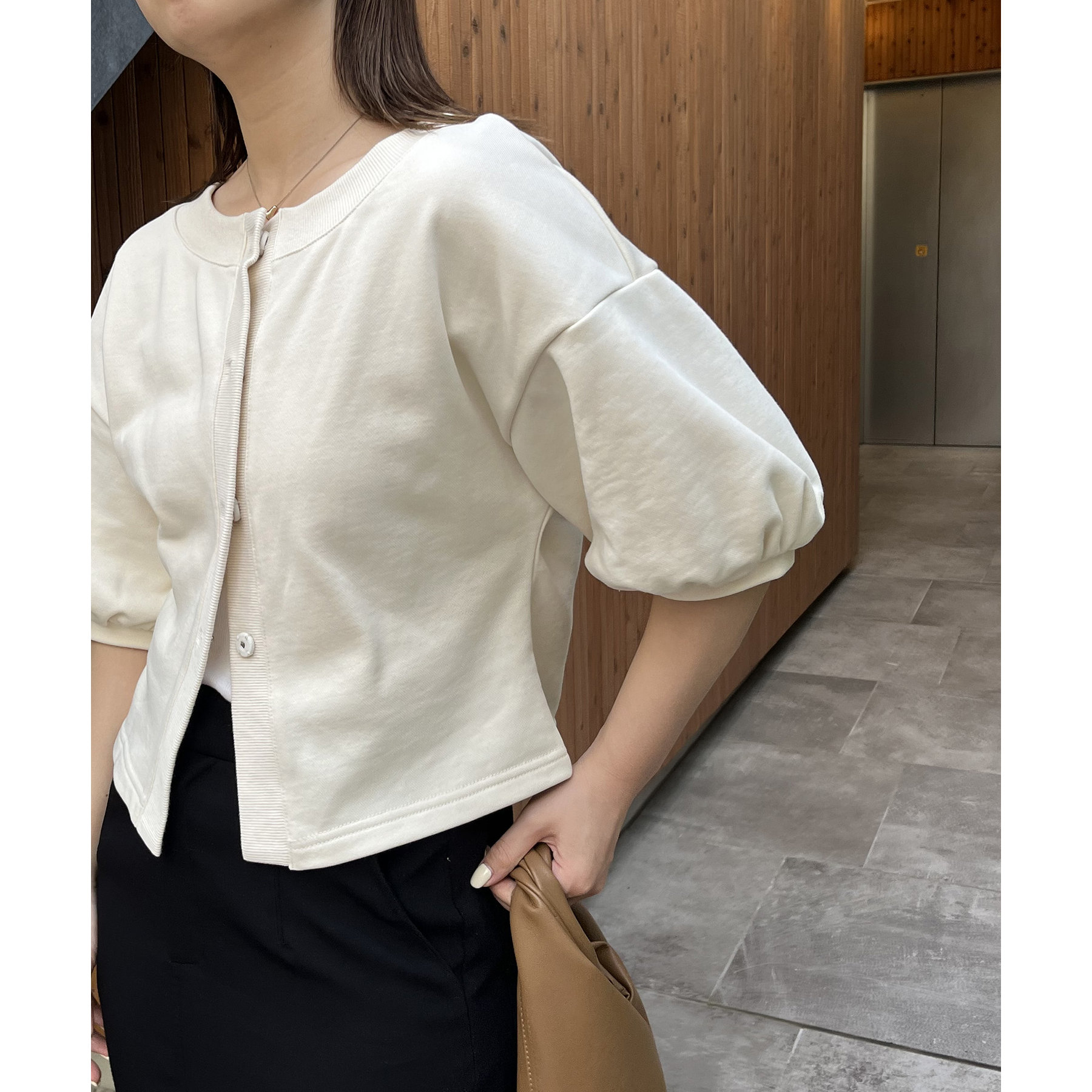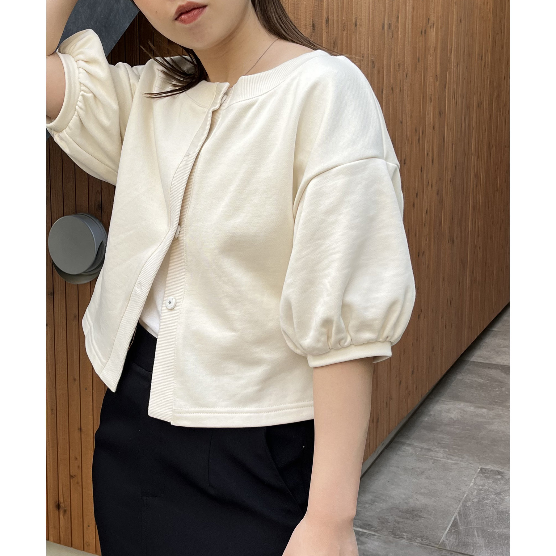 ・パフ袖がかわいいスウェットカーディガン