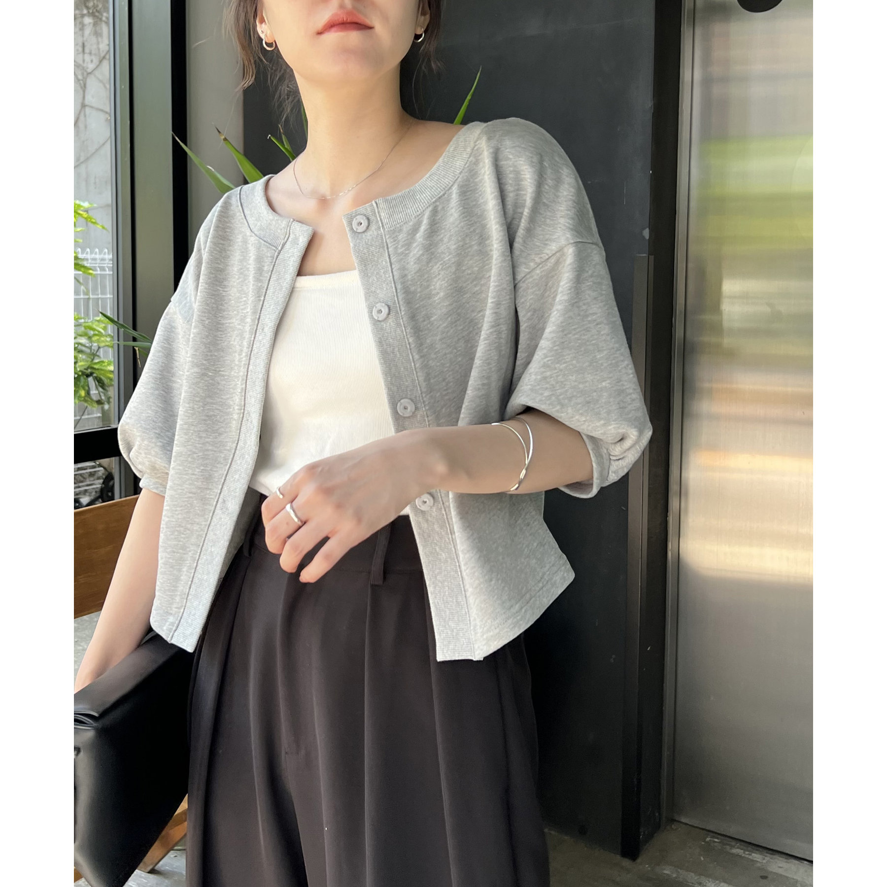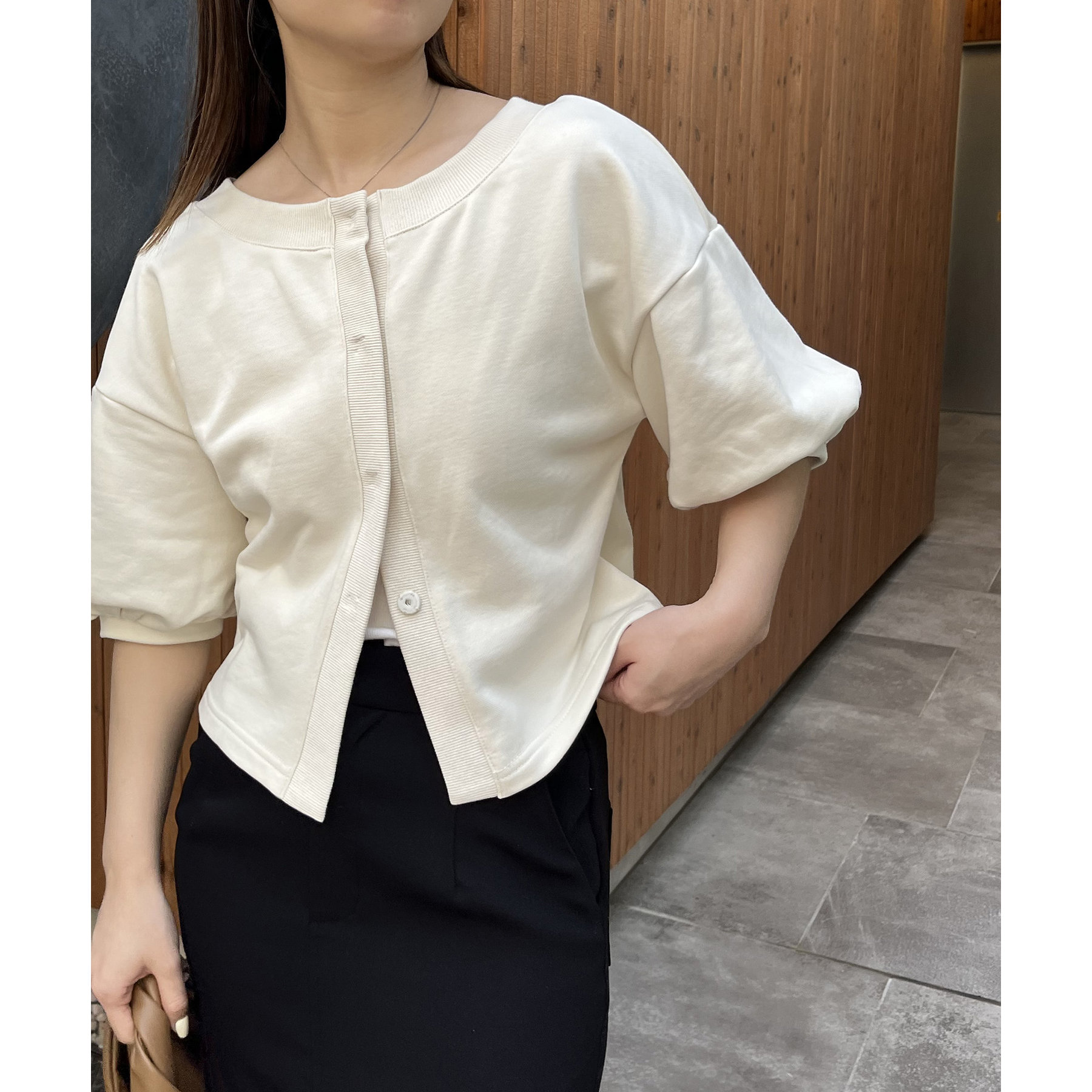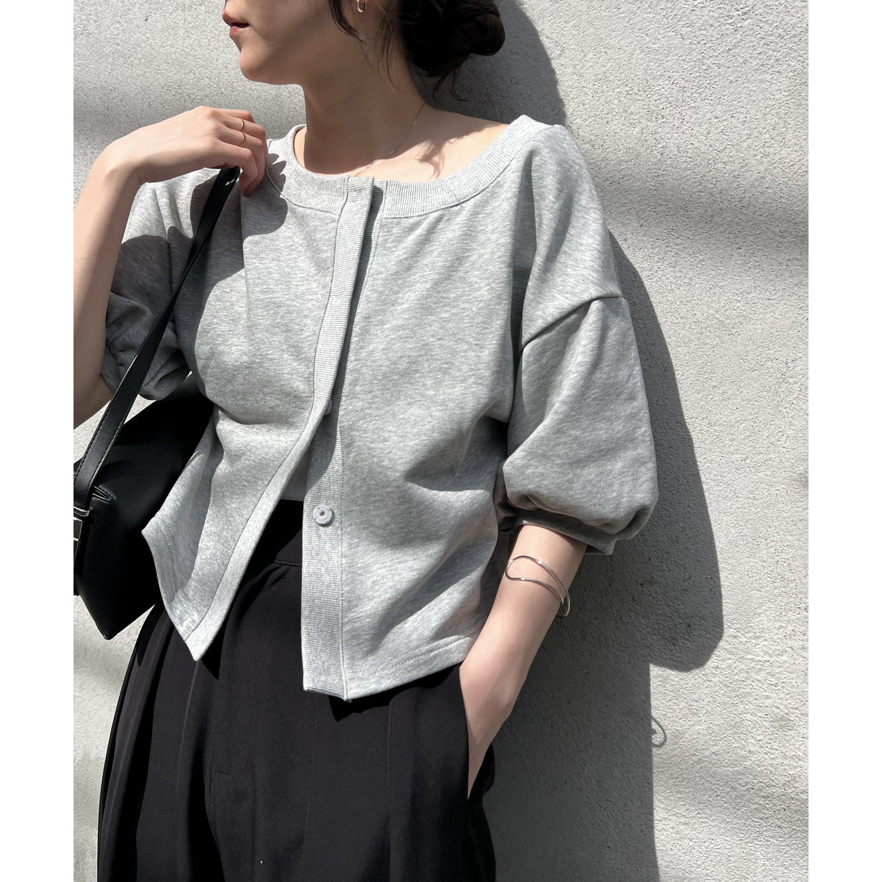・パフ袖がかわいいスウェットカーディガン