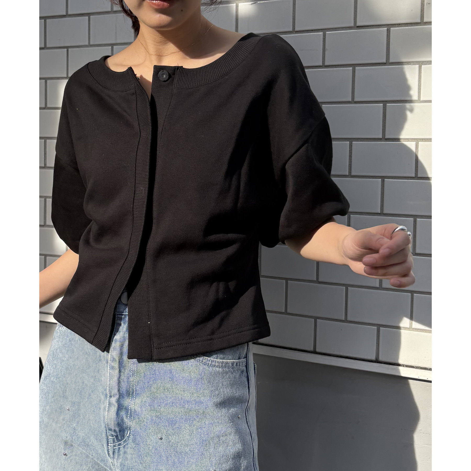 ・ボタンを開けて羽織で着ても◎