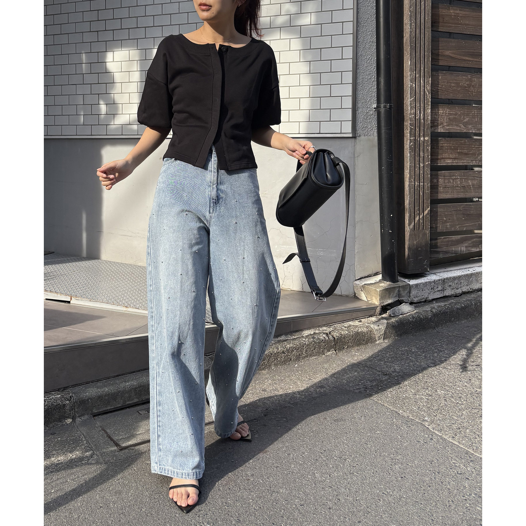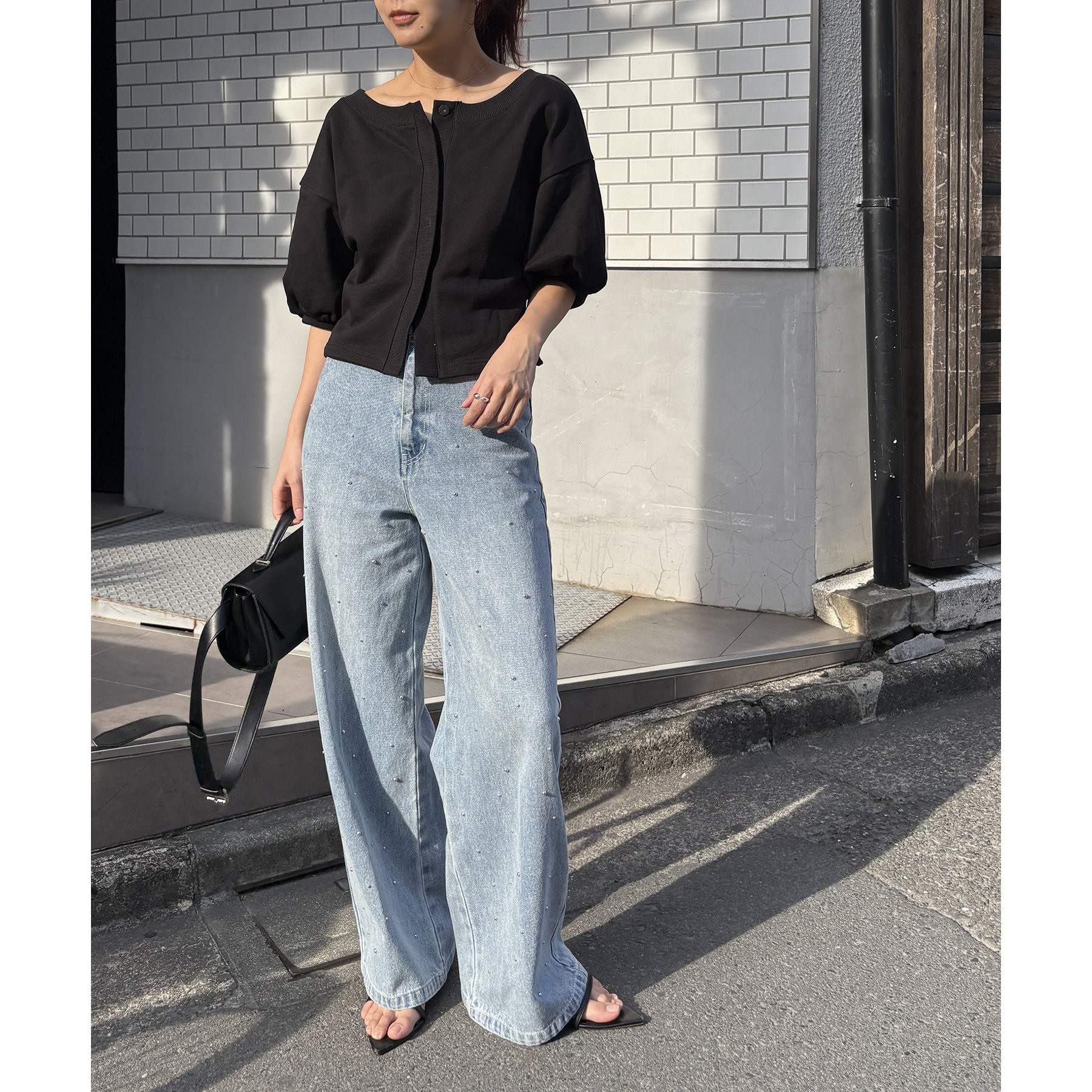 【ブラック着用アイテム】シルバードットデニム、ラメトップスフレアスカートSET