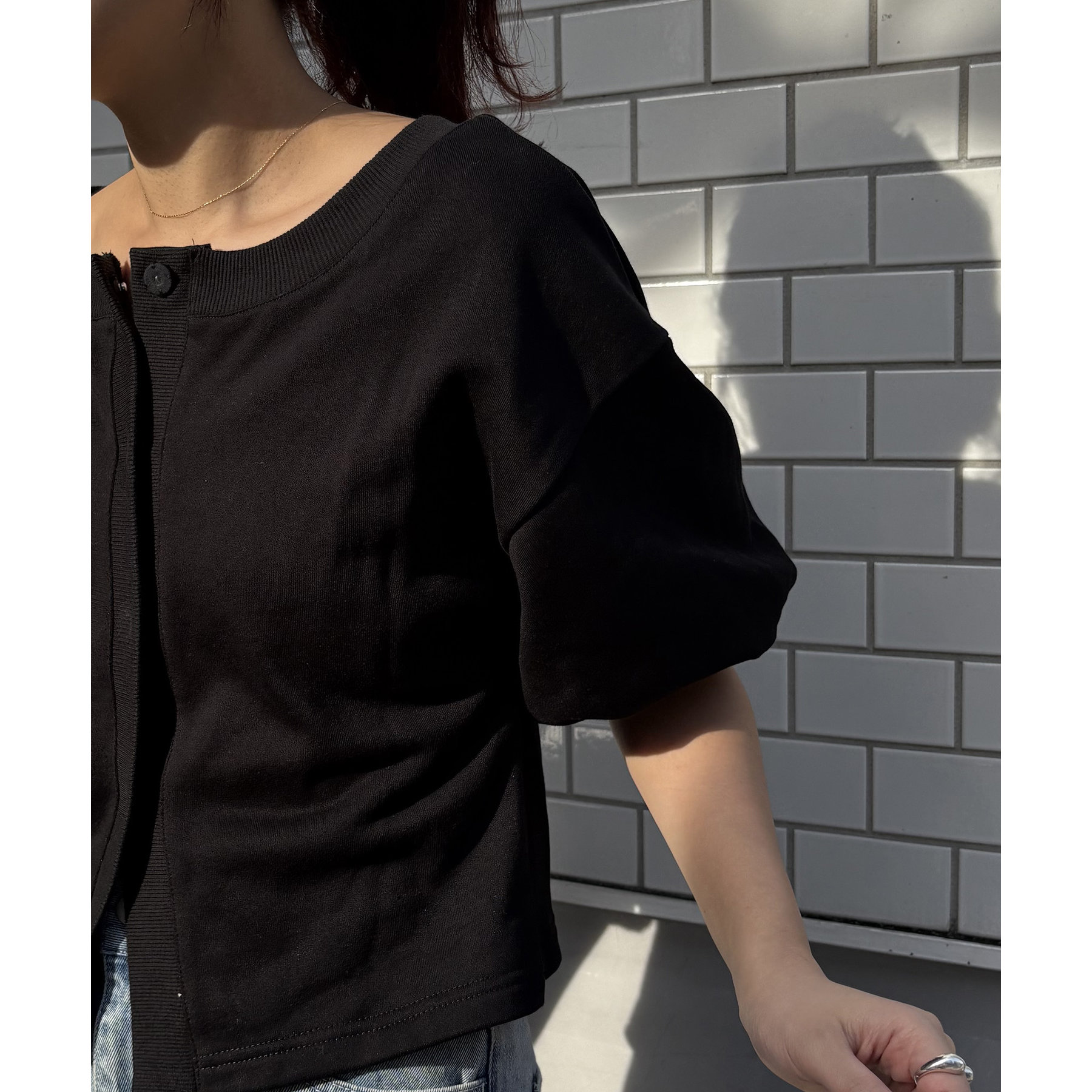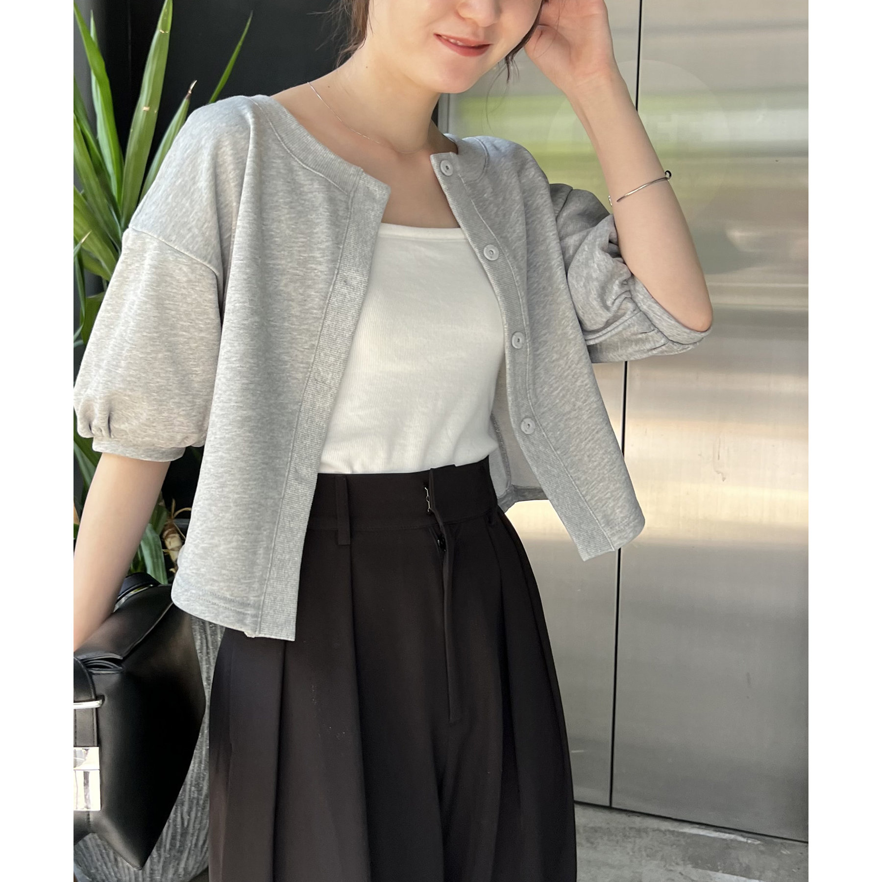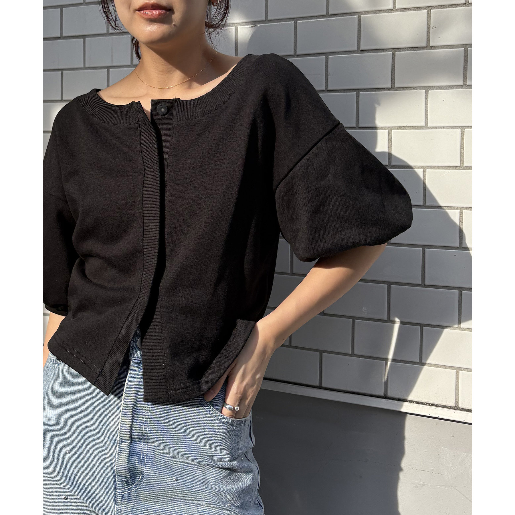 パフスリーブが可愛い綺麗めカーディガン