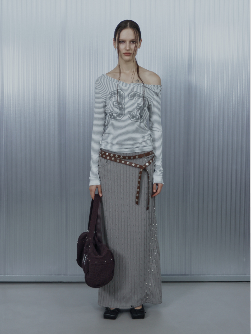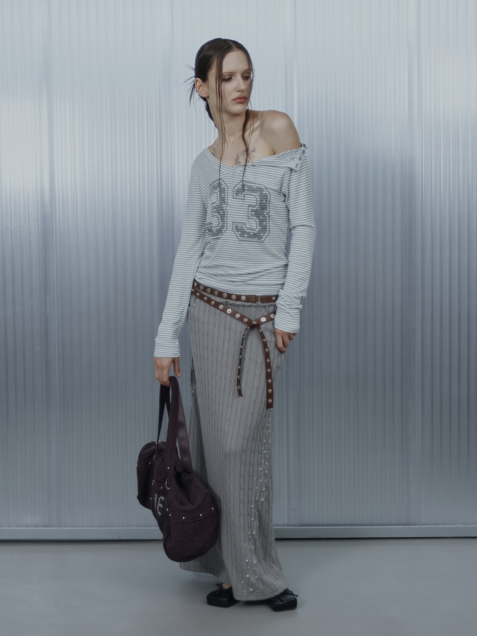 33 STRIPE V-NECK TOP / WHITE