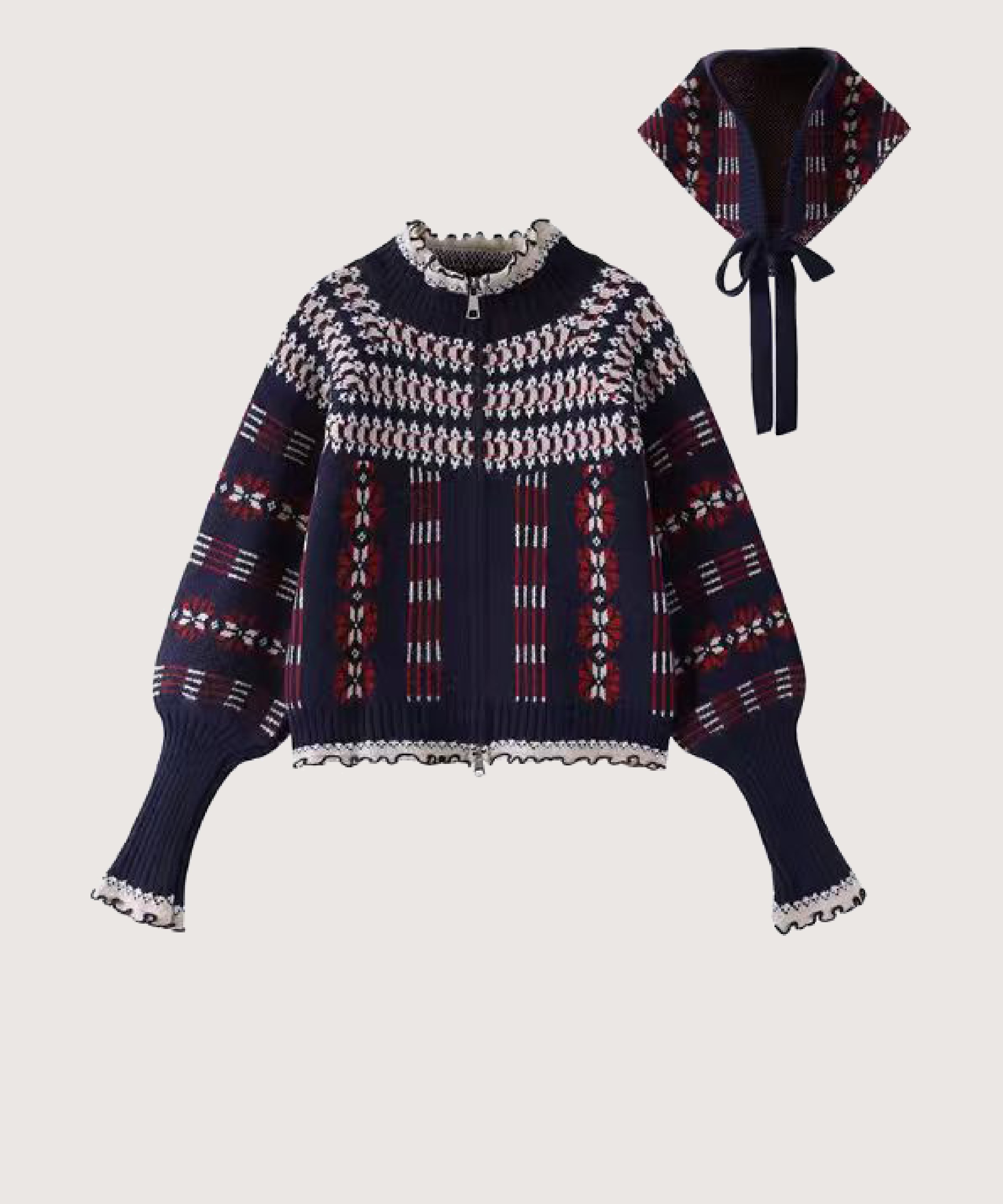 ショール付きジャカードカーディガン