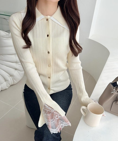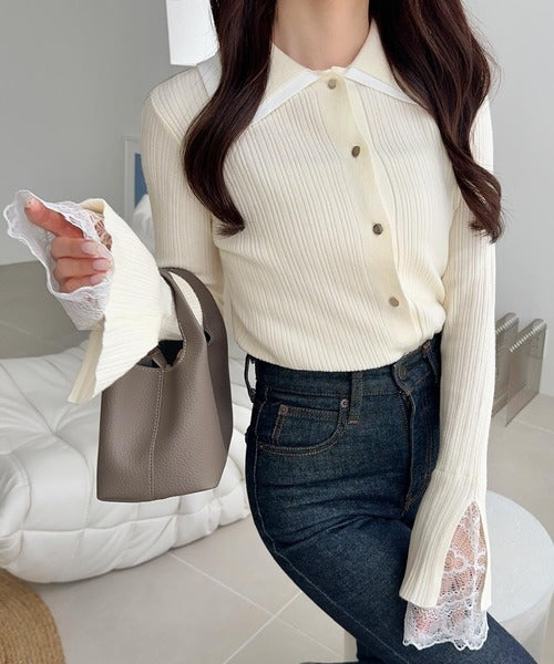 袖口のレースディテールで上品フェミニンな印象に。