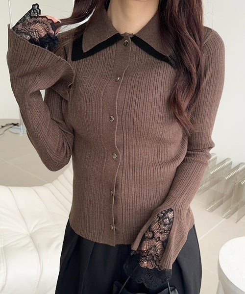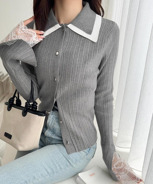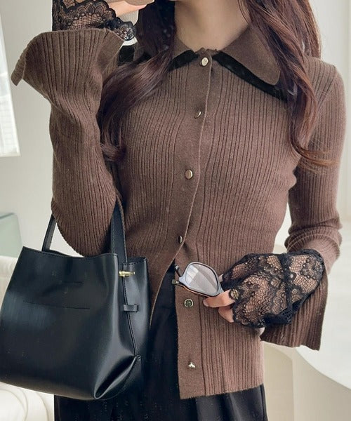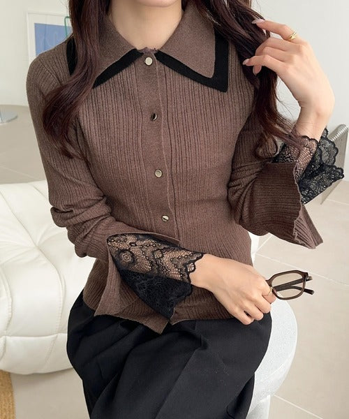 【mily bilet】トレンド感抜群のレトロクラシック♪ダブル襟袖レースニットプルオーバー mi1029148