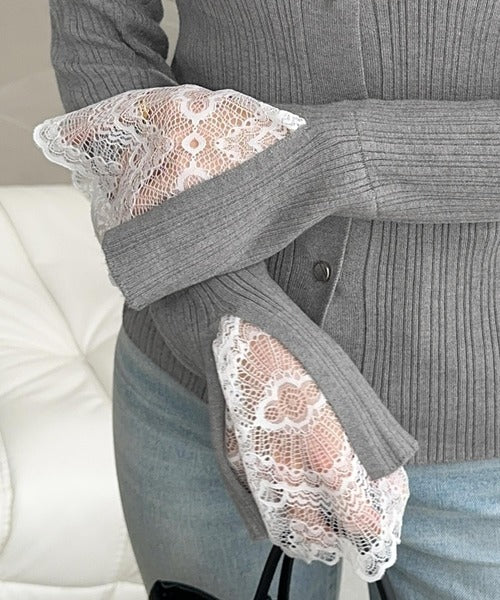 袖口にはフェミニンなレースをプラスし、カジュアルにもガーリーにも映える万能アイテム♪
