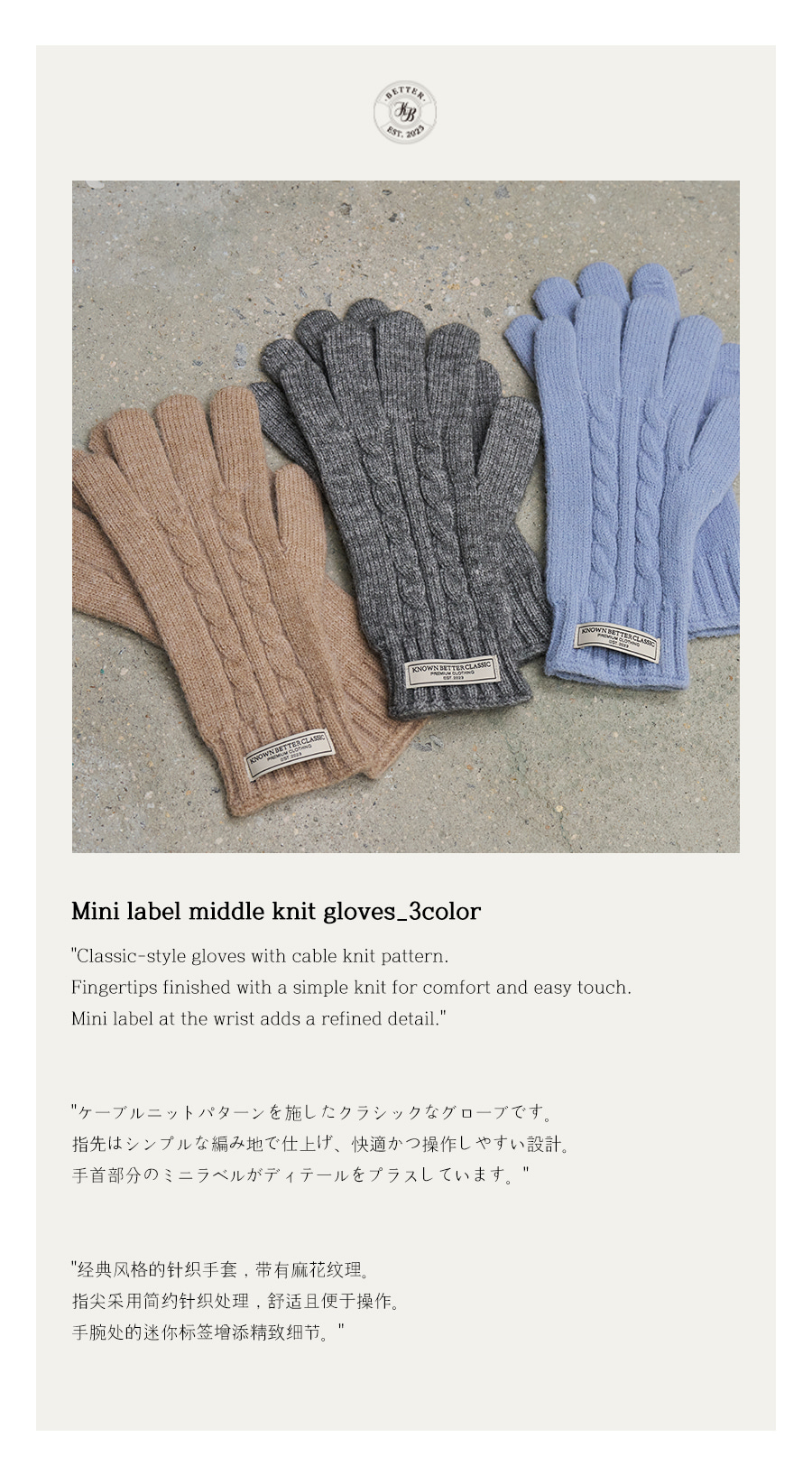 Mini label middle knit gloves [KNFW05ACC04]_[3color]