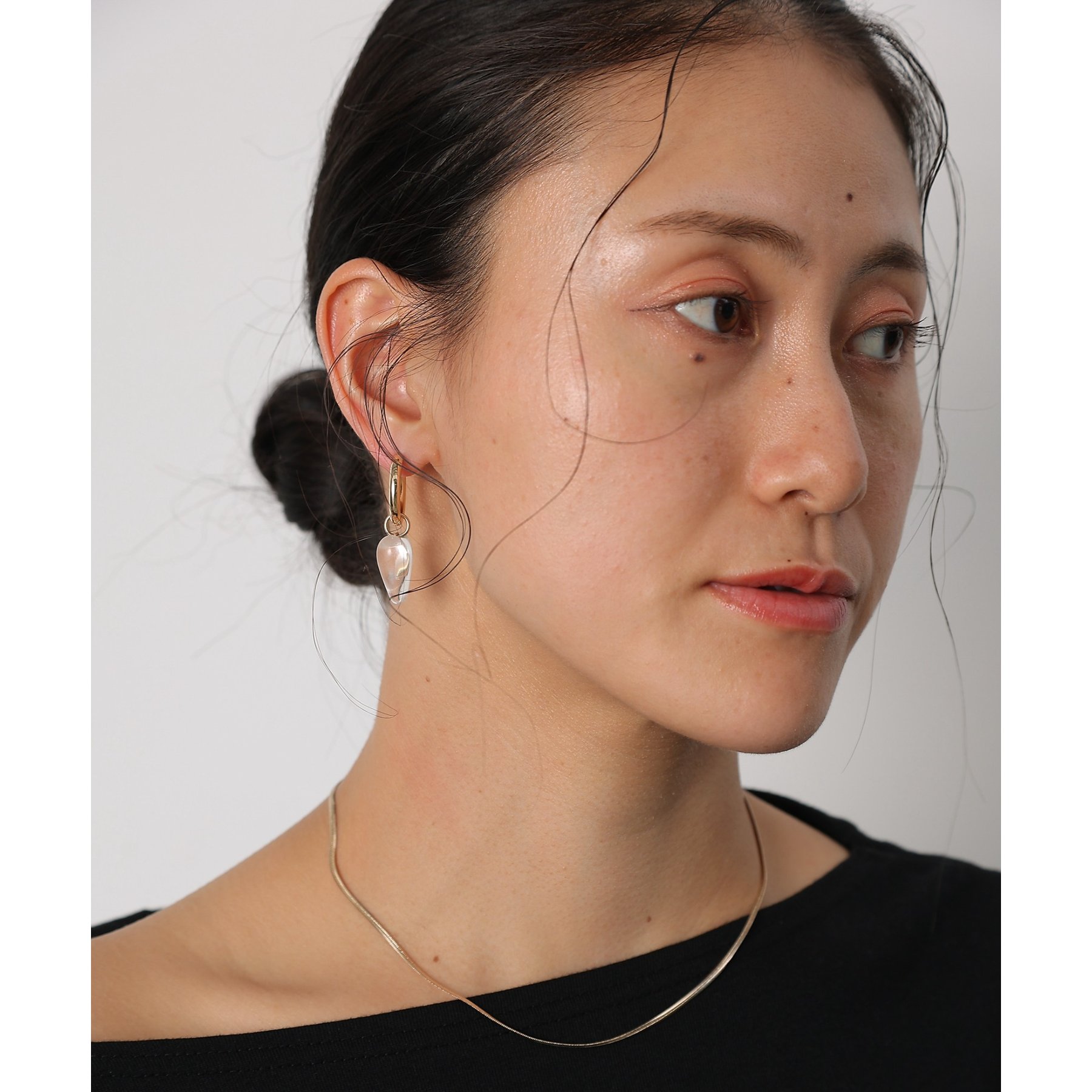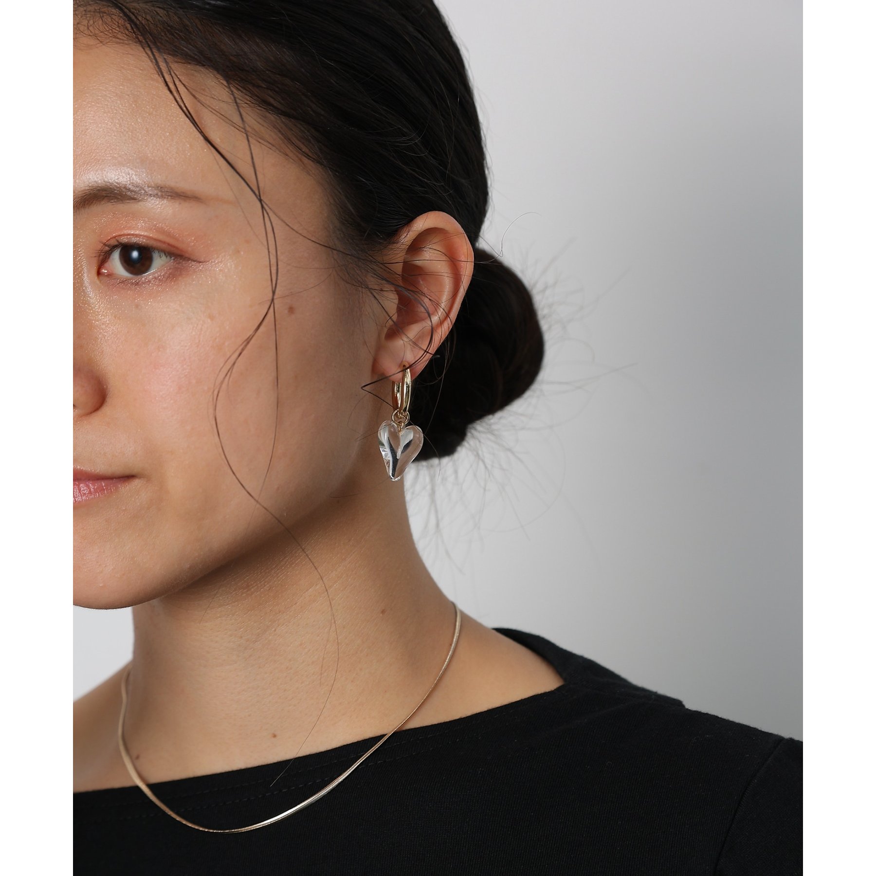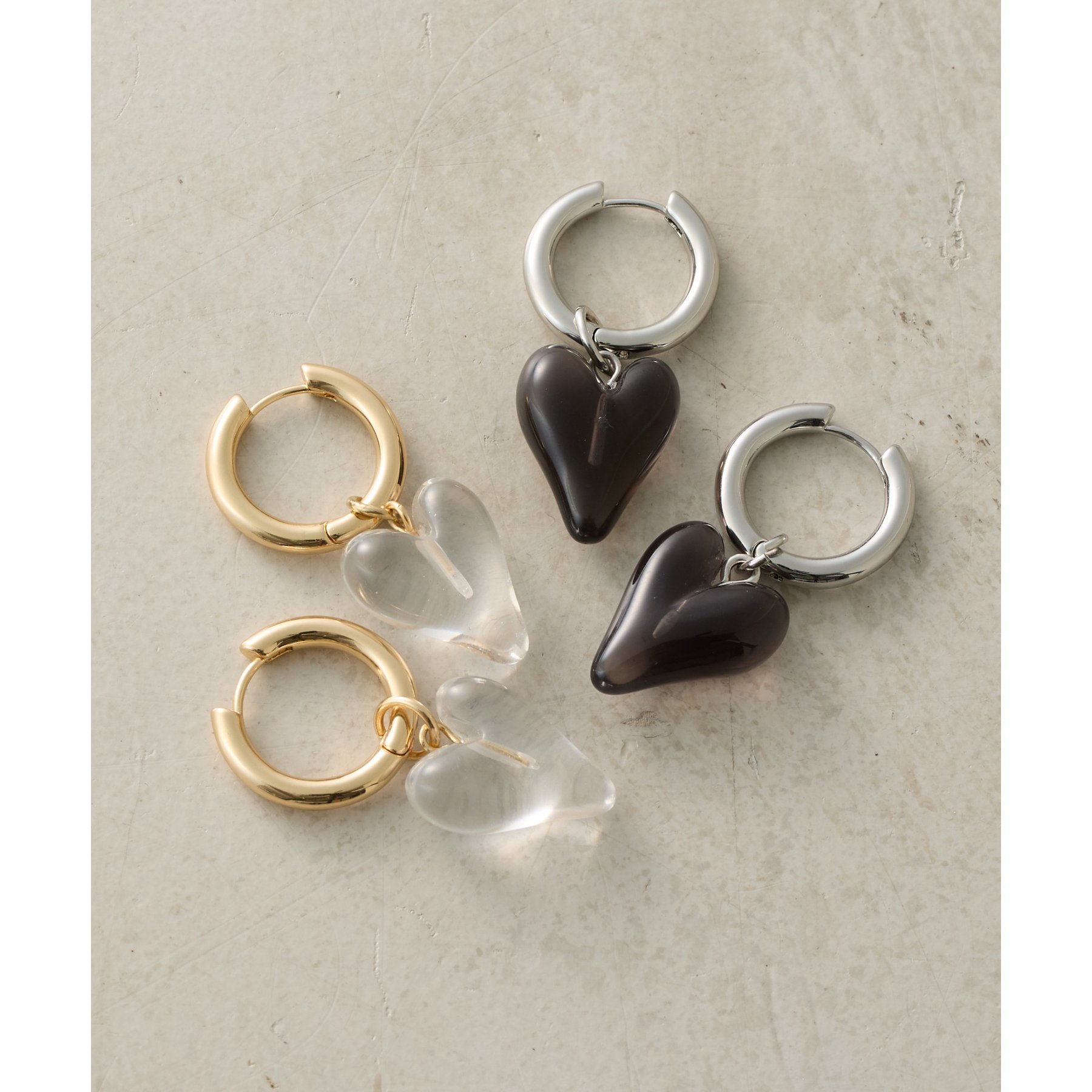 ころんとしたフォルムが愛らしいハートモチーフの2wayピアス。シンプルなフープピアスに取り外し可能なハートチャームを組み合わせたデザインでその日の気分やファッションに合わせて、2通りのスタイルを楽しめます。クリアカラーで透明感のあるハートチャームは耳元で揺れてアクセントに。ハートチャームを外せば、シンプルなフープピアスとして活躍。オフィススタイルや、ミニマルなファッションにも合わせやすい万能アイテムです。キャッチのないワンタッチ式なので、着脱も簡単。忙しい朝でも、サッと装着してお出かけできます。