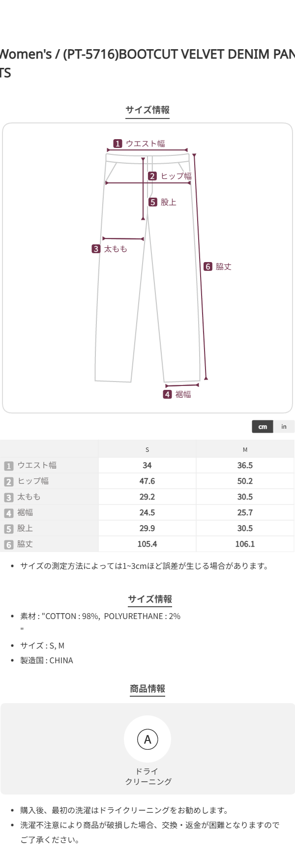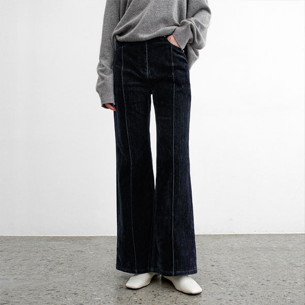 (PT-5716)BOOTCUT VELVET DENIM PANTS