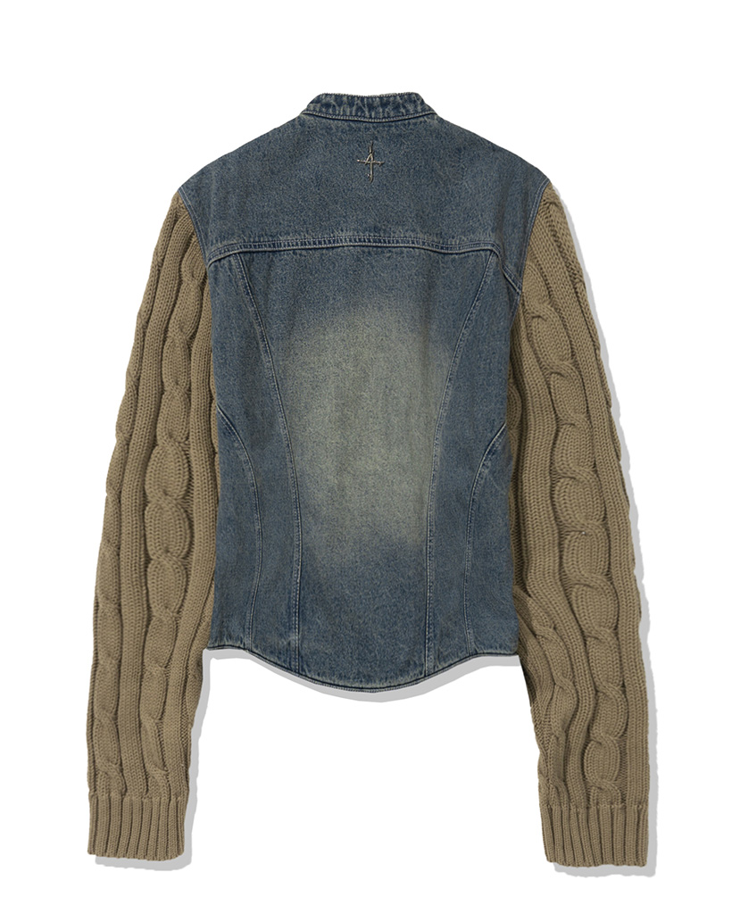 [nugu限定商品] W Incision Knit Sleeve Denim Jacket - Deep Blue