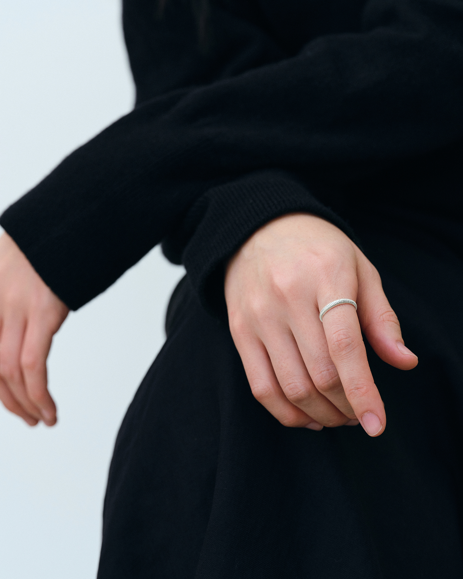 軽い着け心地でデイリーに気軽に使いやすく、ほかのシルバーリングと重ね付けしてもポイントになります。