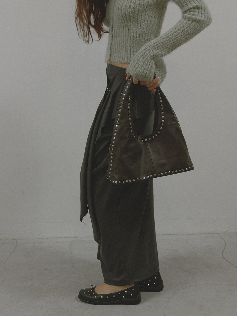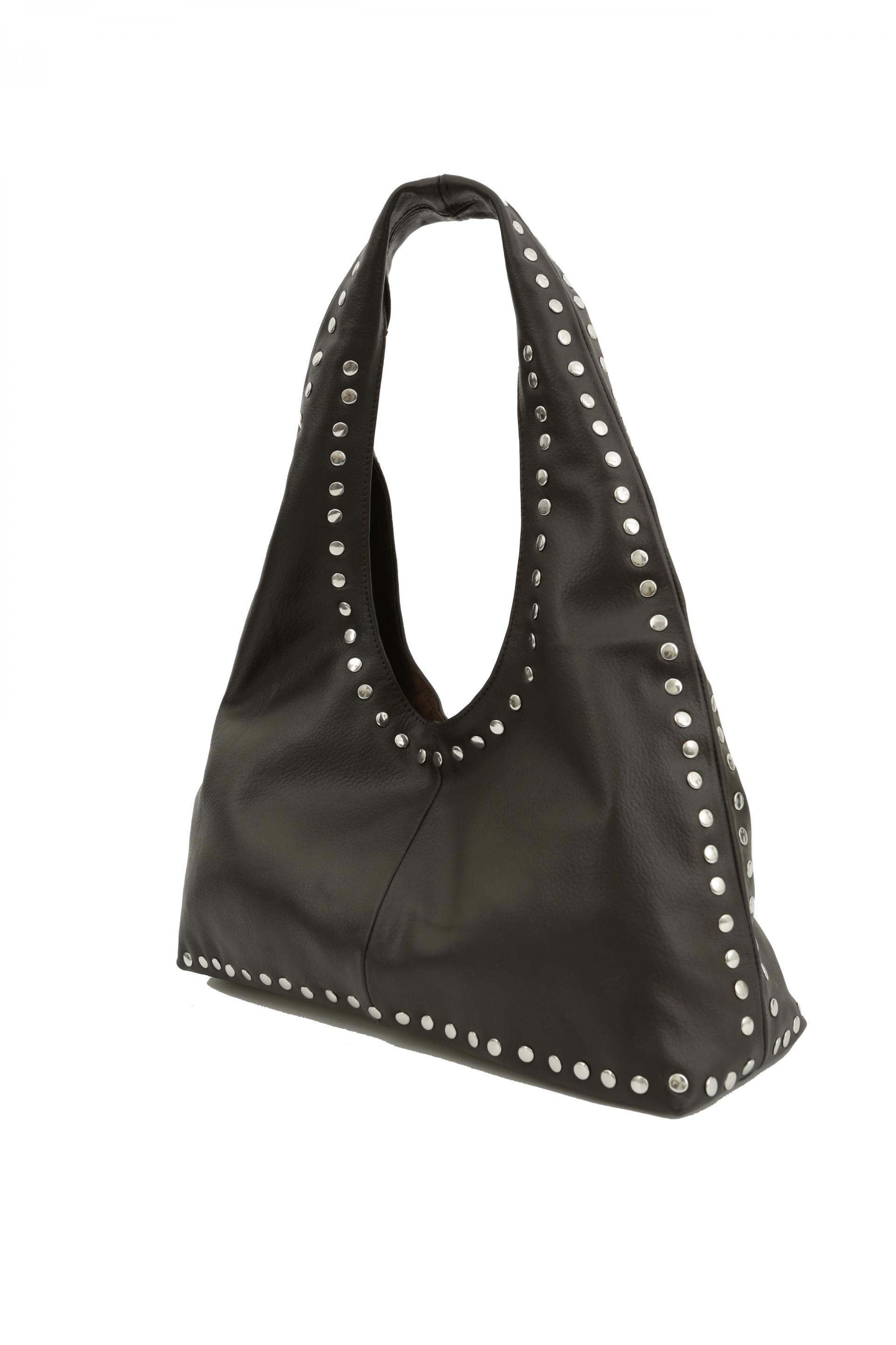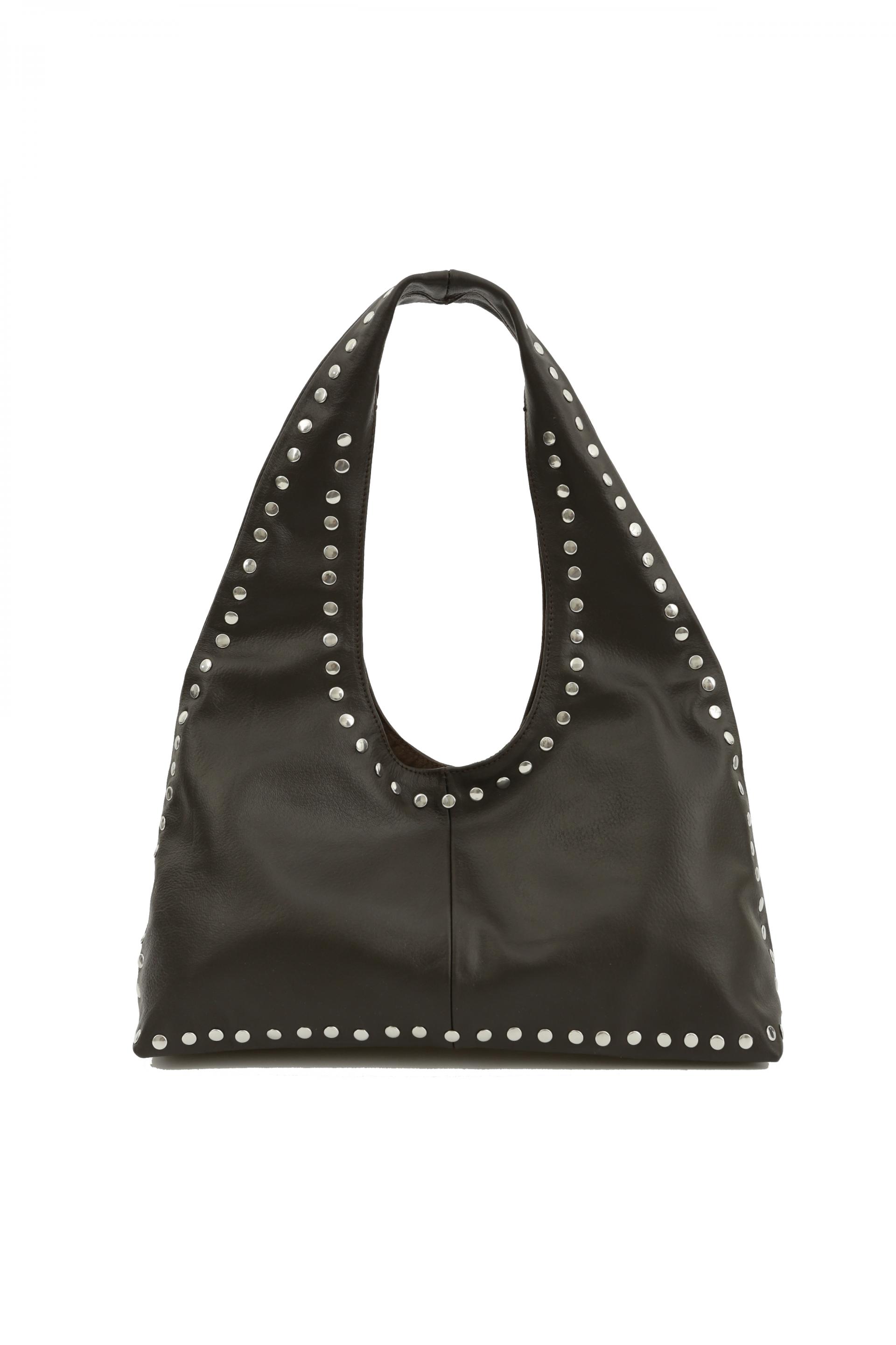 LEATHER BOHO STUD BAG (DARK BROWN)
