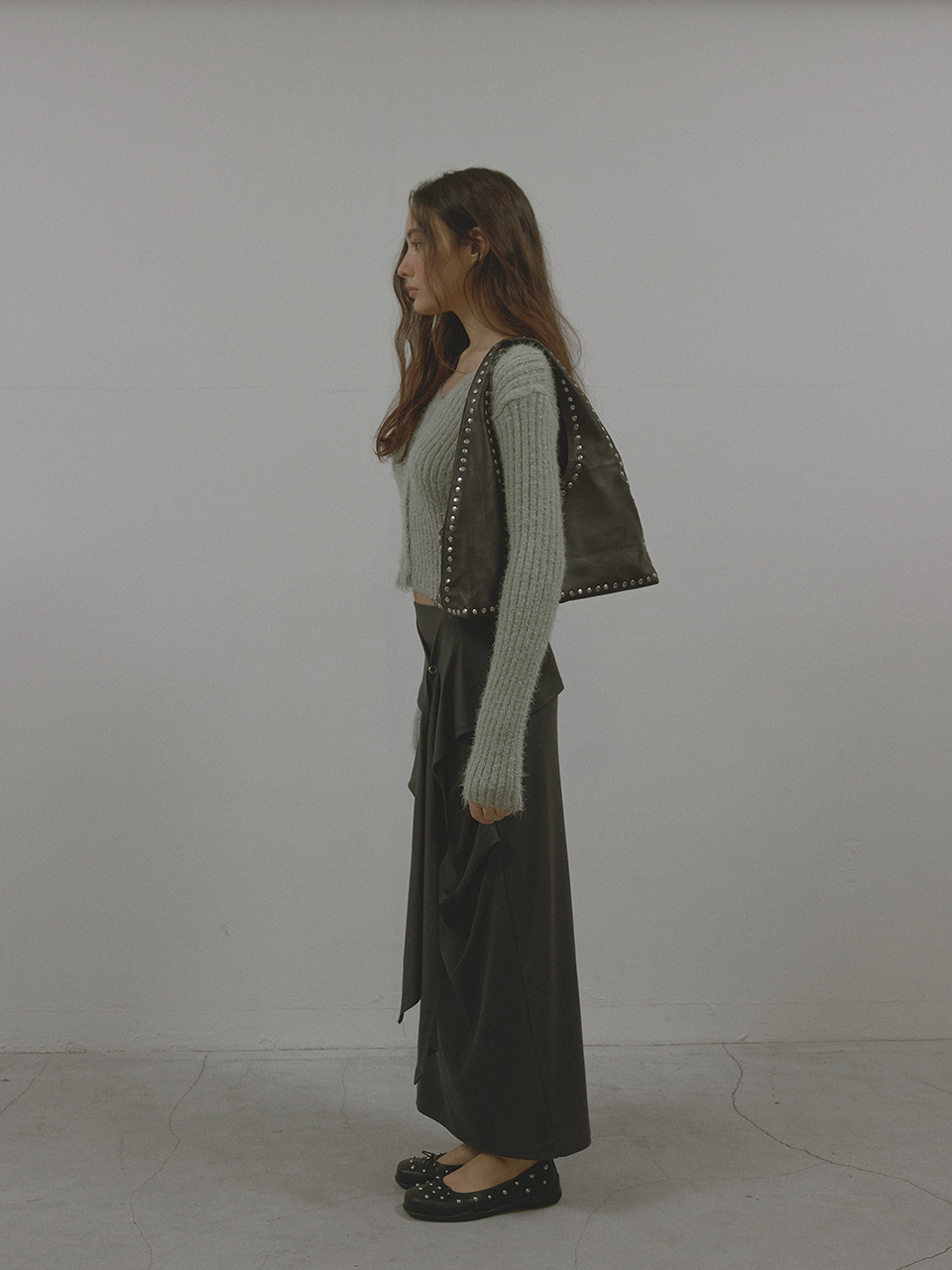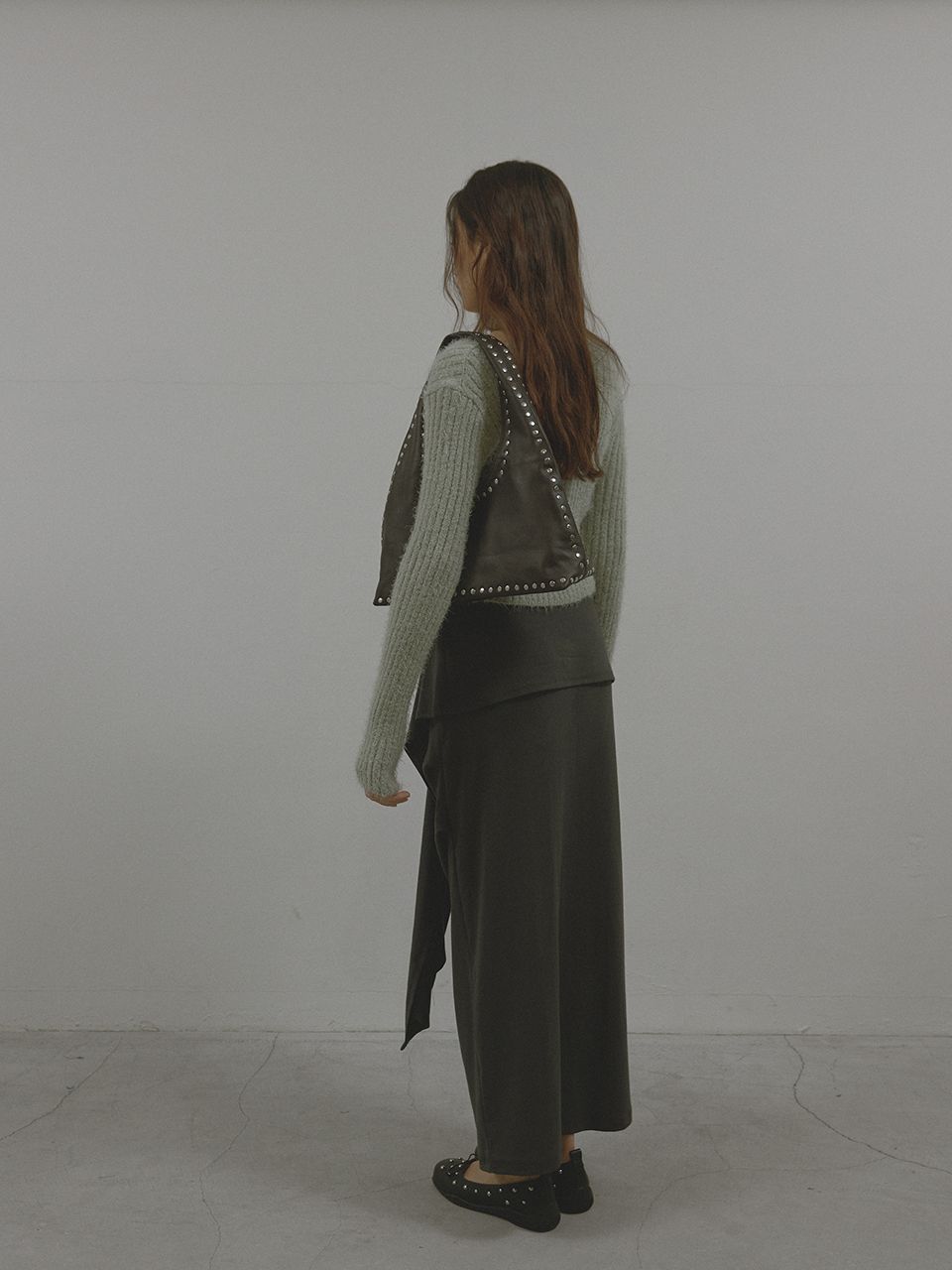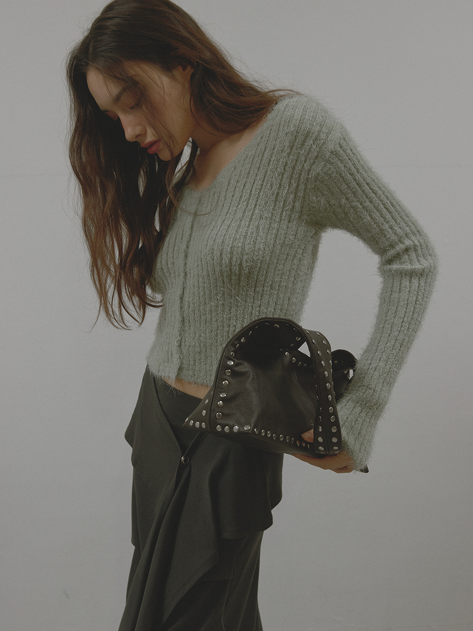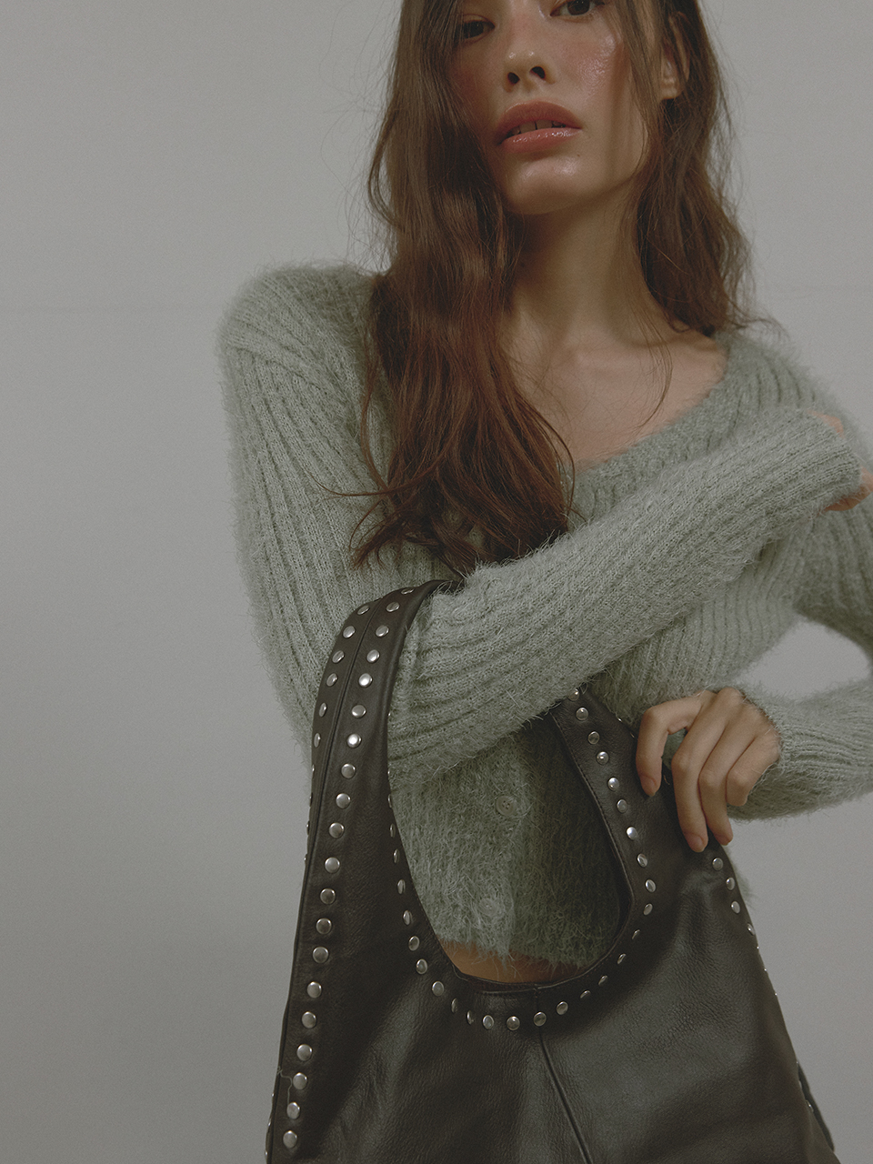 LEATHER BOHO STUD BAG (DARK BROWN)
