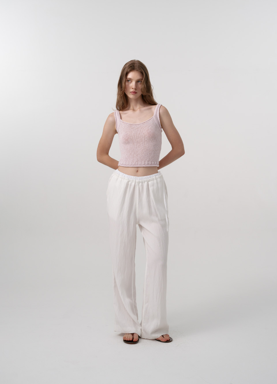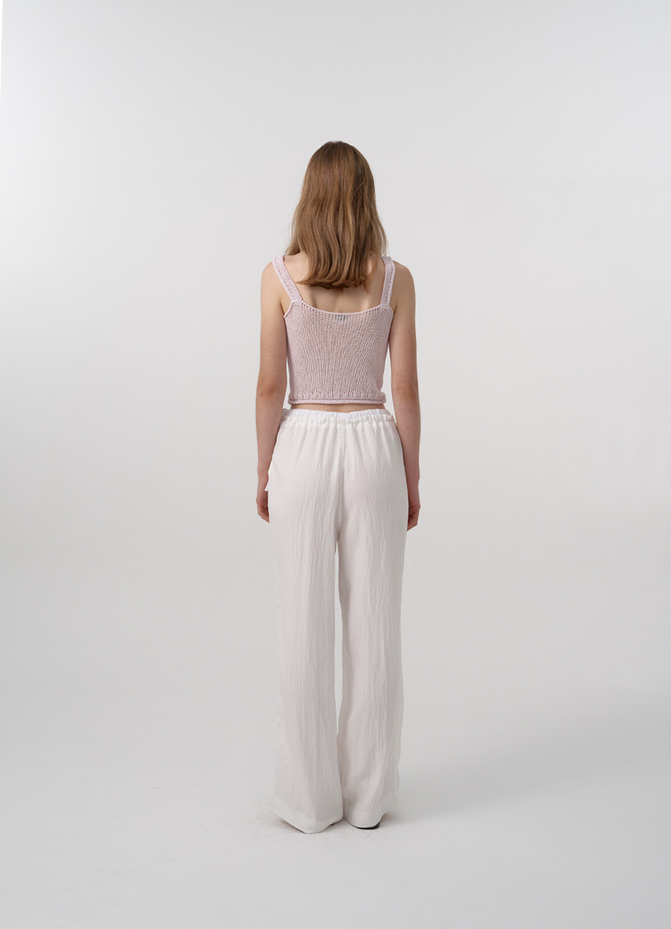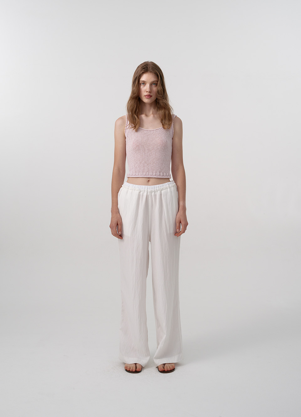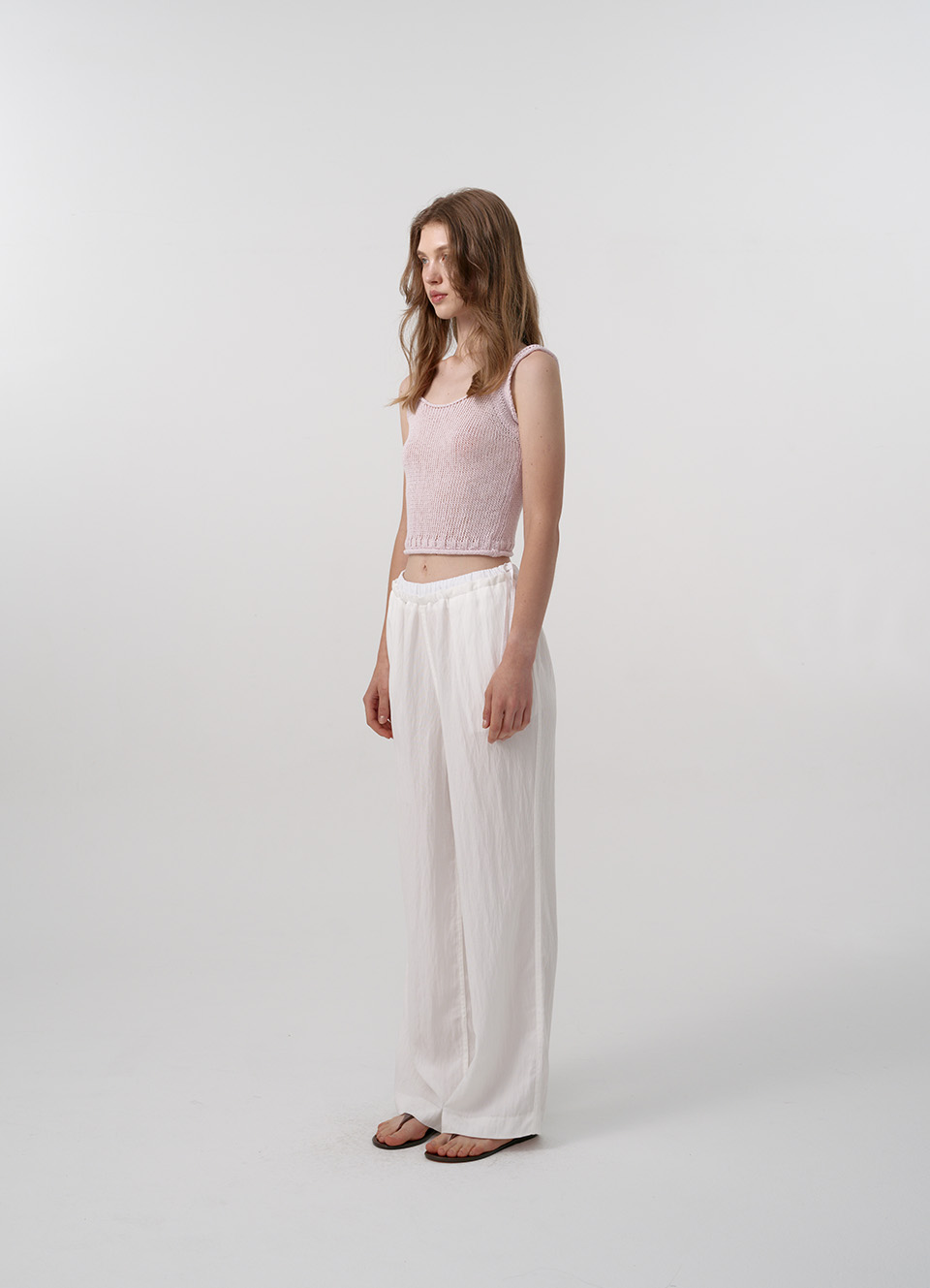 スリムに密着するシルエットとクロップキビバランスのスリーブレストップタイプ