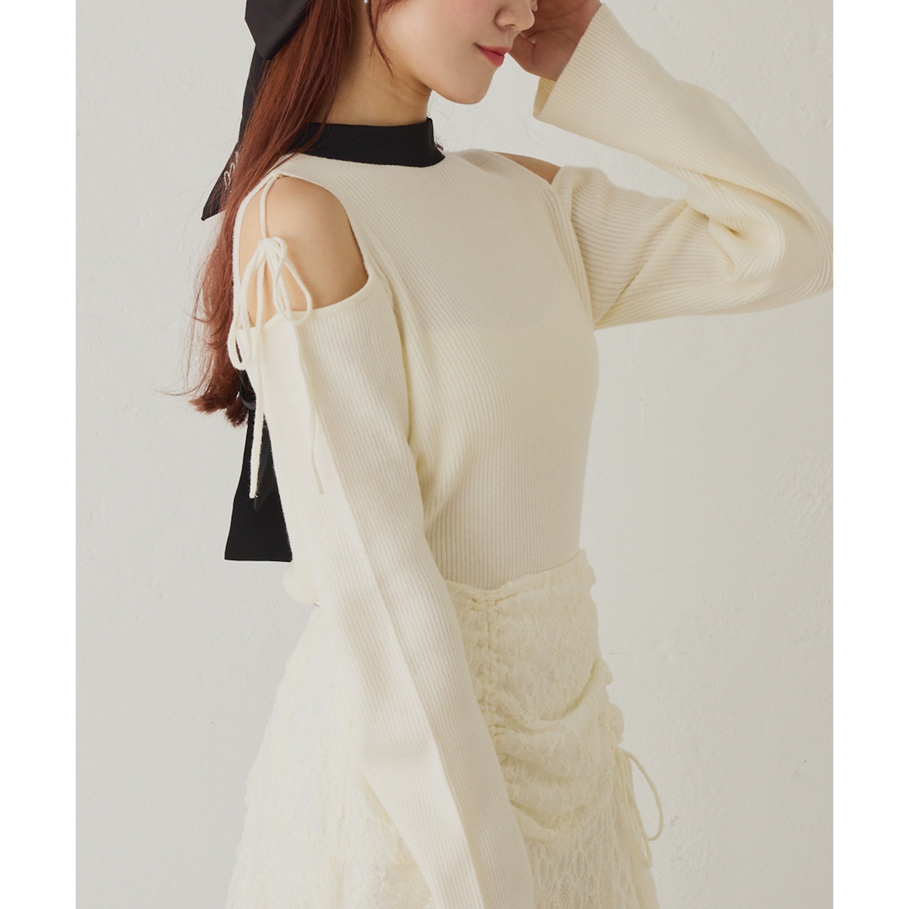 肩あき配色ニット
