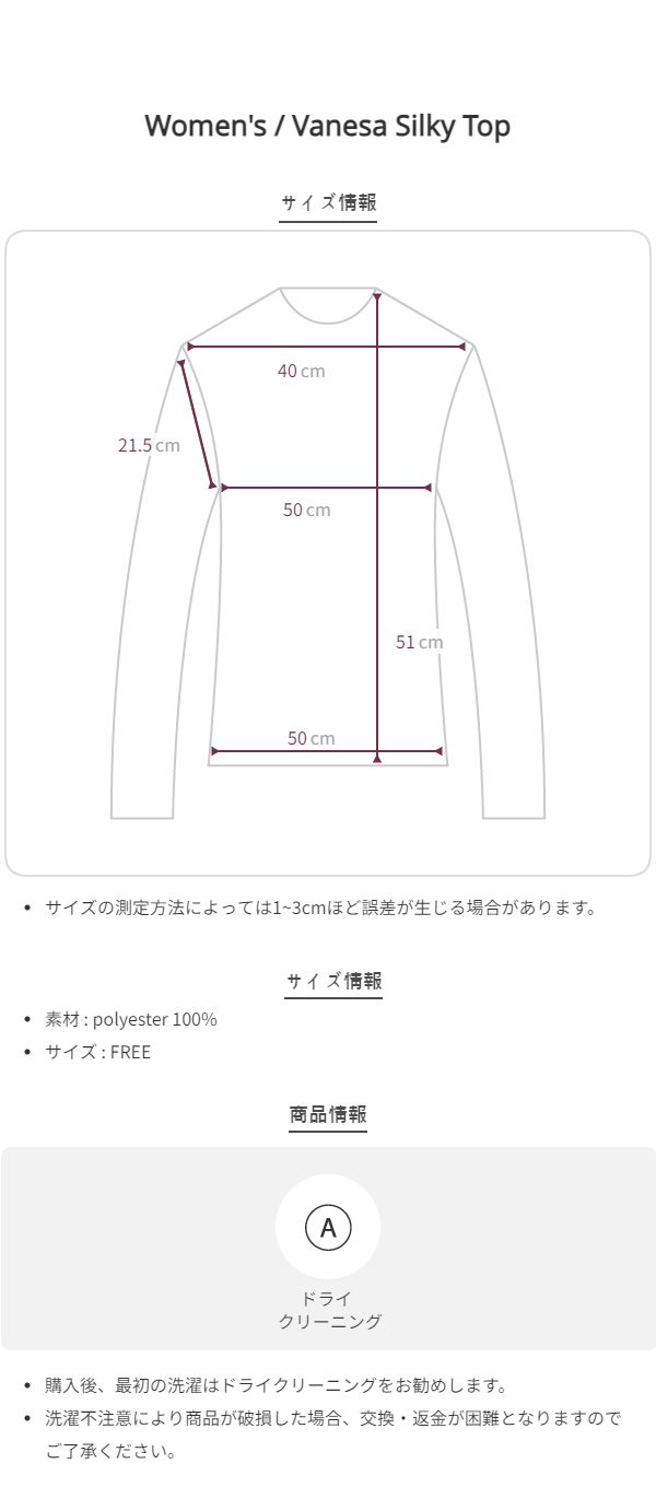 このブランドの商品はお客様の都合による交換および返品はお受けいたしかねます。 十分にご注意の上、ご注文をお願い致します。