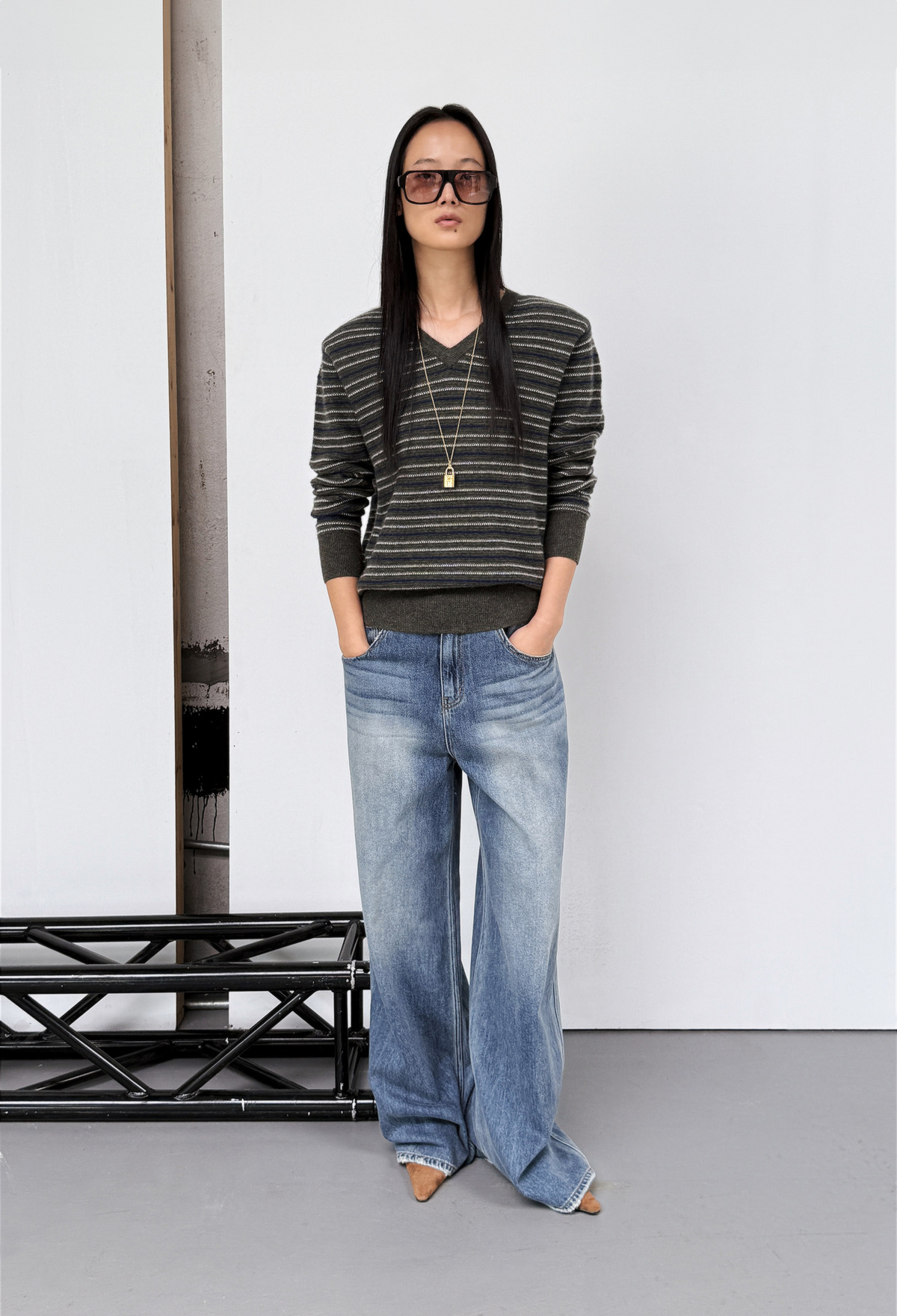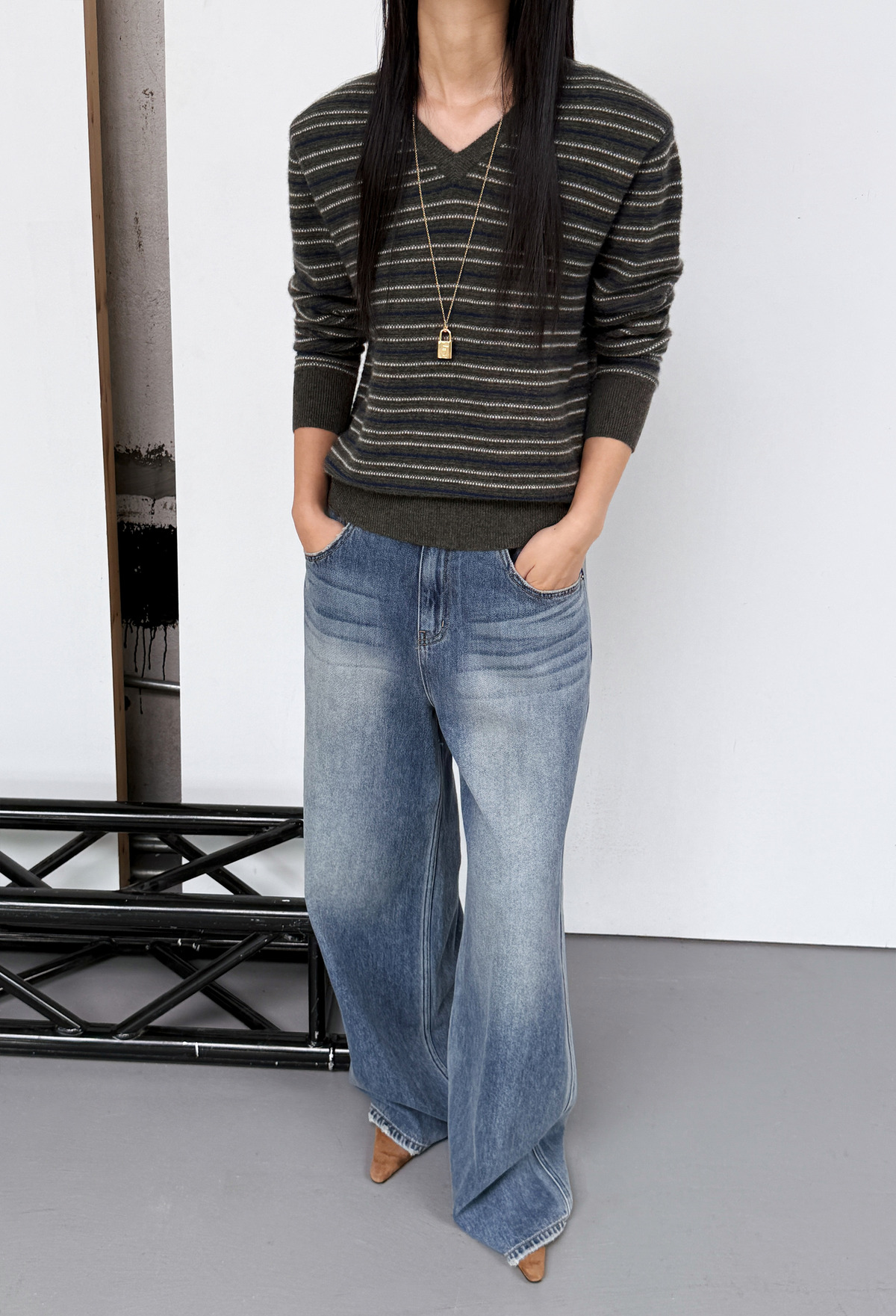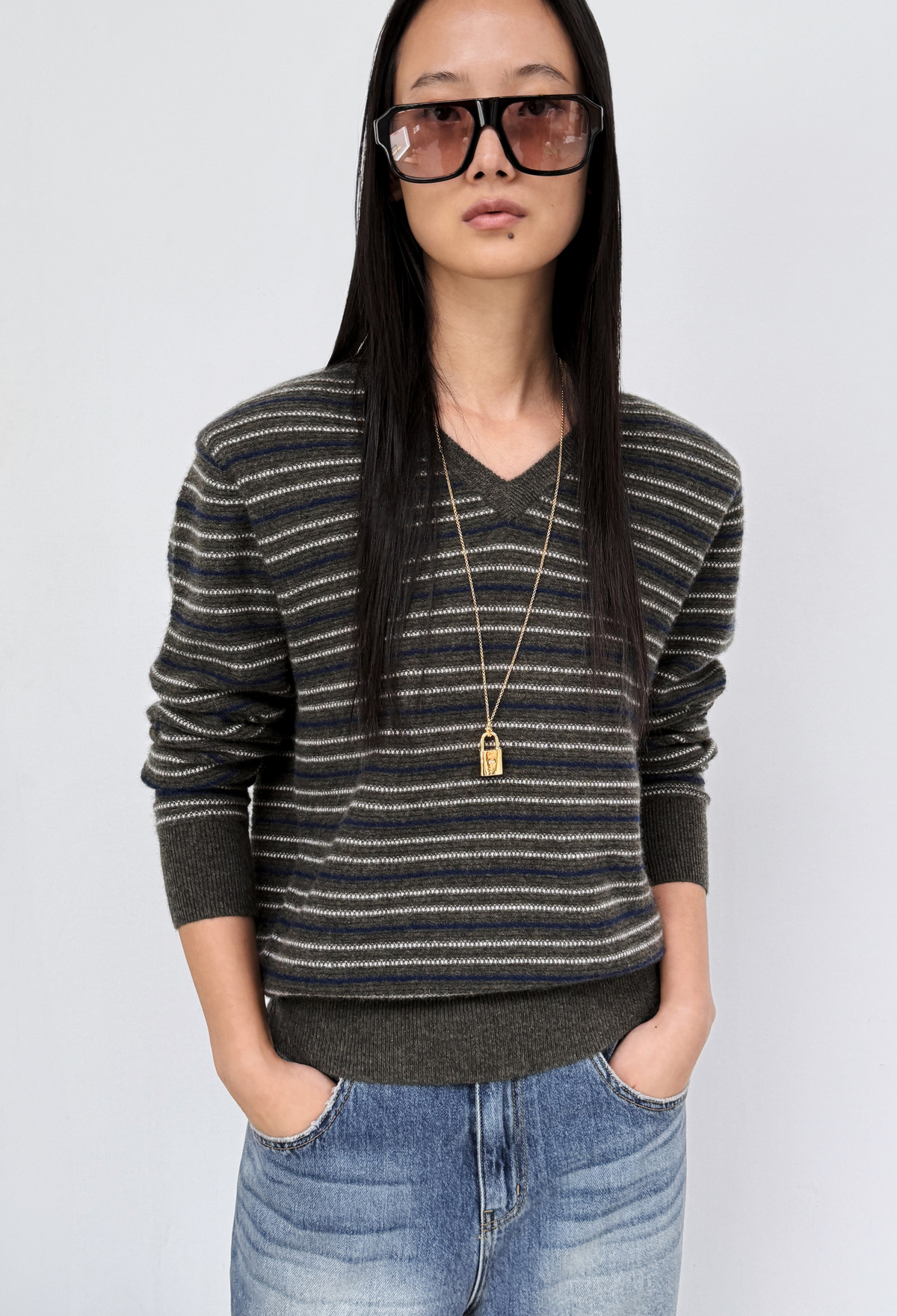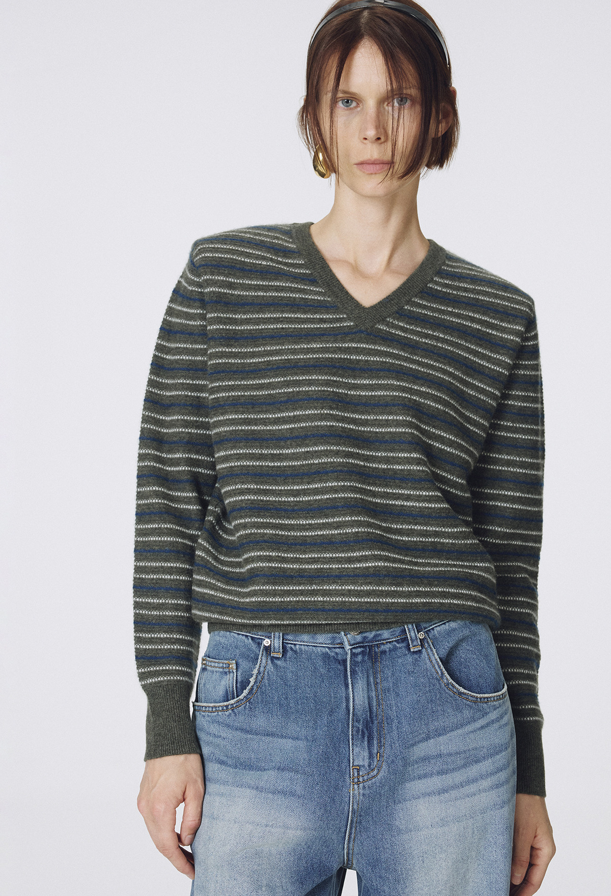Cashmere Stripe Knit Khaki