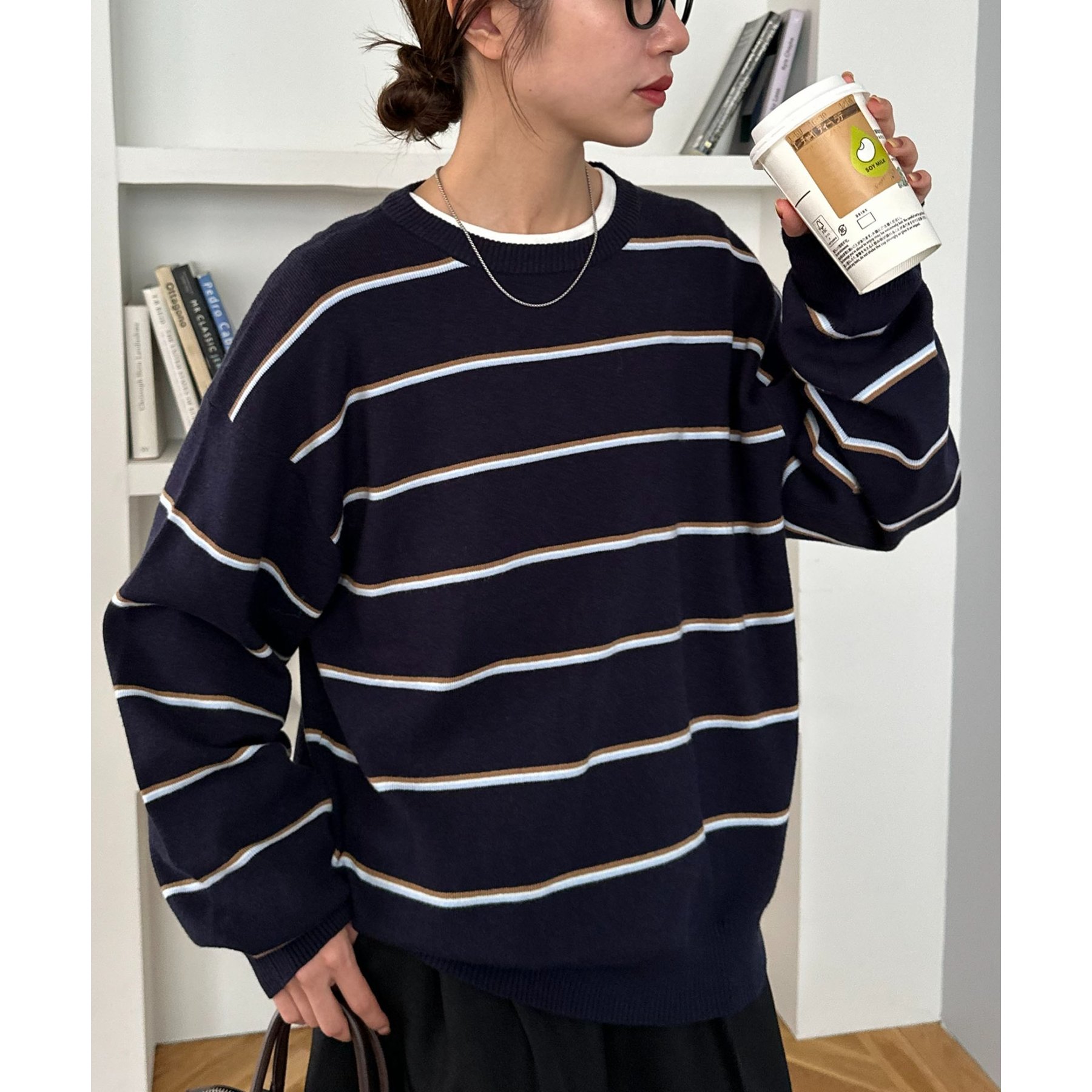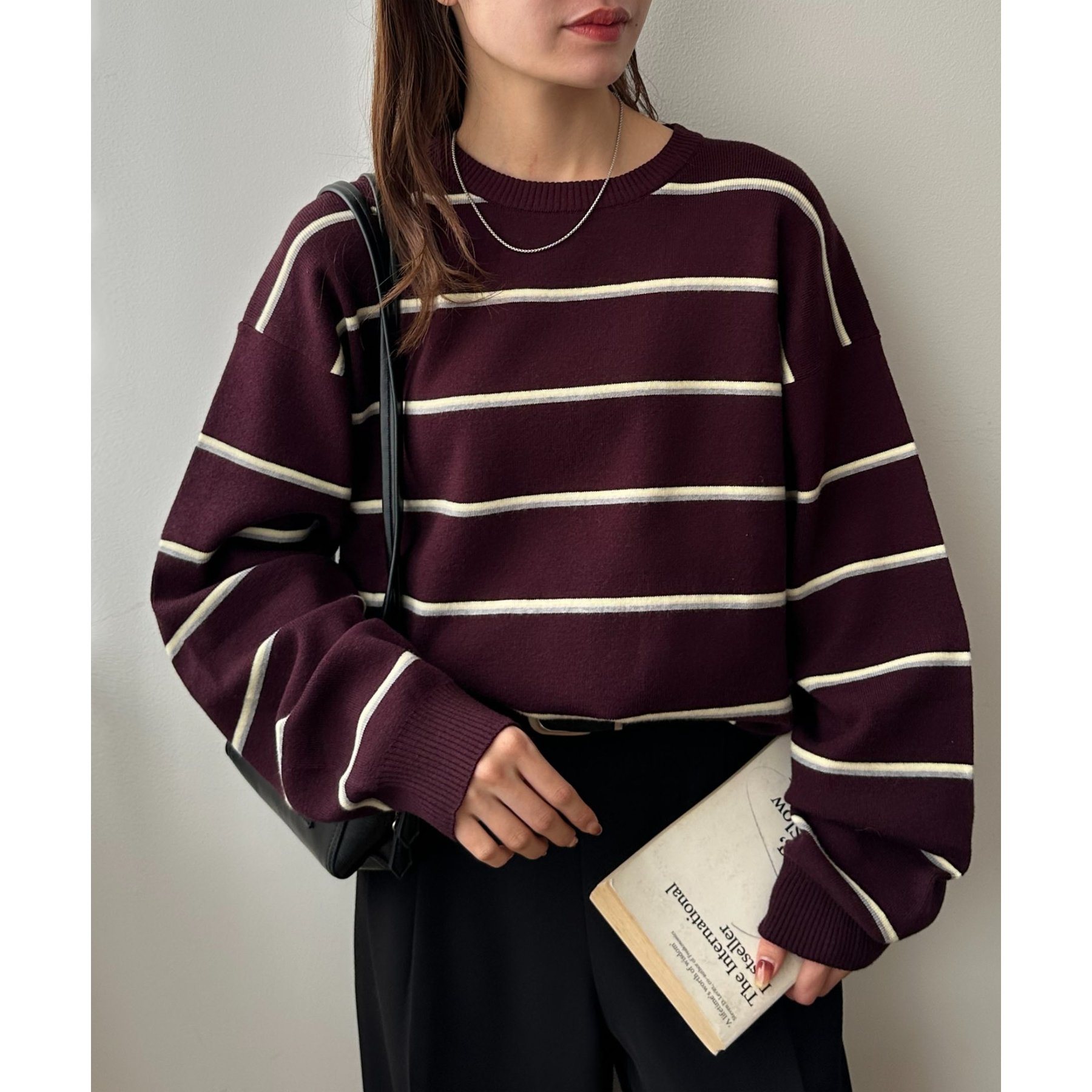 目を惹くボーダーニットは、2色のラインでボーダーをデザインしたことでこなれたおしゃれな印象に!