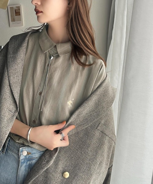 洗練されたデザインで大人見え。綿100%ワンポイント胸刺繍先染めストライプシャツ ce1010333