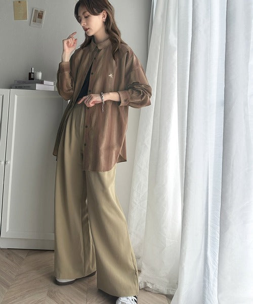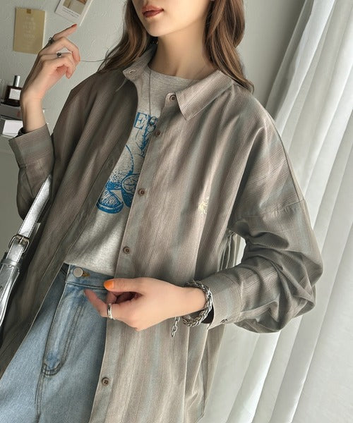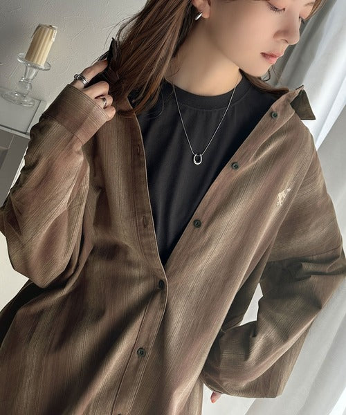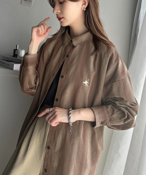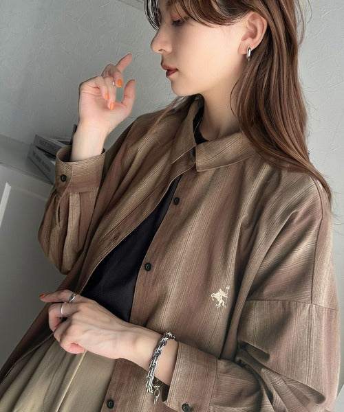 大人見えするグラデーションストライプのオーバーサイズシャツ。