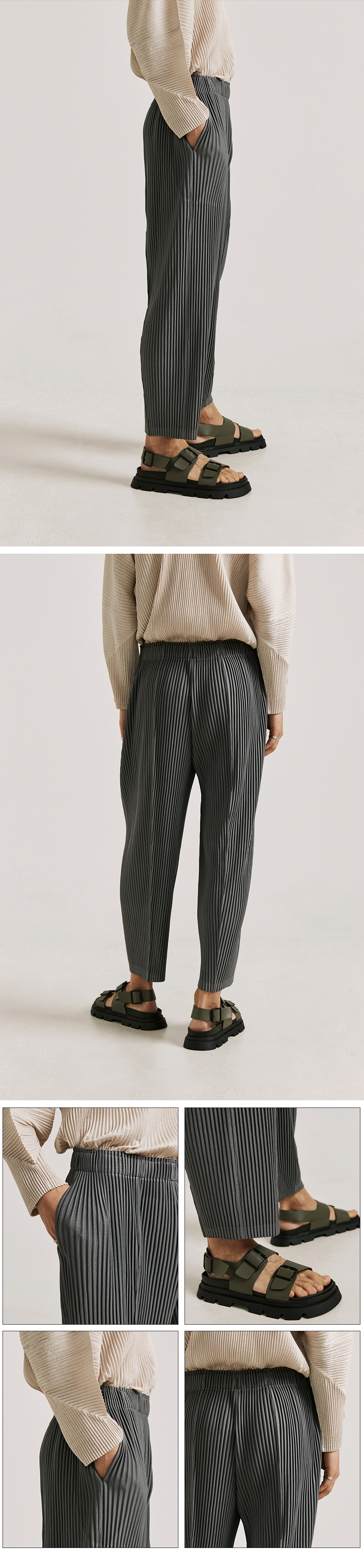 PT01X Pleated Fold Pintuck Pants [Dark Grey]