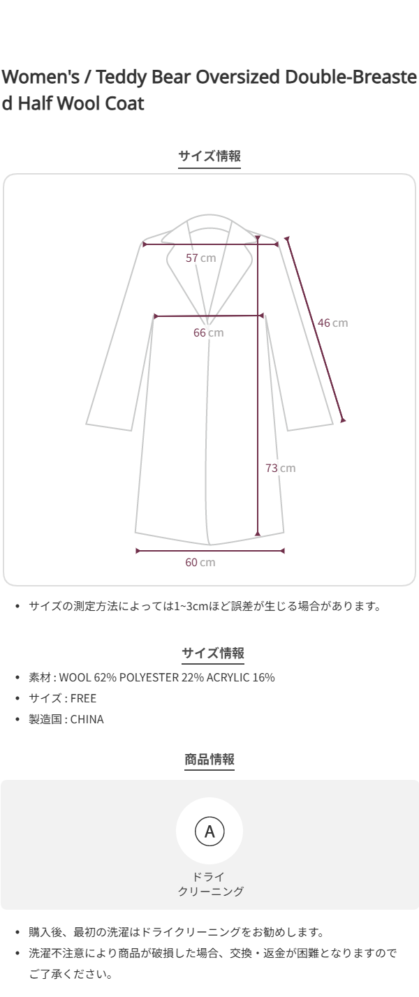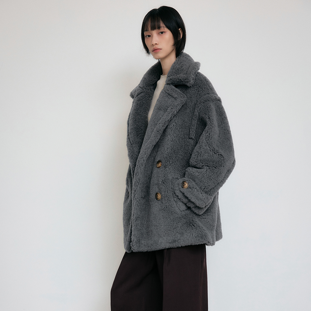 Teddy Bear Oversized Double-Breasted Half Wool Coat [Dark Gray]