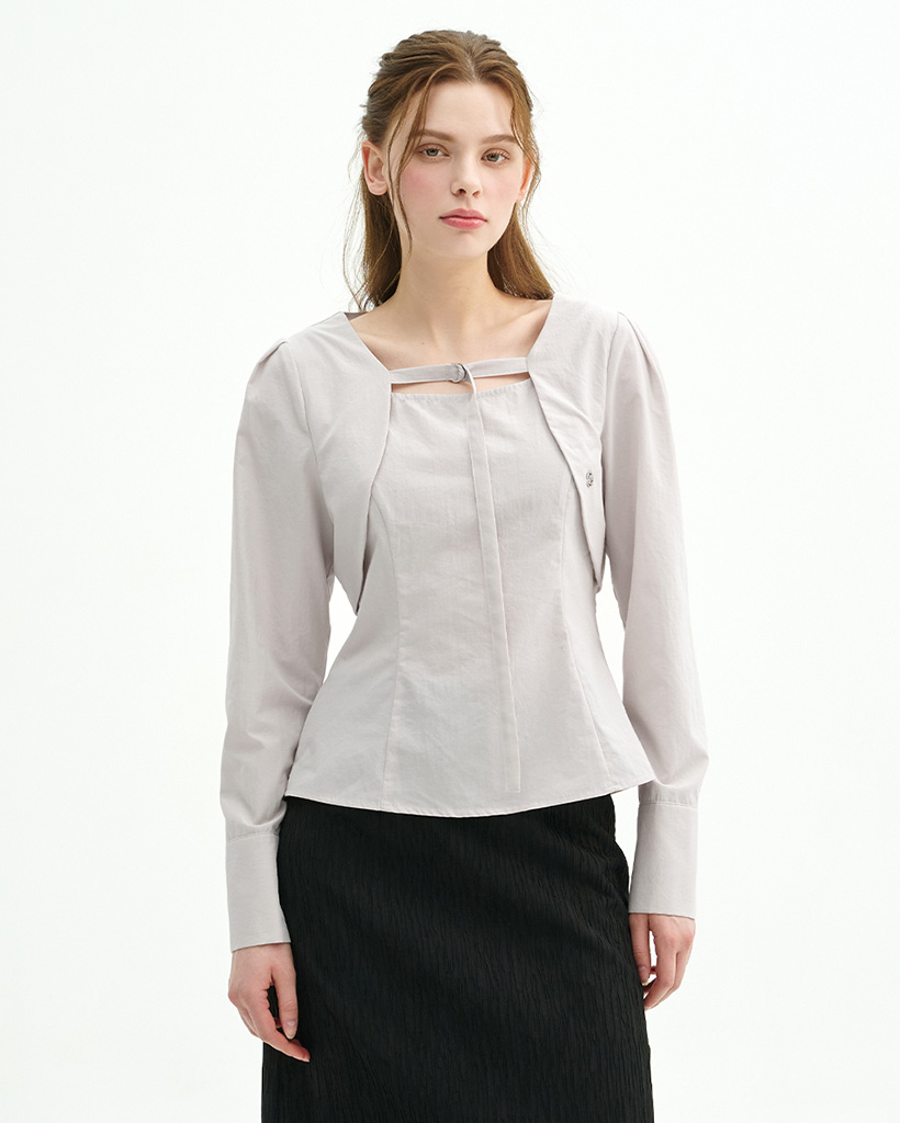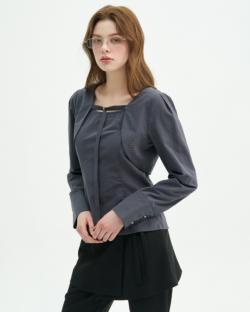 ボレロスリーブデザインにネックストラップとシルバーアジャストリングディテールを加えてポイントを与えました。