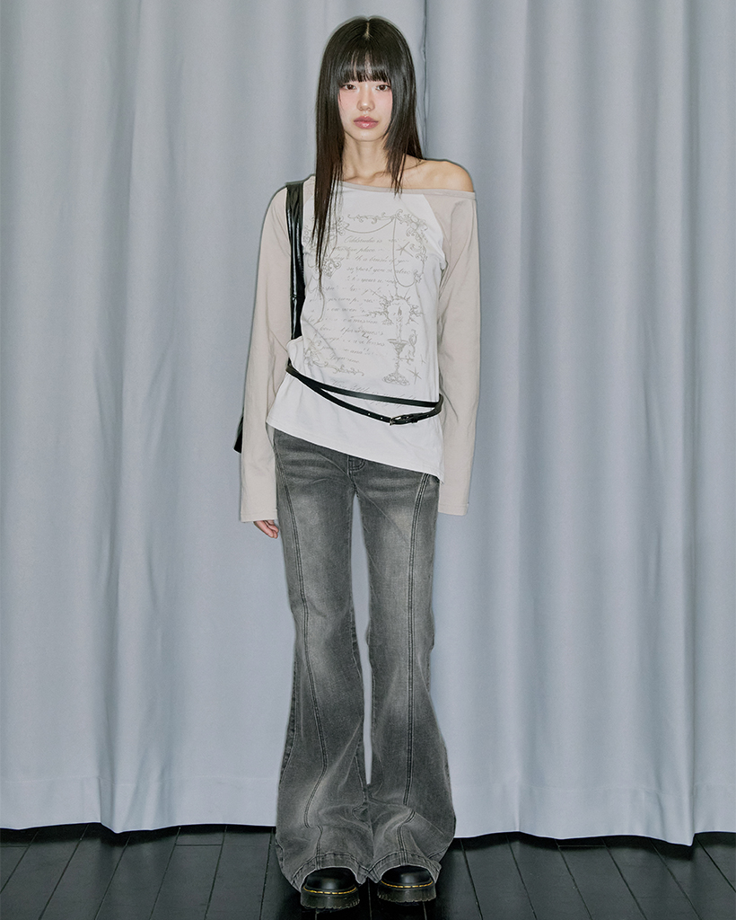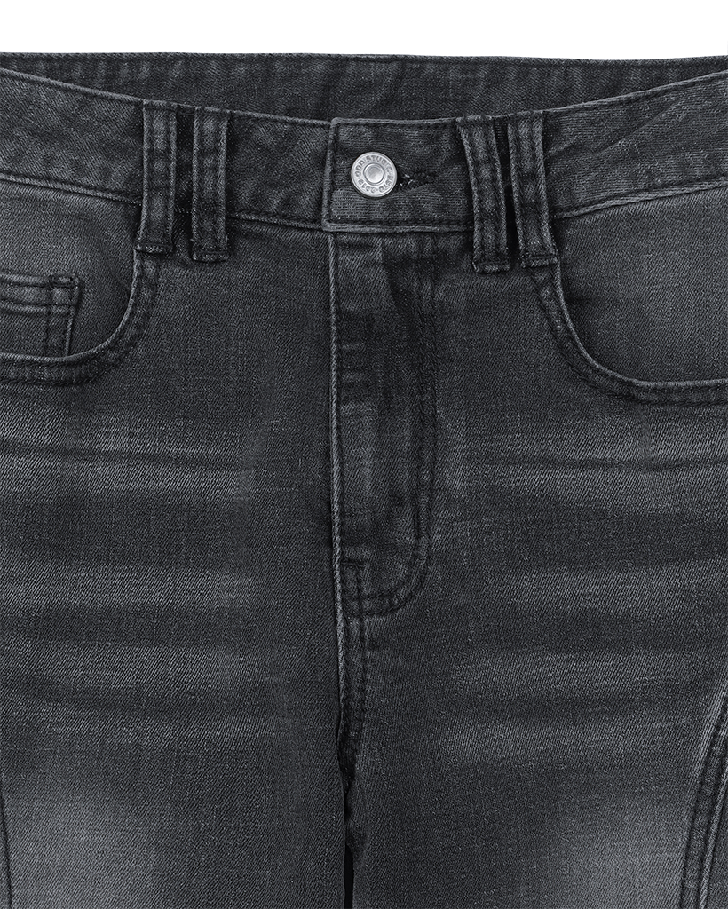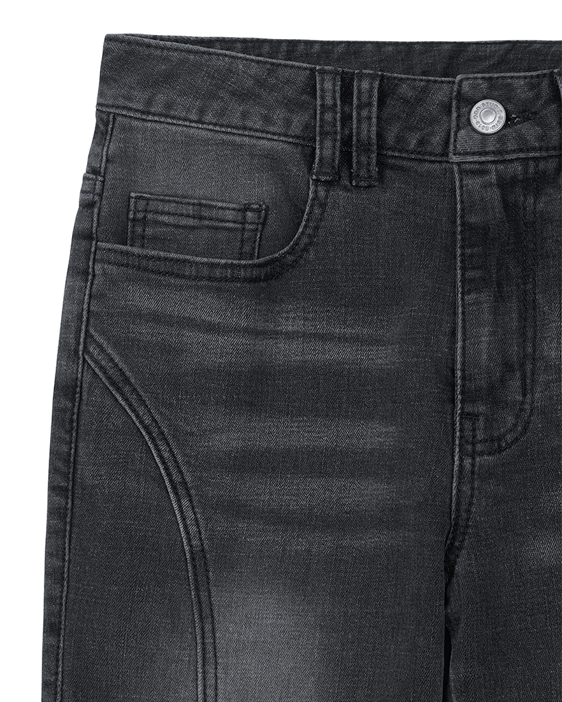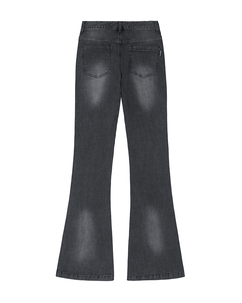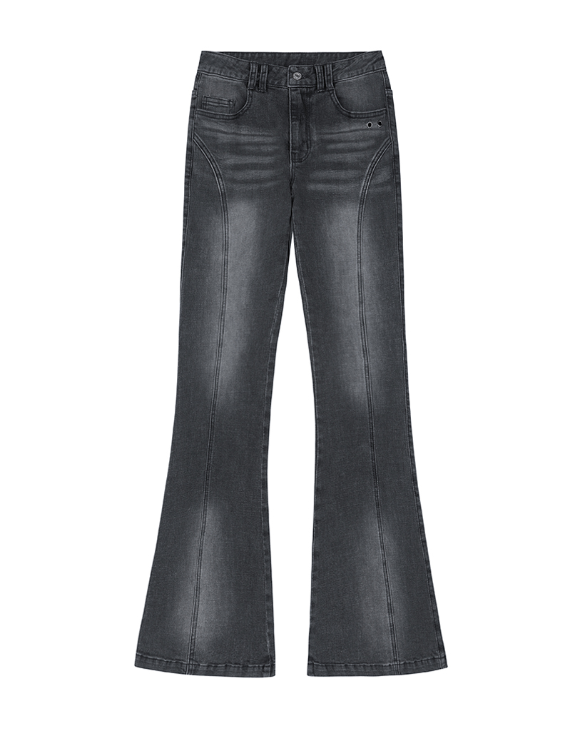 Curve Cut Bootcut Denim Pants - BLACK