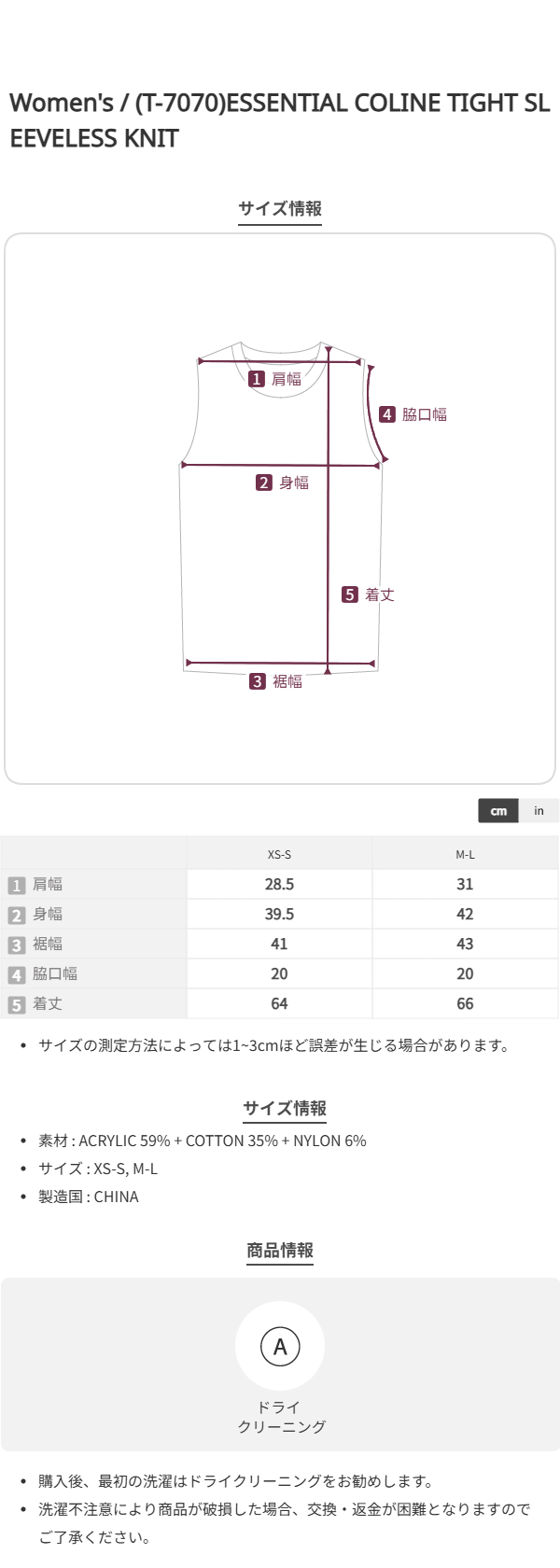 (T-7070)ESSENTIAL COLINE TIGHT SLEEVELESS KNIT