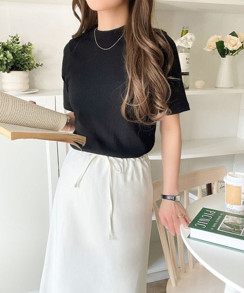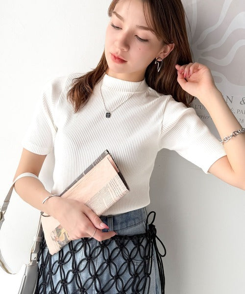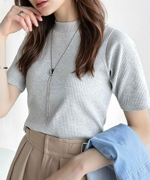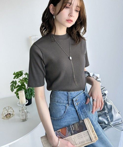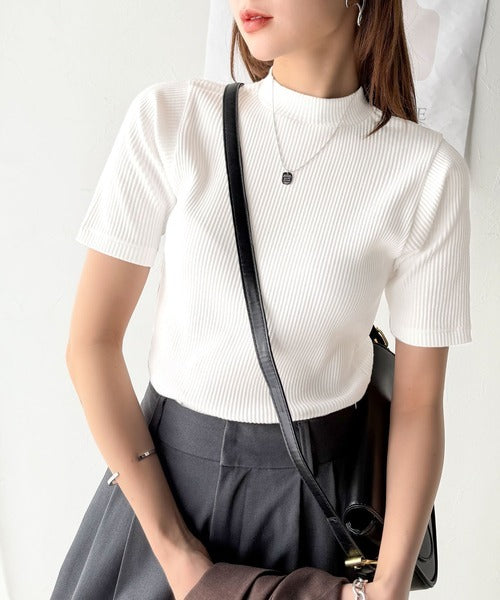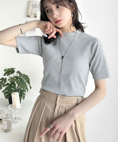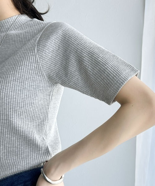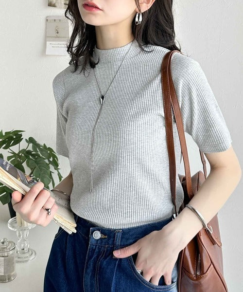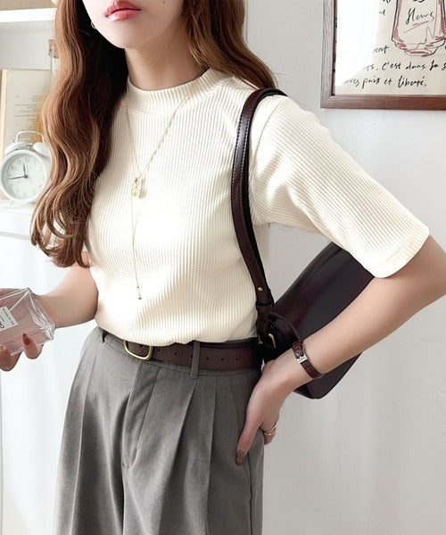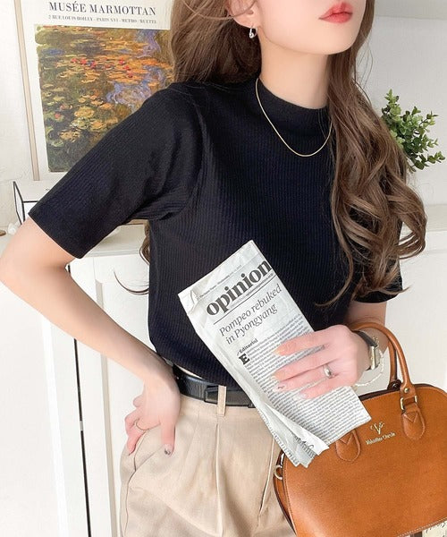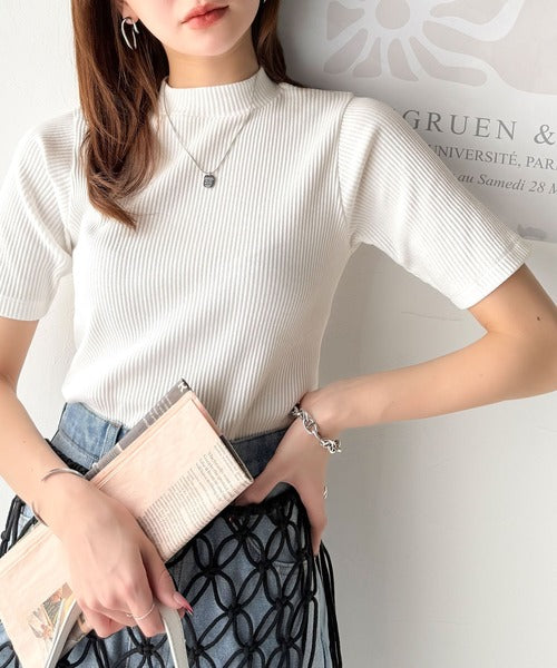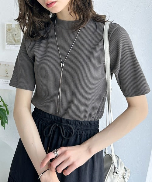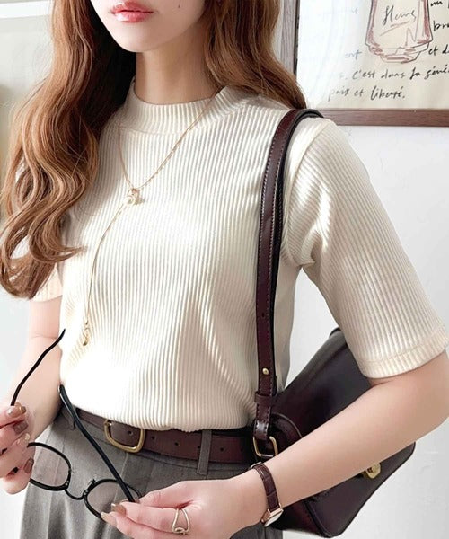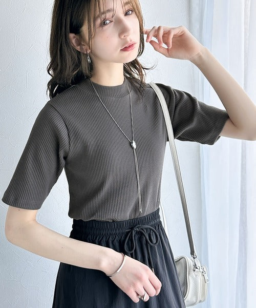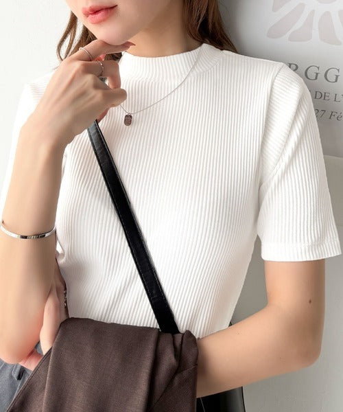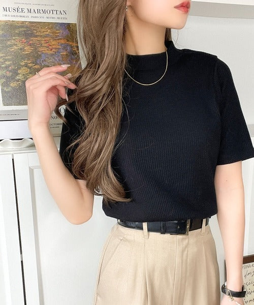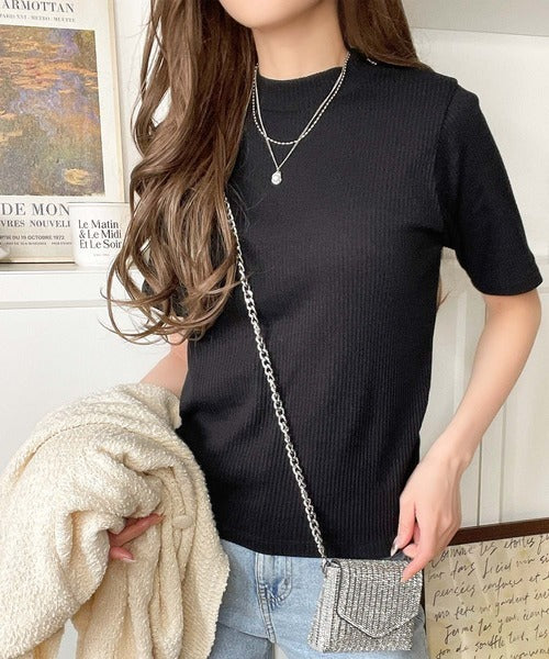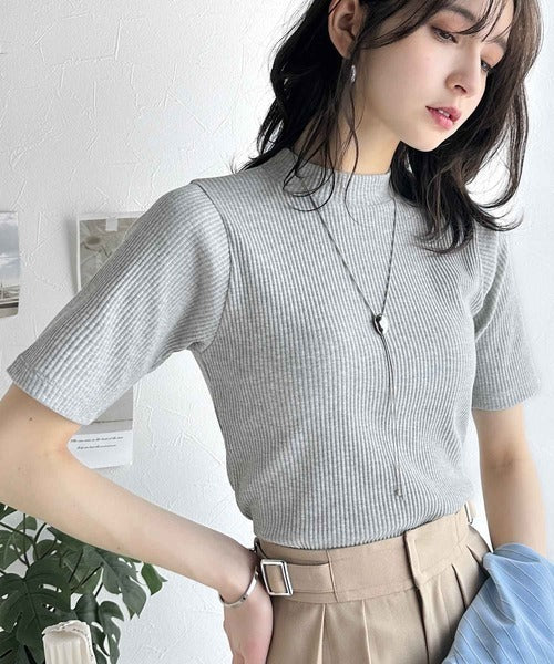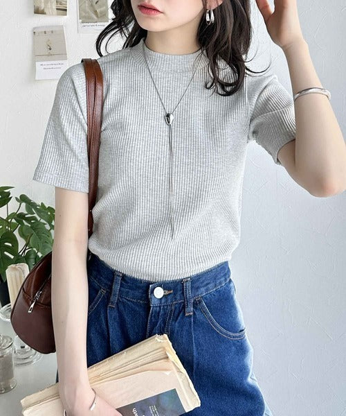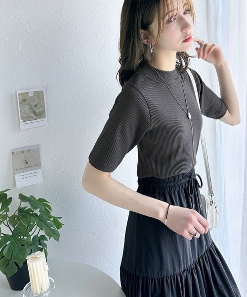シンプルで着回し力抜群!テレコモックネック半袖トップス ce1330020