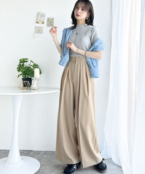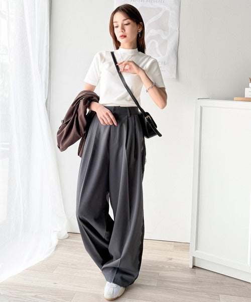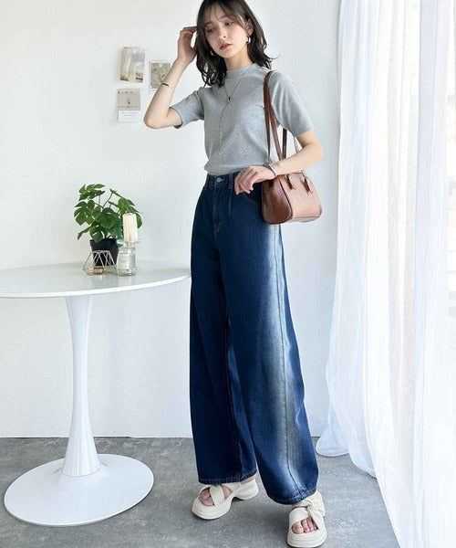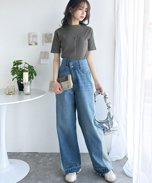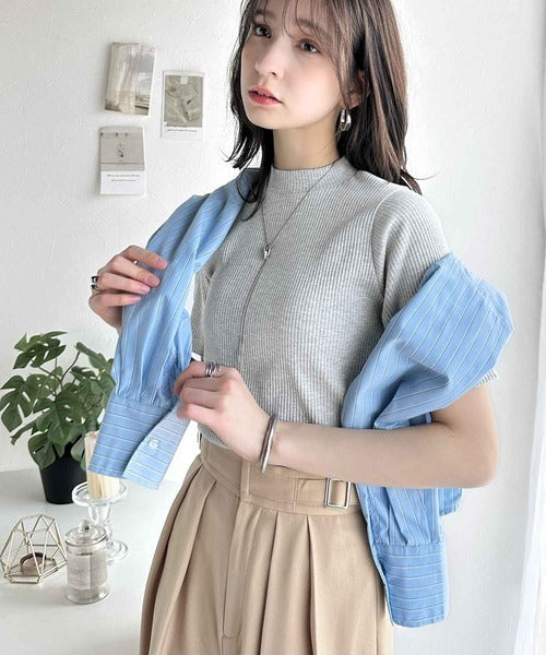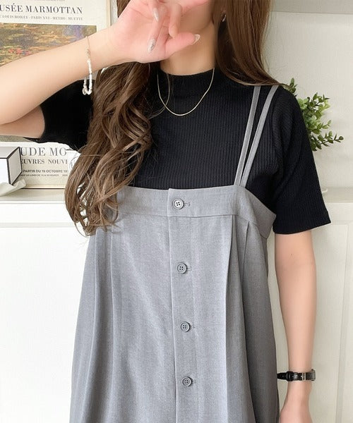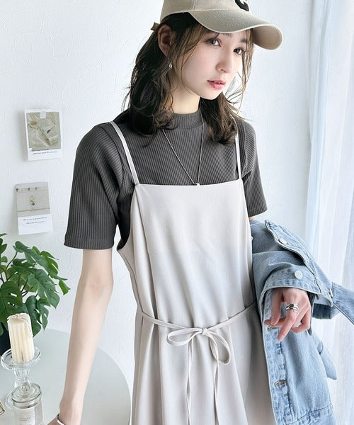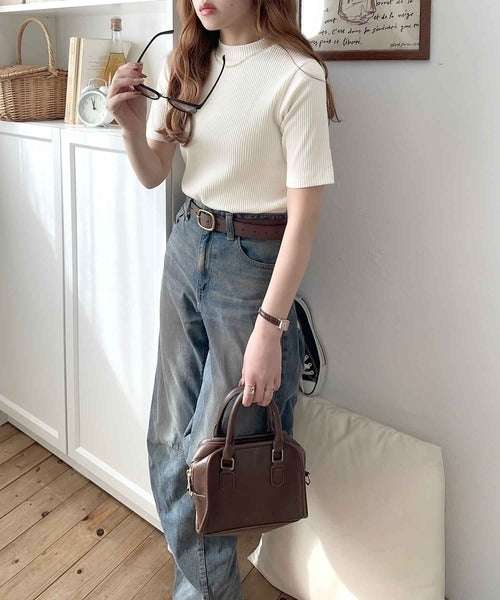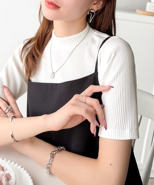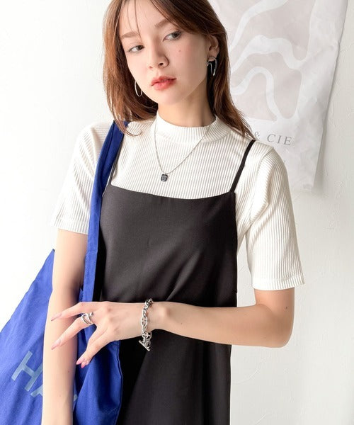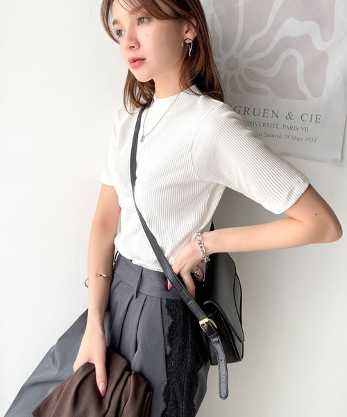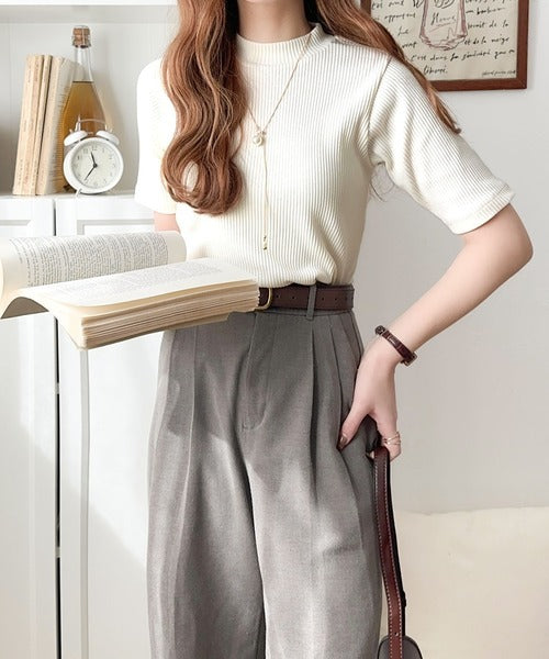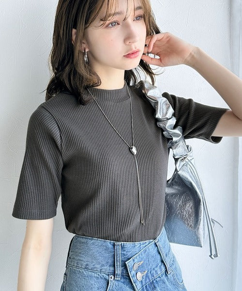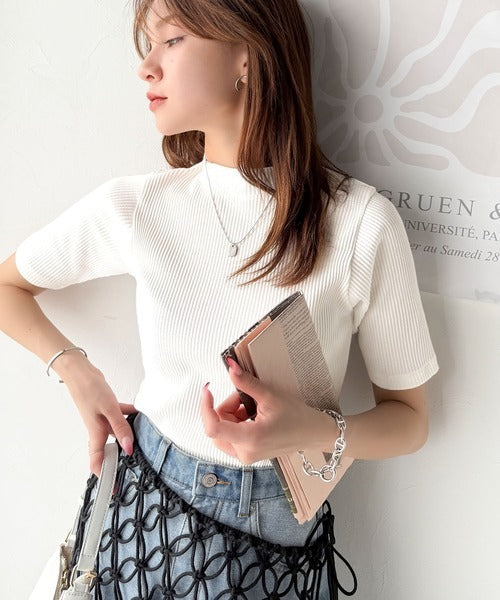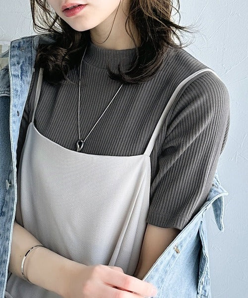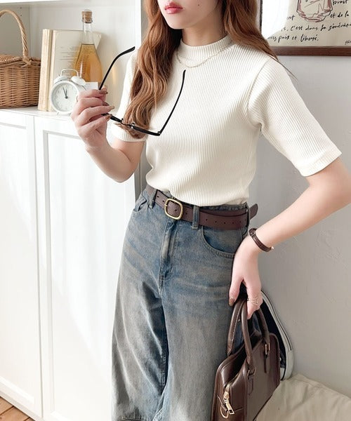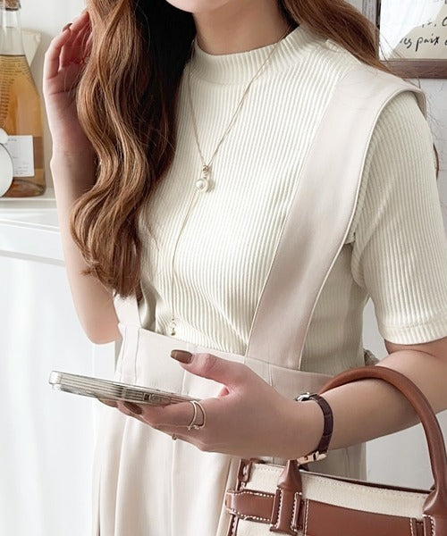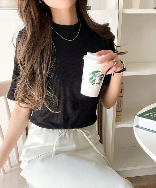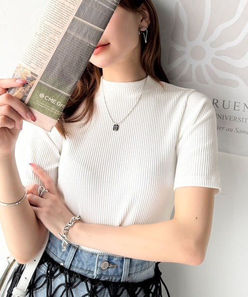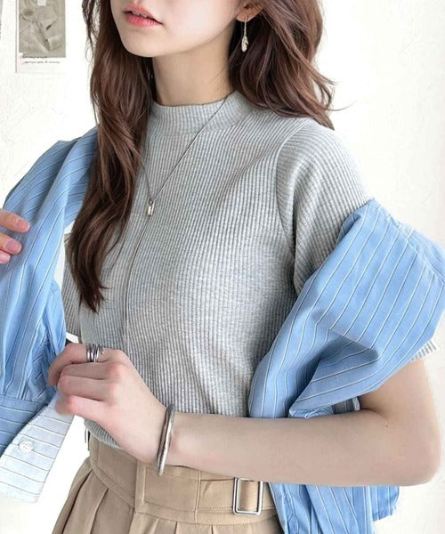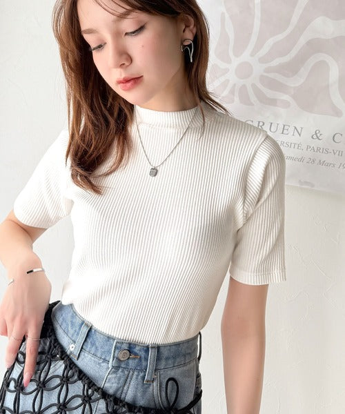 シンプルで着回し力抜群!テレコモックネック半袖トップス ce1330020