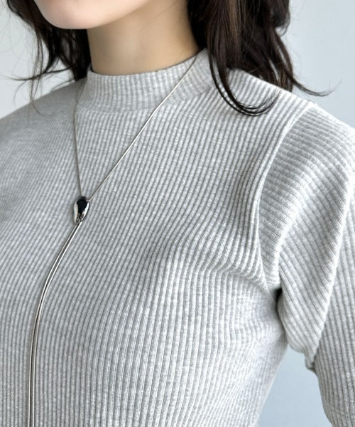 テレコリブ素材は伸縮性があり、スリムなラインを美しく引き立ててくれます。