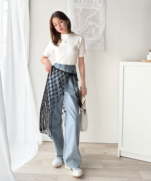 その日の気分に合わせてカーブデニムやフレアパンツを合わせてもOK◎