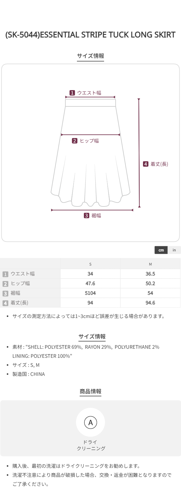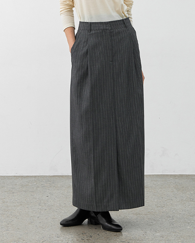 (SK-5044)ESSENTIAL STRIPE TUCK LONG SKIRT