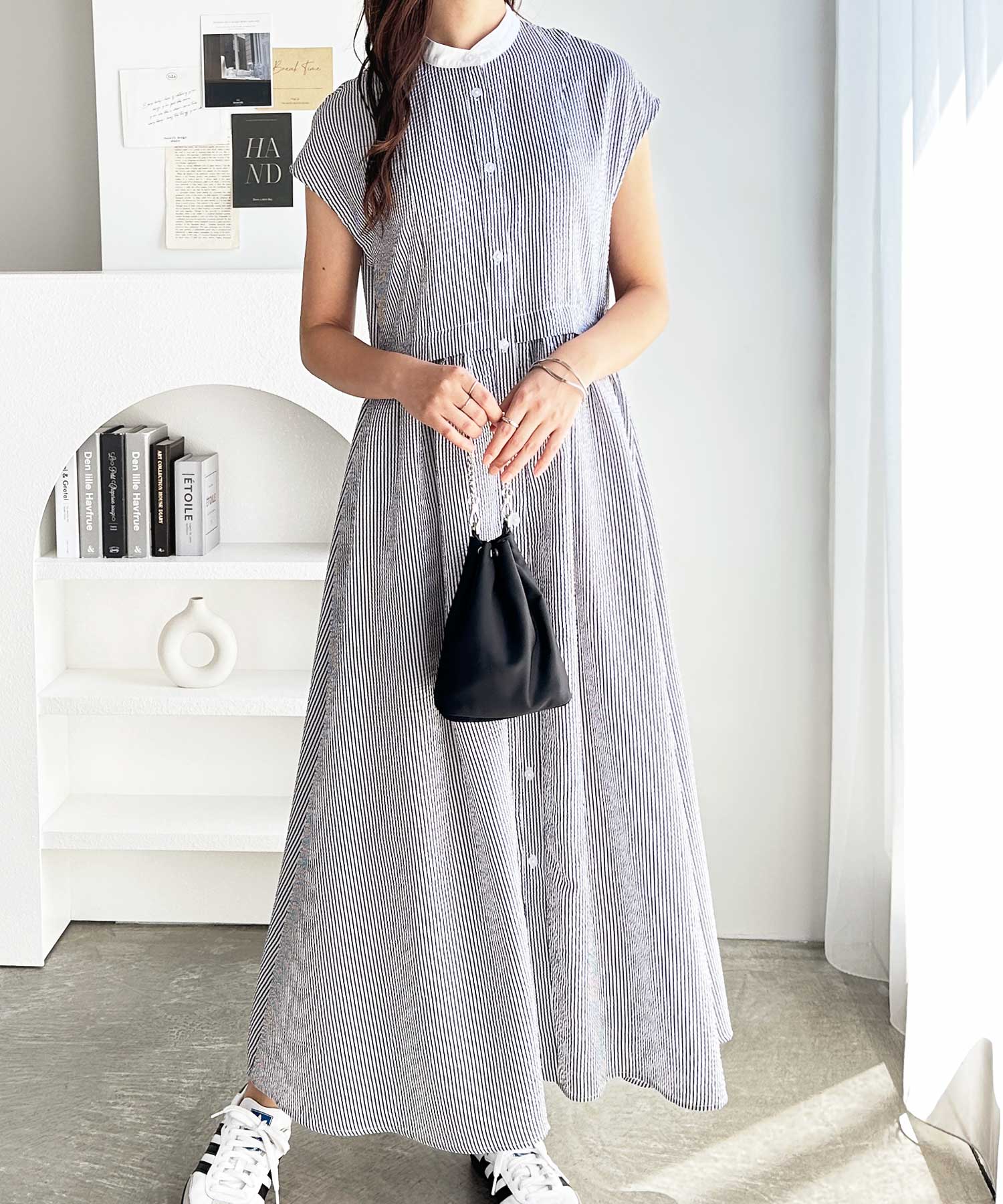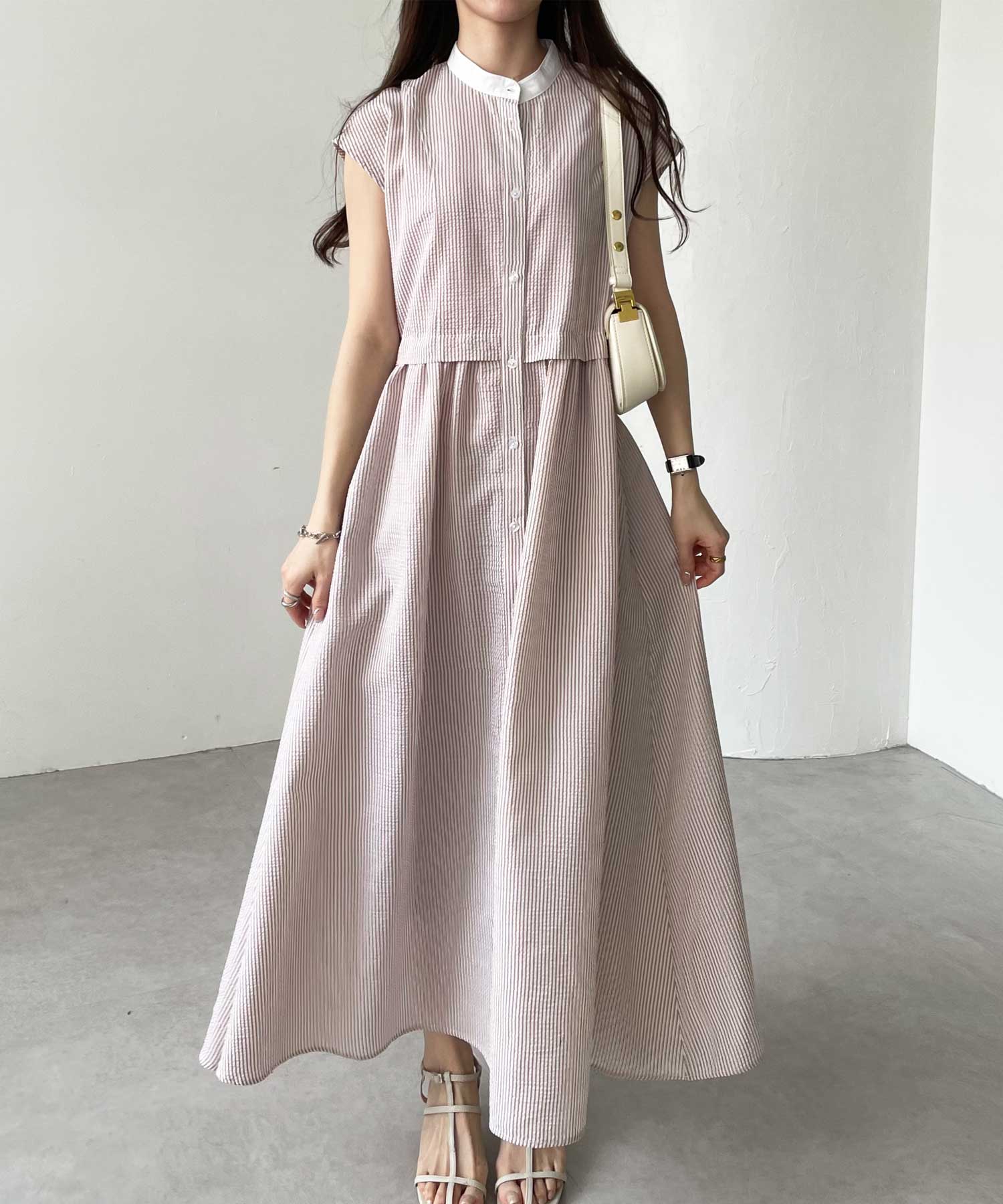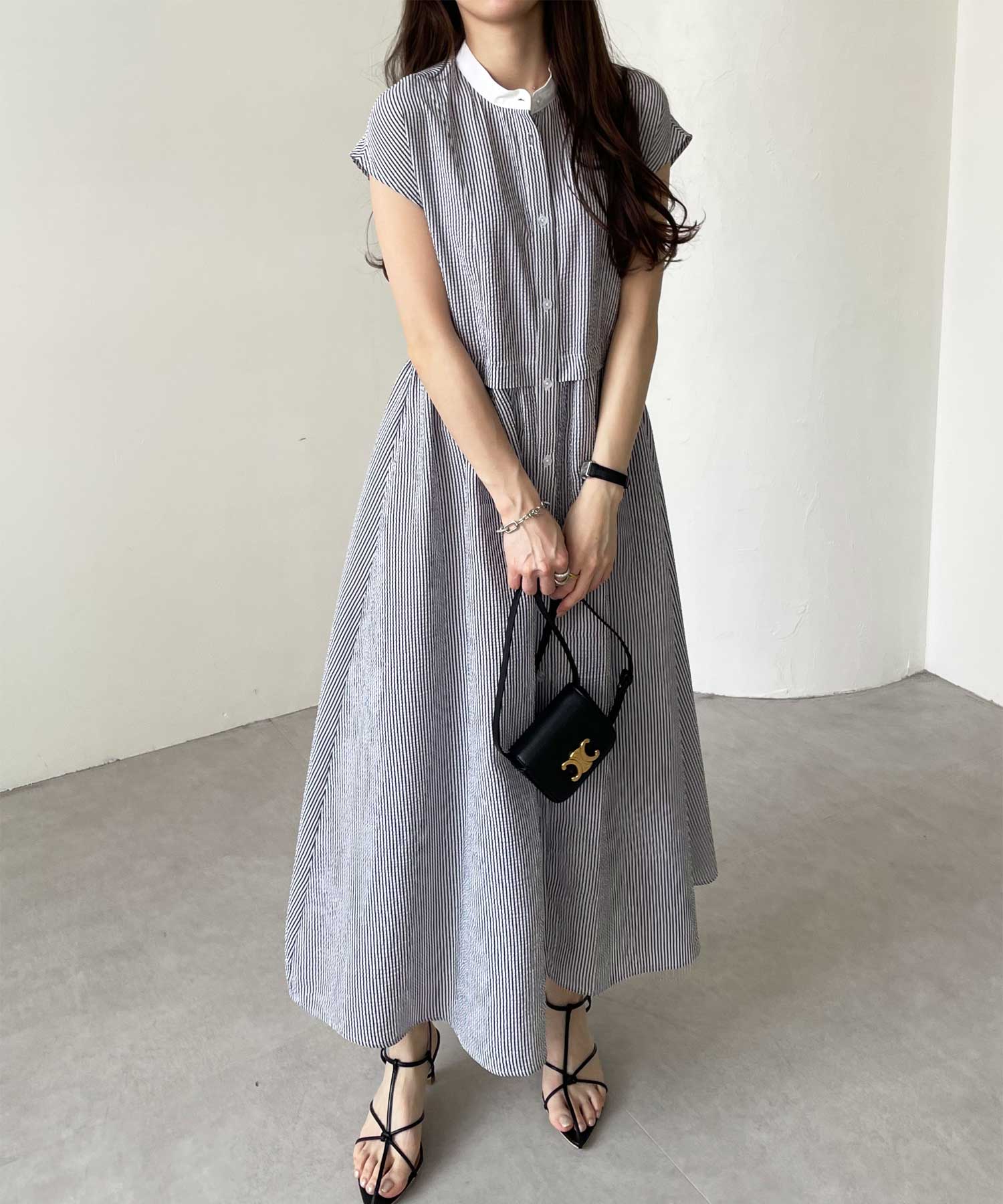 高めのウエスト切り替えでスタイルアップが叶うシャツワンピース