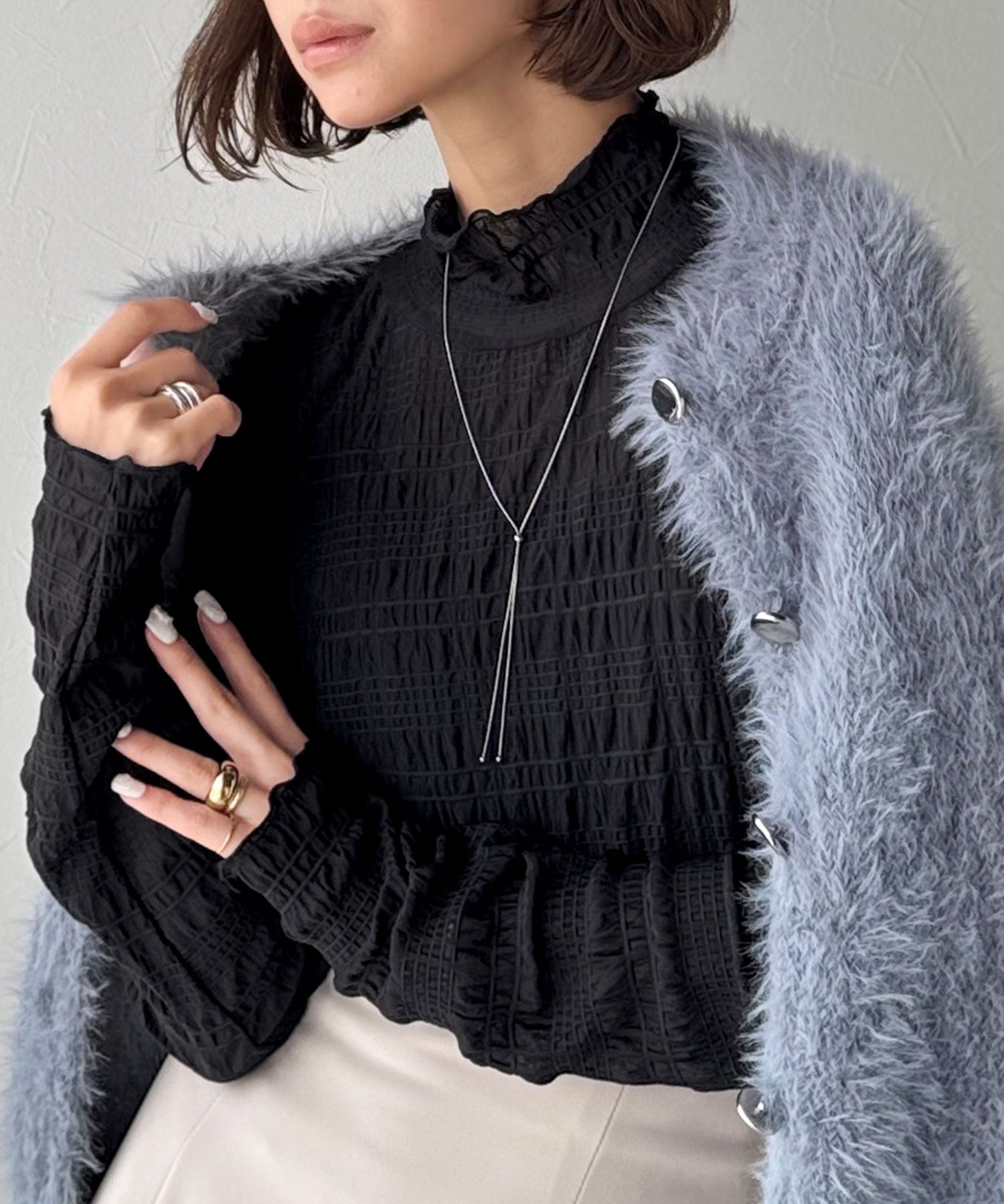 ブラウスやシャツのインに仕込んで、レイヤードで首元のアクセントにも◎