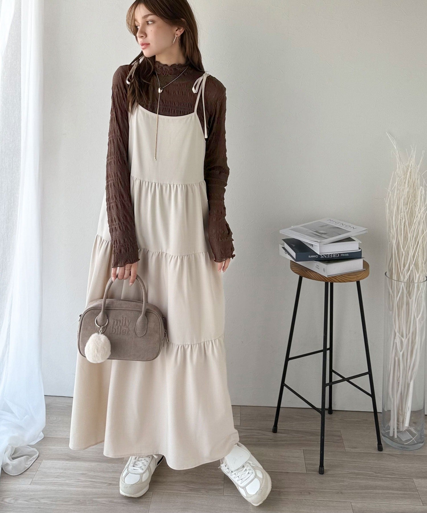 ジャンスカやキャミワンピのインナーにしても透け感が映えて華やかに♪